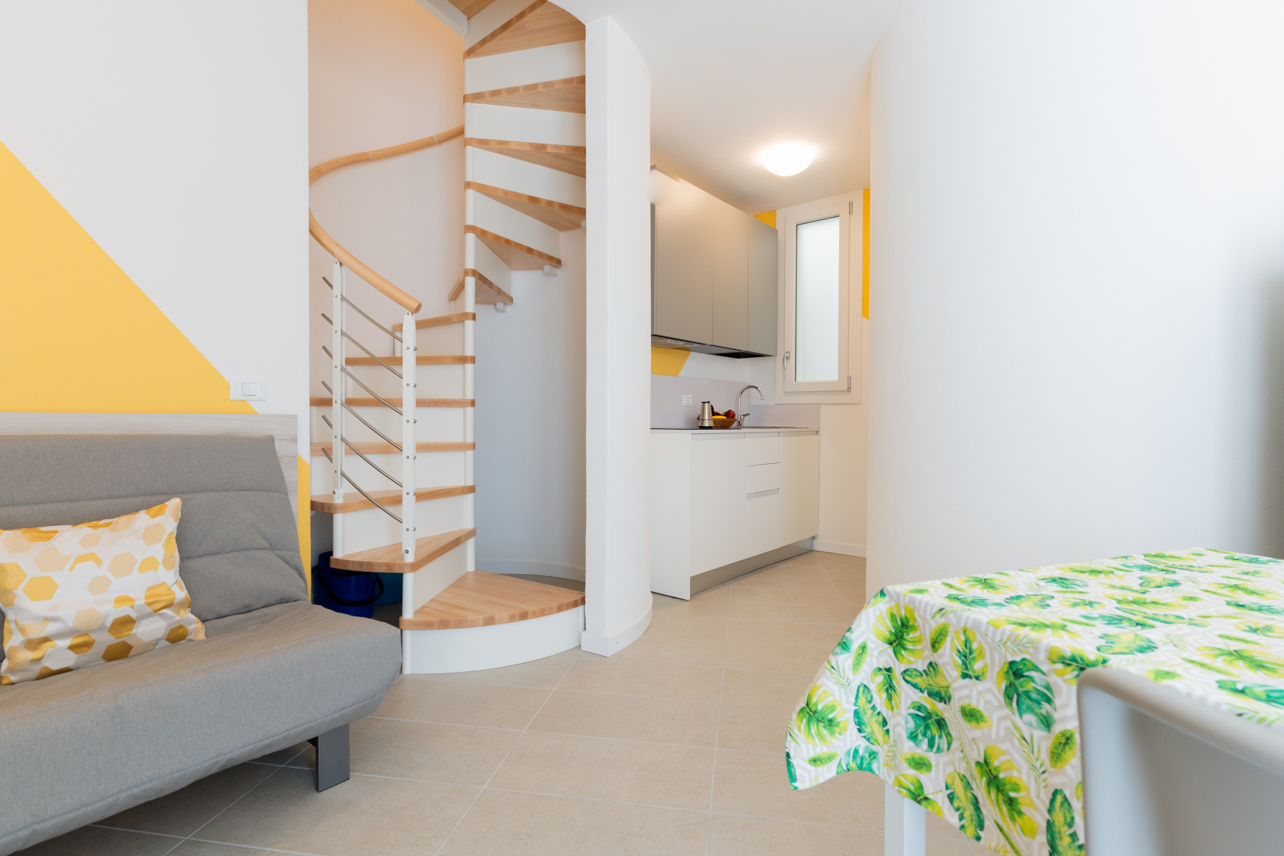 Die renovierten Dreizimmerwohnungen, die sich zwischen dem zweiten und dritten Stock befinden, bieten geräumige Terrassen oder Balkone mit Ausrichtung nach Süden oder Nordwesten, ideal zum Genießen eines Kaffees in der Sonne oder eines Abendessens im Freien mit Blick auf verschiedene Ausblicke von Bibione.