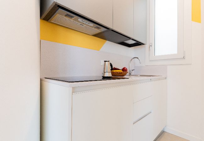 - einem Wohnbereich mit moderner Küchenzeile, ausgestattet mit Induktionsherd und Schlafsofa