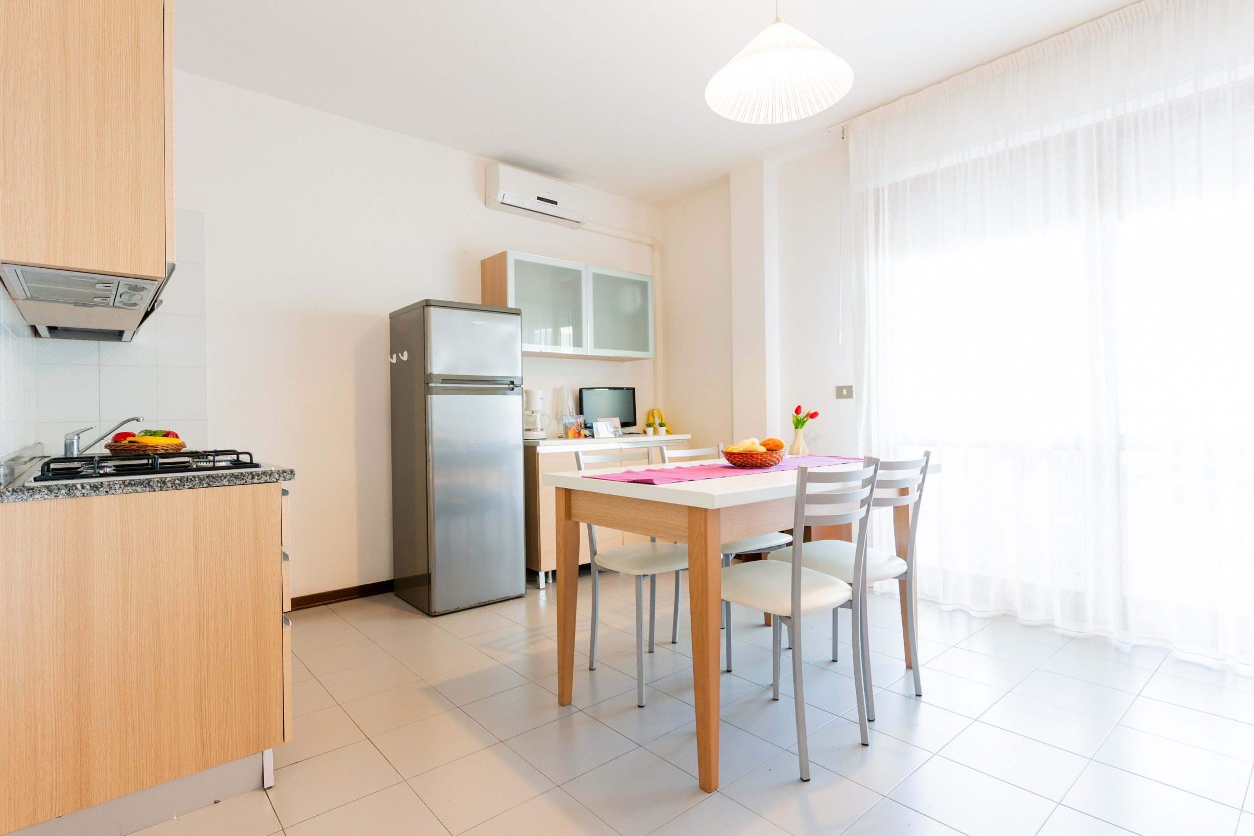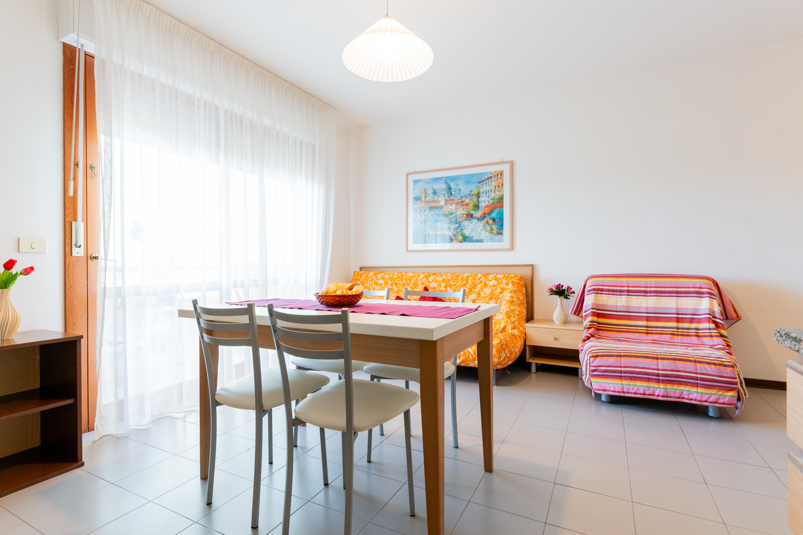 Direkt am Meer im Piazzale Adriatico gelegen, im lebhaften Herzen von Bibione Lido del Sole, verbindet dieses Residence Komfort und modernen Stil für einen praktischen, hellen und erholsamen Aufenthalt.
