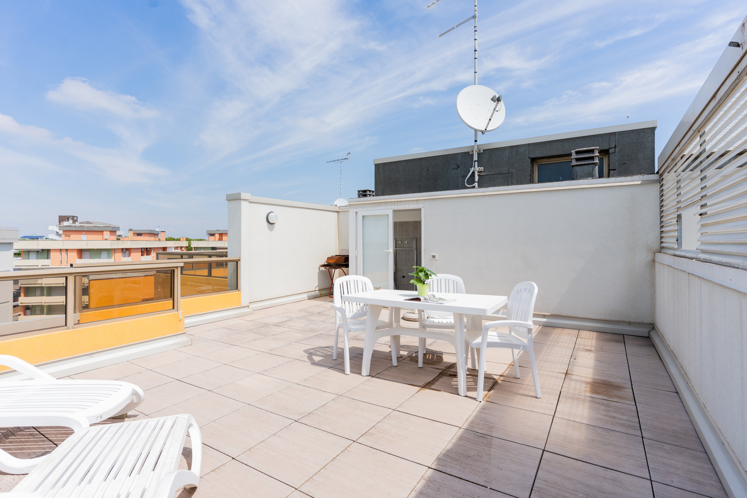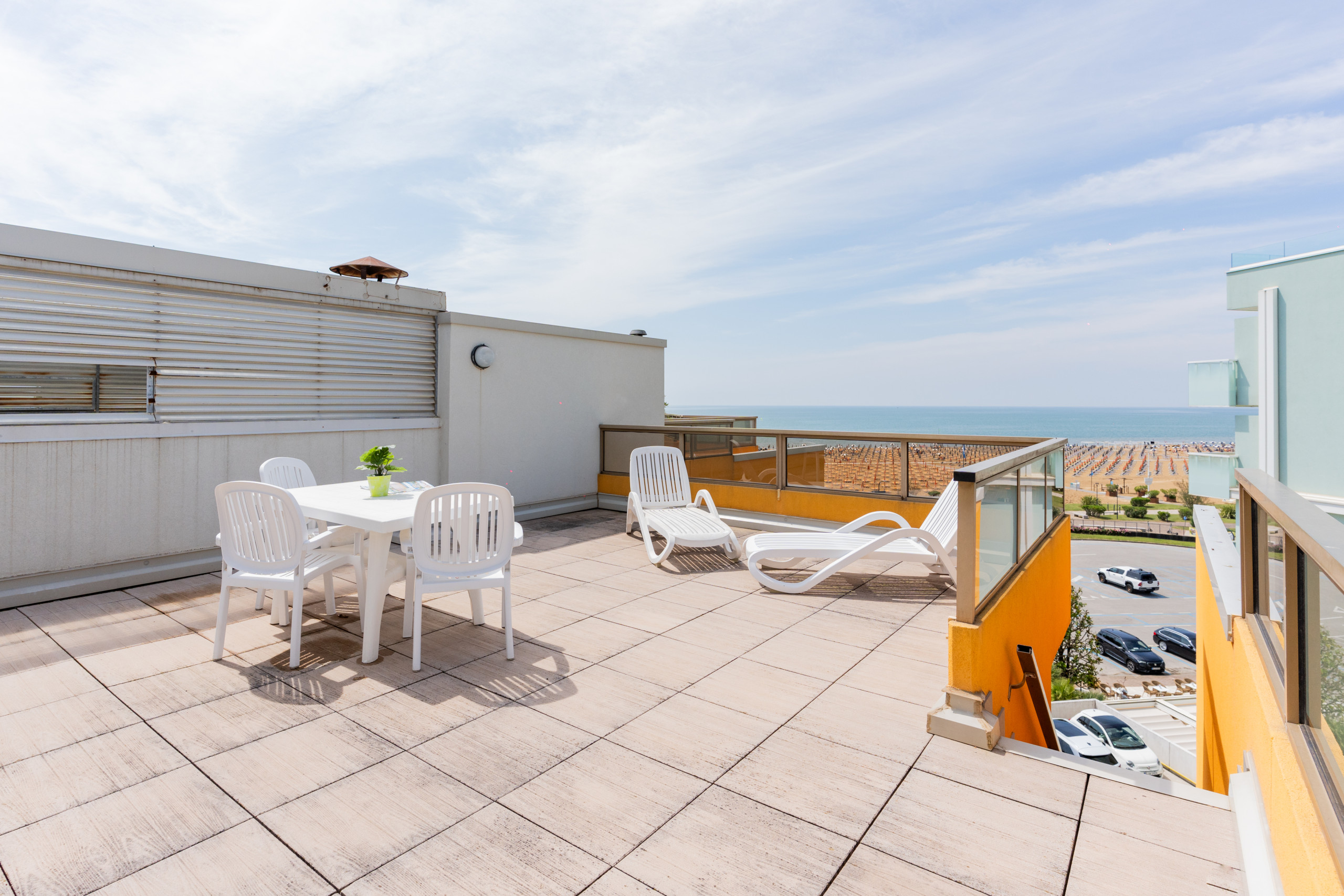 Die Zweizimmerwohnungen im vierten Stock zeichnen sich durch eine Dachterrasse mit Seitenblick aufs Meer aus, ein wahres Juwel, um sich bei Sonnenuntergang zu entspannen oder im Freien zu speisen. Die Terrasse verfügt zudem über eine Servicetoilette mit Waschbecken, WC und Dusche sowie einem Außenkamin für Abende mit einzigartiger Atmosphäre.