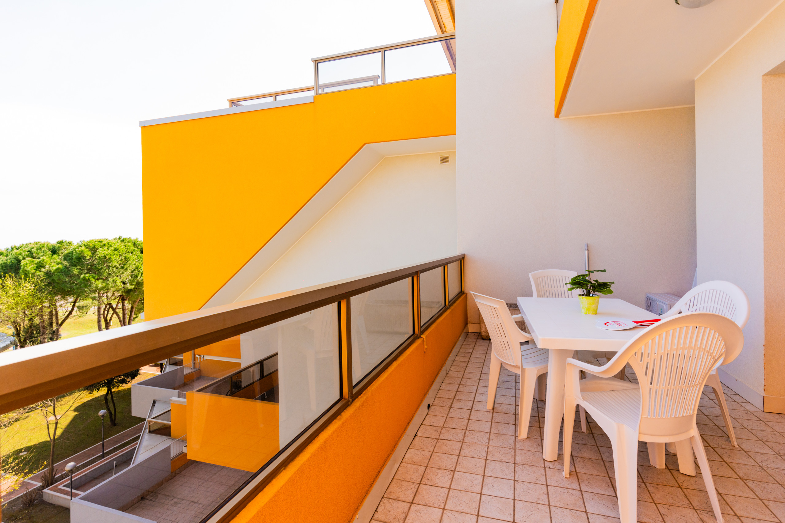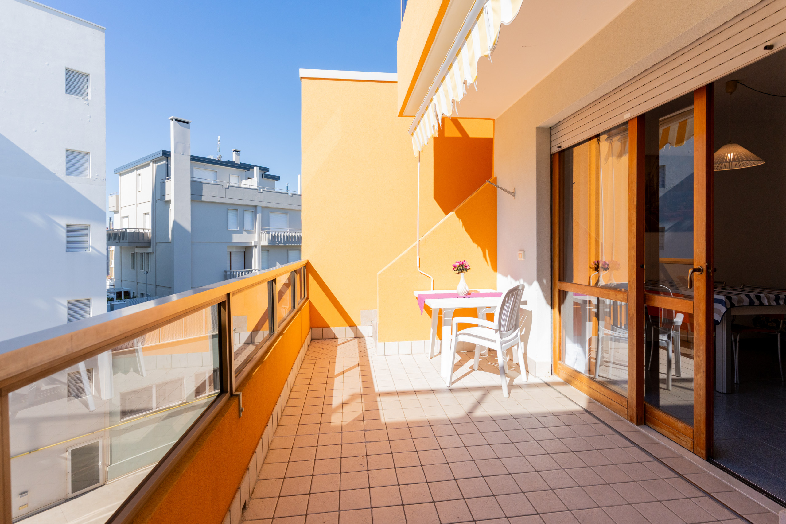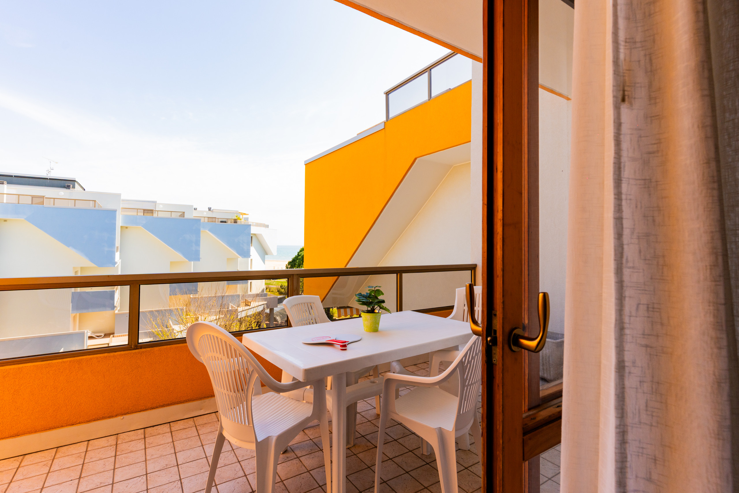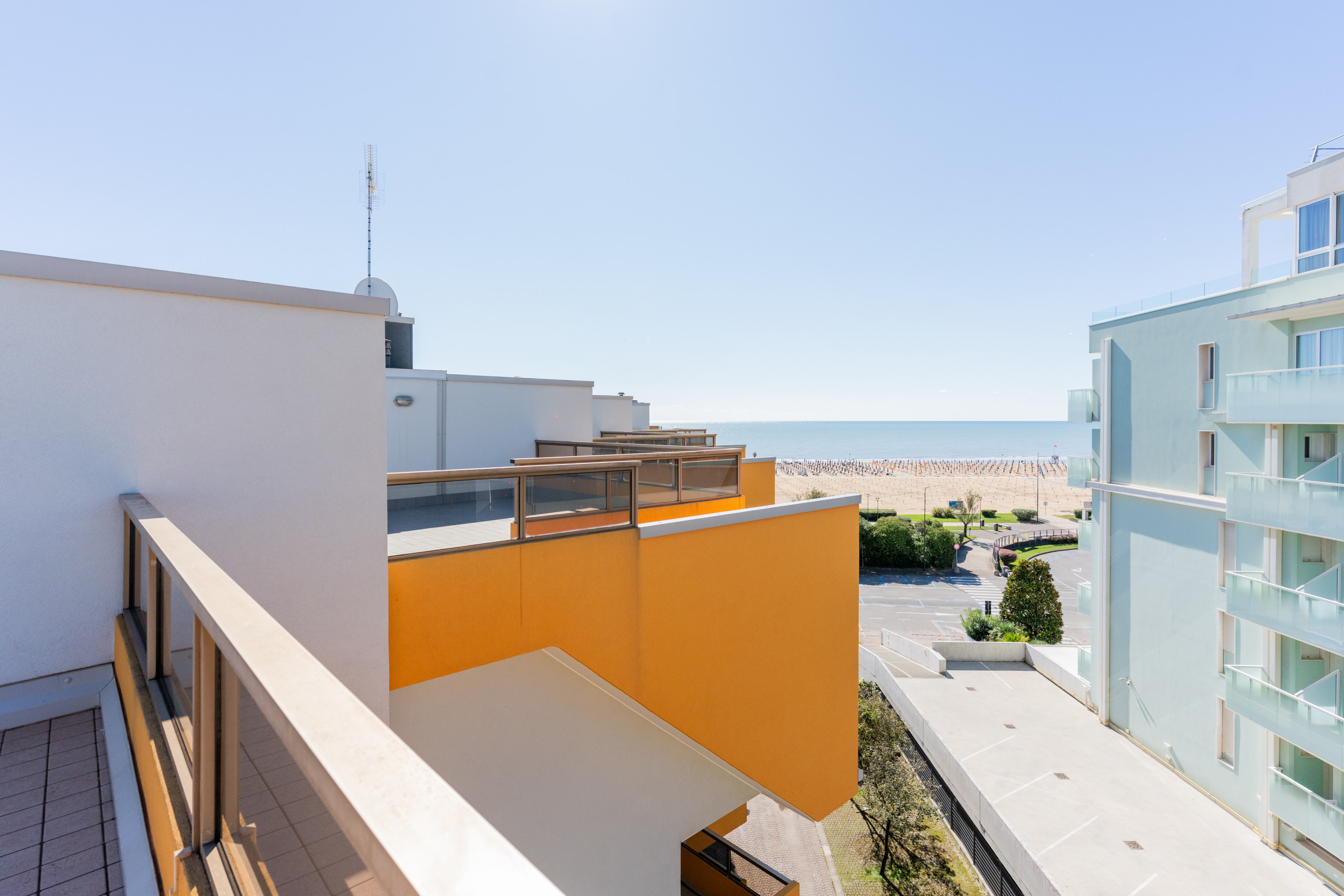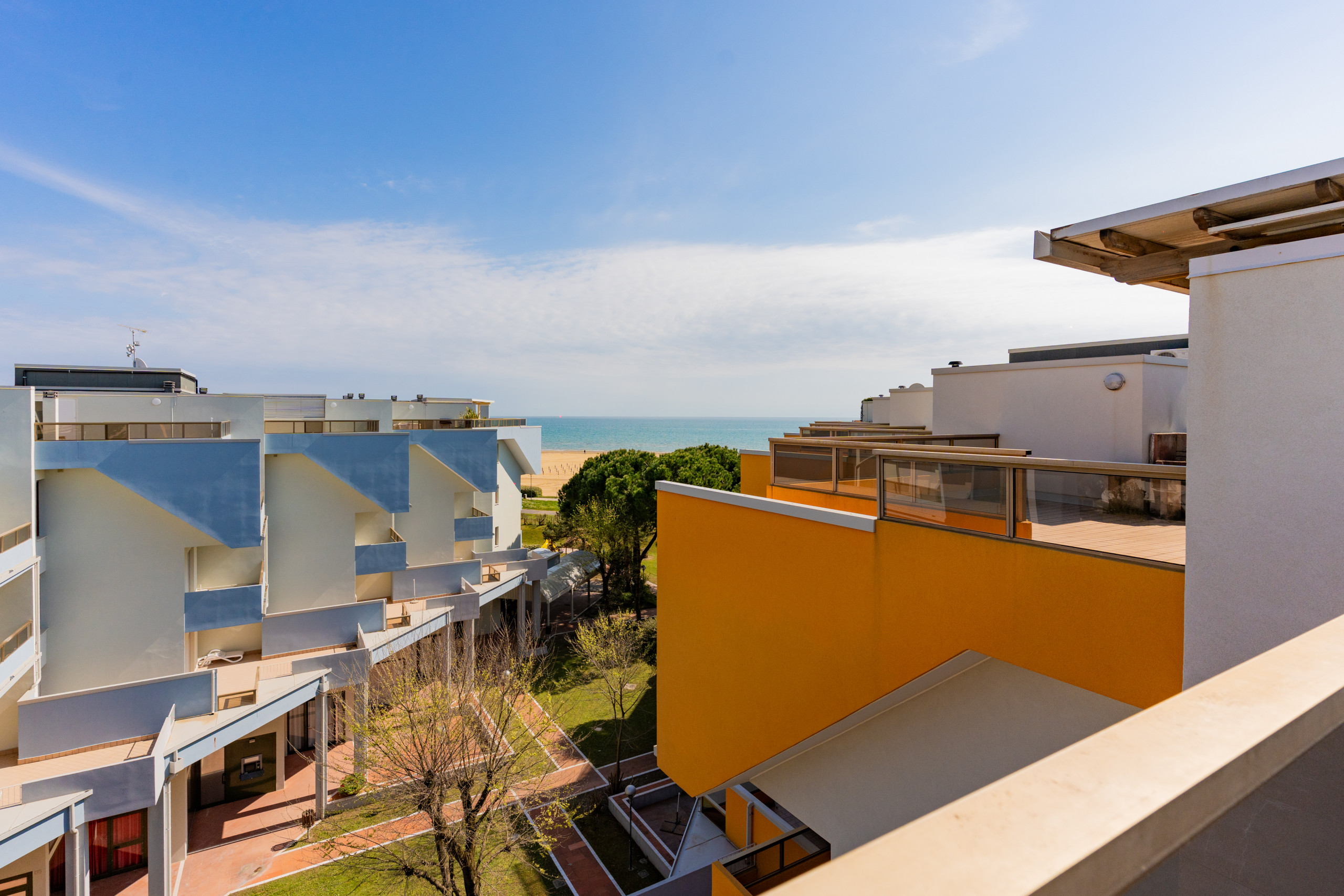 Die renovierten Dreizimmerwohnungen, die sich zwischen dem zweiten und dritten Stock befinden, bieten geräumige Terrassen oder Balkone mit Ausrichtung nach Süden oder Nordwesten, ideal zum Genießen eines Kaffees in der Sonne oder eines Abendessens im Freien mit Blick auf verschiedene Ausblicke von Bibione.