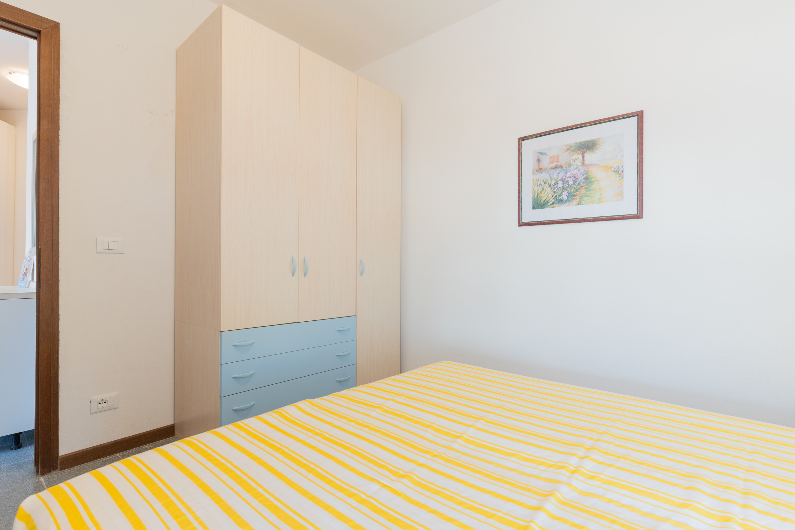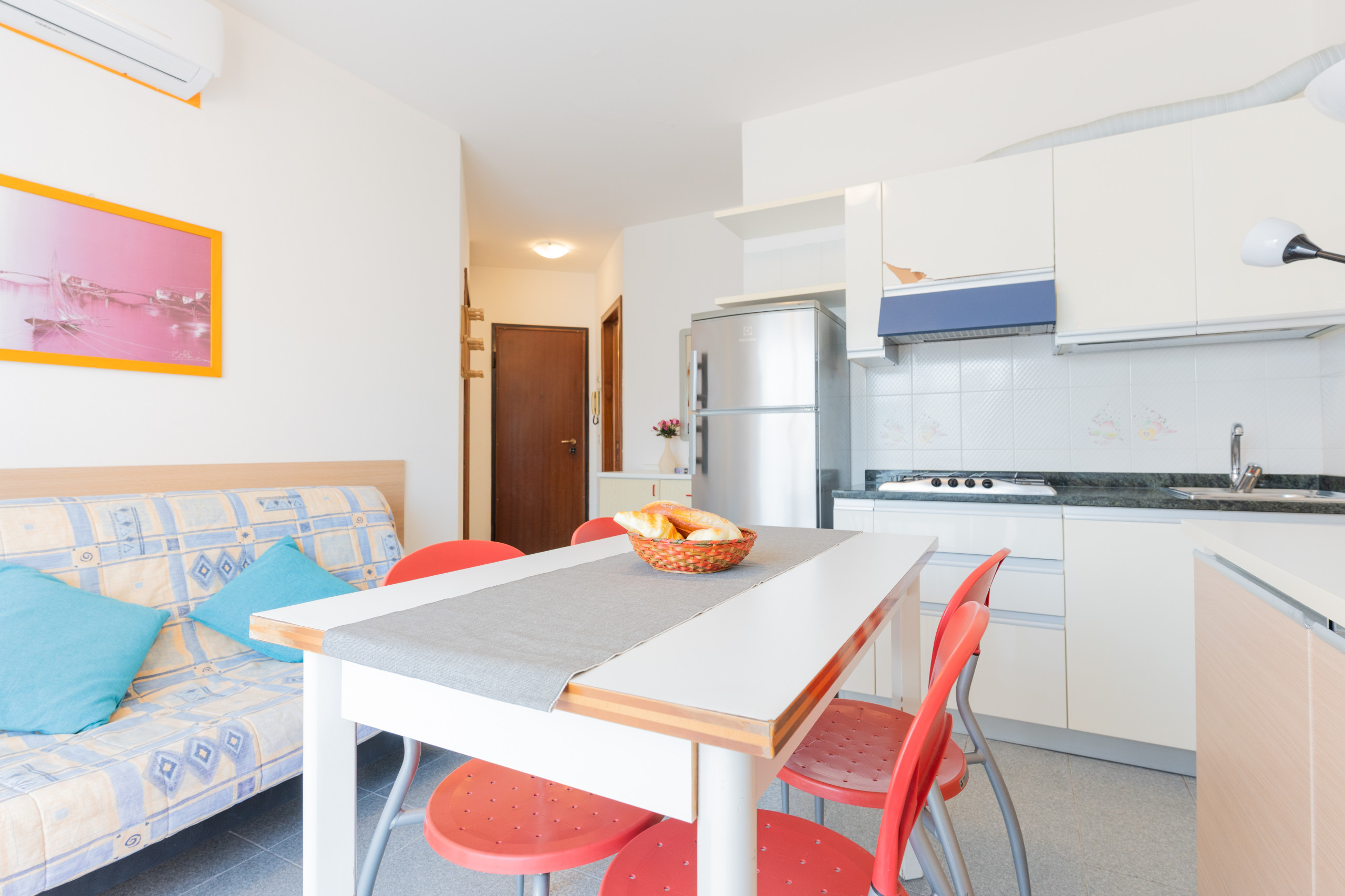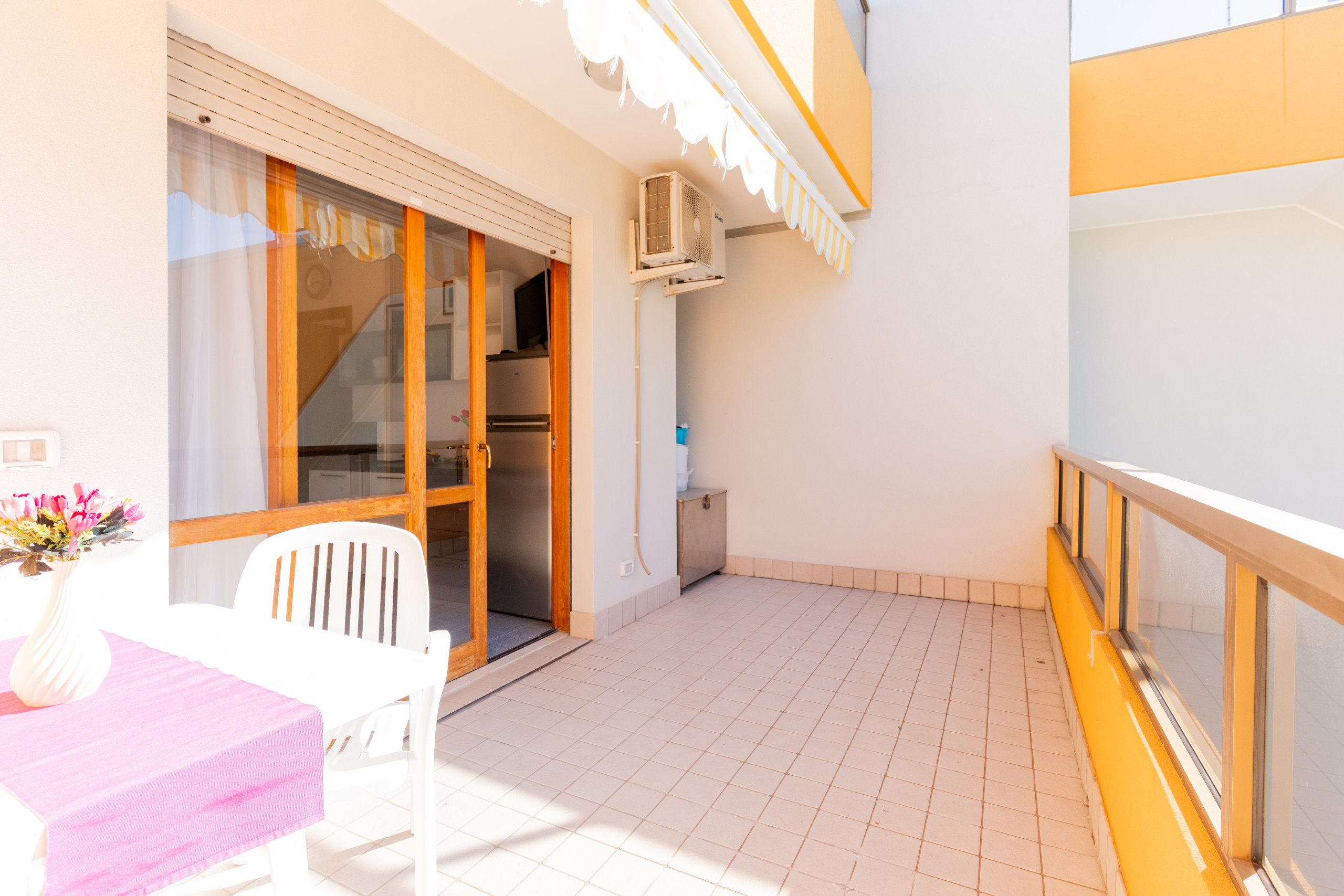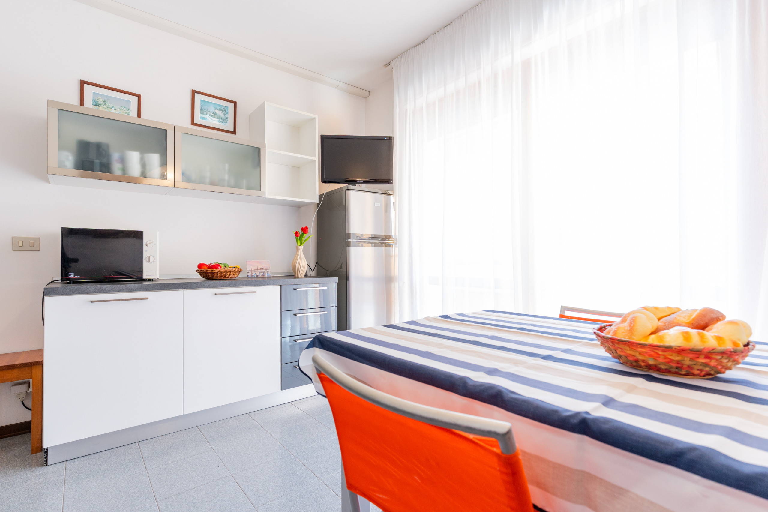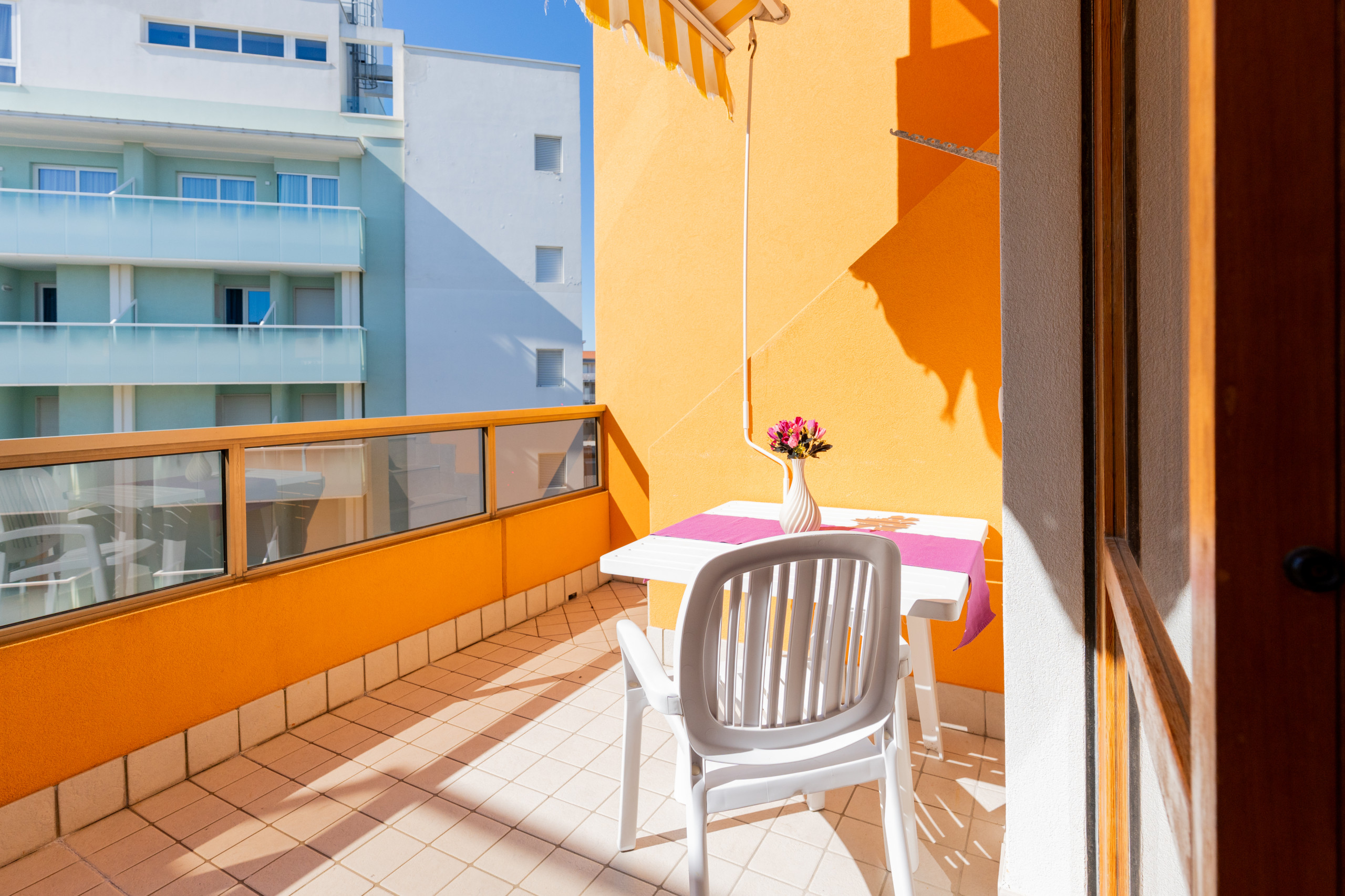 Die renovierten Dreizimmerwohnungen, die sich zwischen dem zweiten und dritten Stock befinden, bieten geräumige Terrassen oder Balkone mit Ausrichtung nach Süden oder Nordwesten, ideal zum Genießen eines Kaffees in der Sonne oder eines Abendessens im Freien mit Blick auf verschiedene Ausblicke von Bibione.