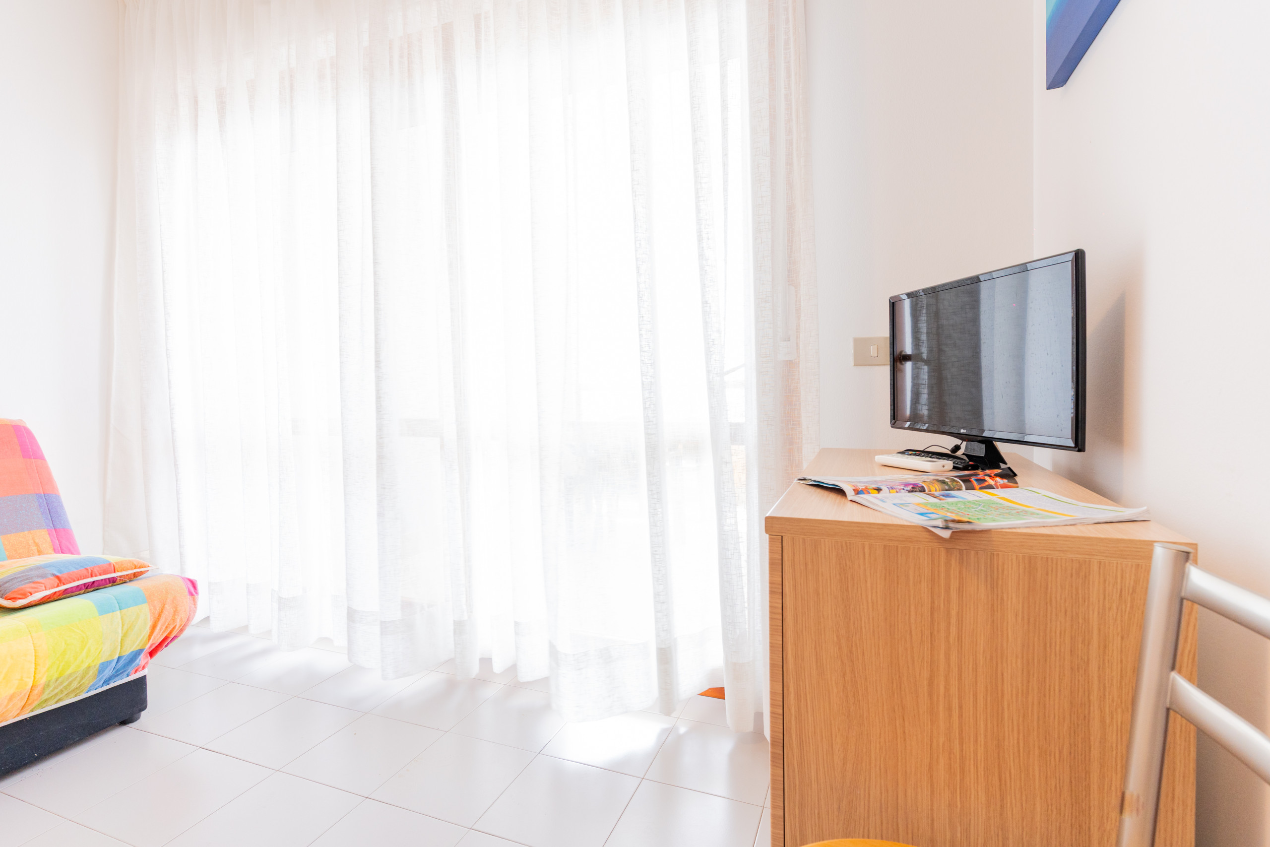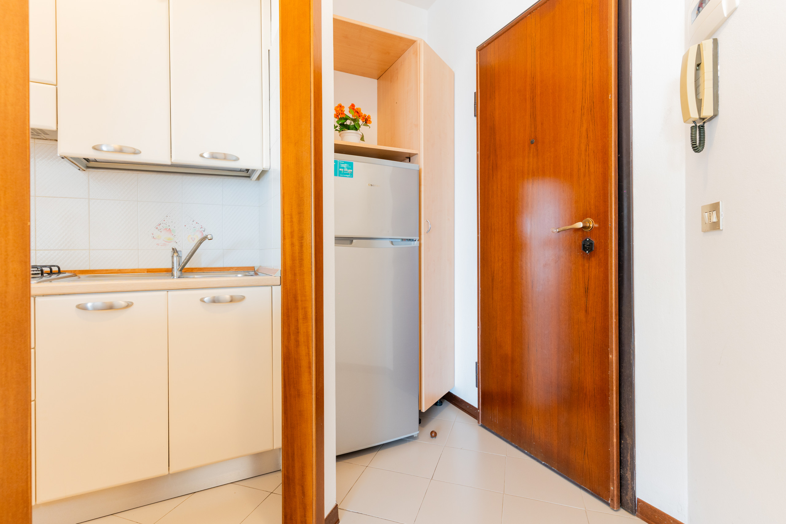 Jede Wohnung verfügt über Klimaanlage, TV, Sicherheitstür und Standkühlschrank, um Ihnen Praktikabilität und Entspannung während des gesamten Aufenthalts zu garantieren.