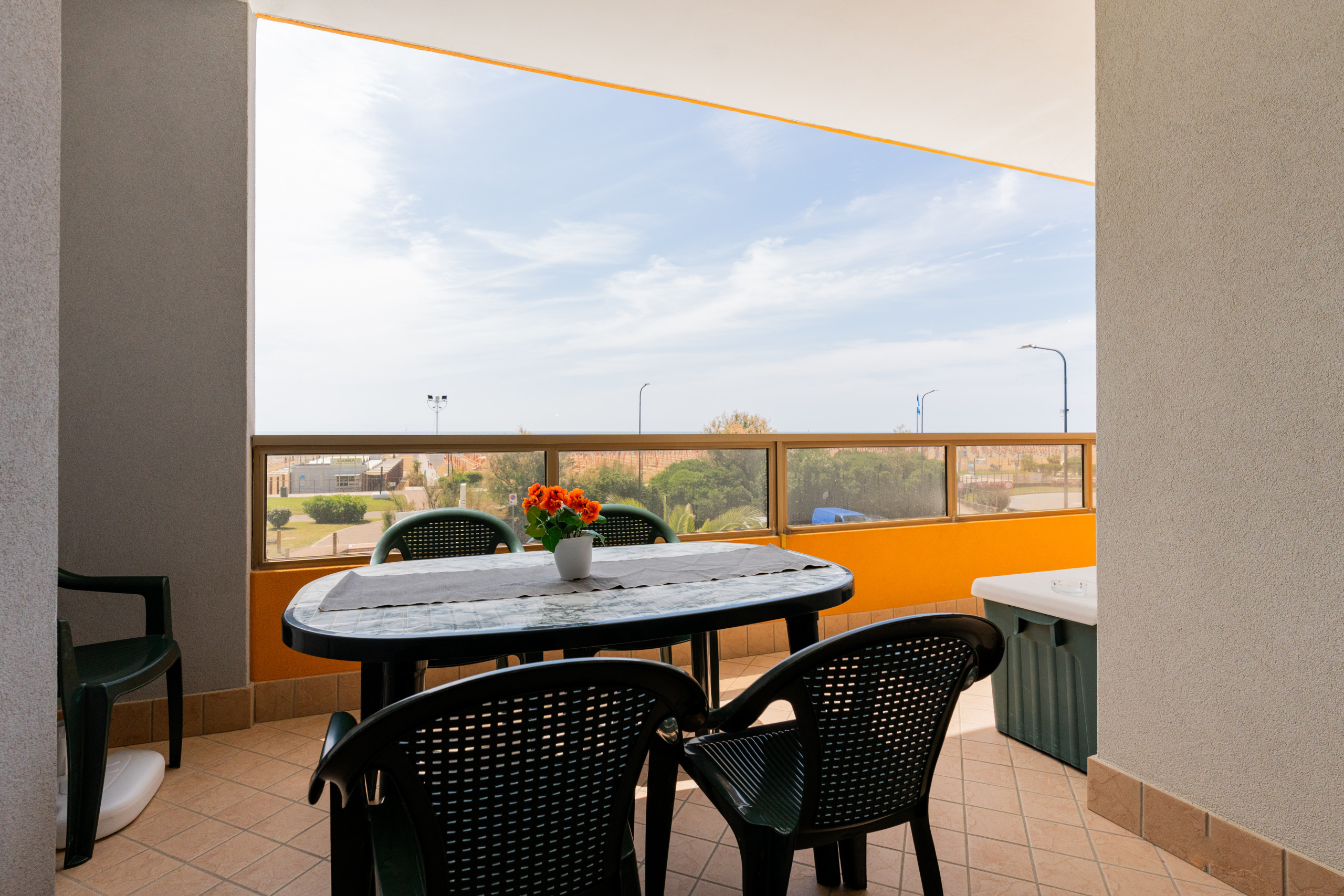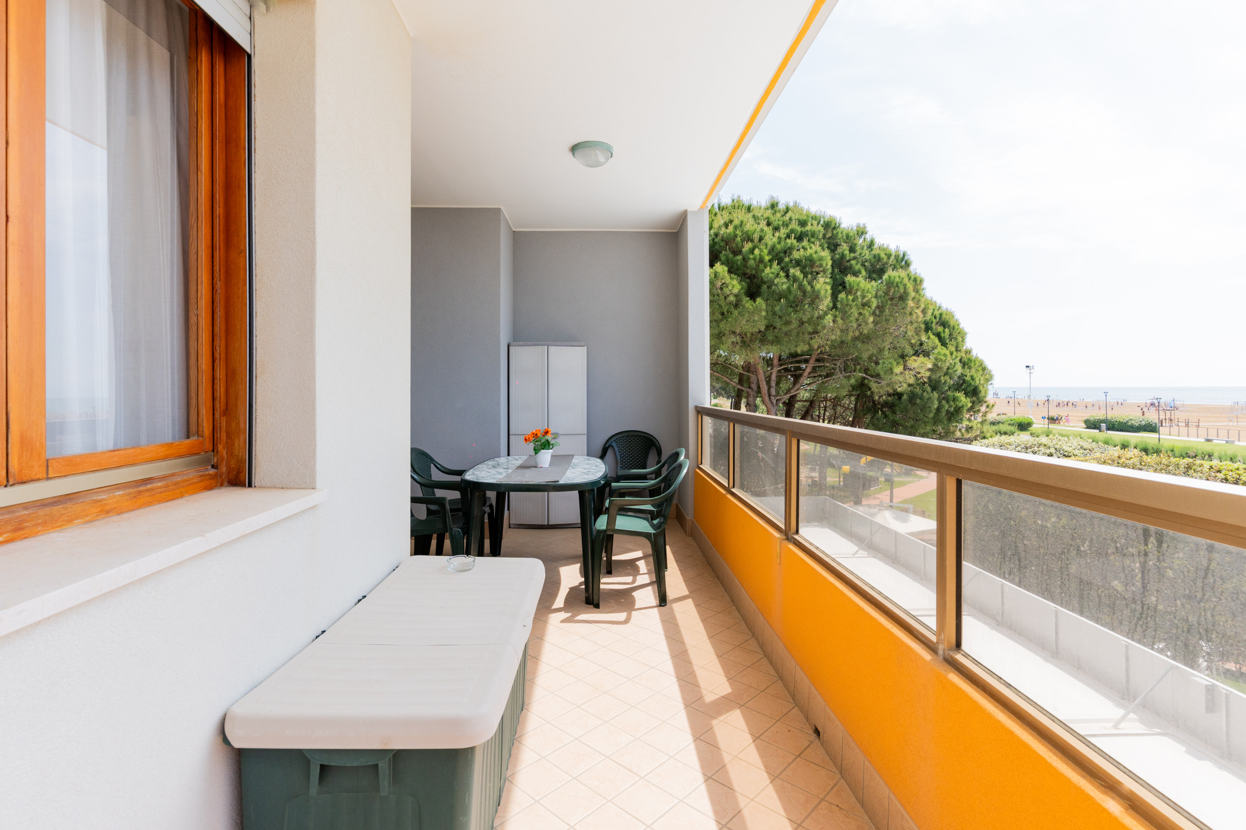 Die renovierten Dreizimmerwohnungen, die sich zwischen dem zweiten und dritten Stock befinden, bieten geräumige Terrassen oder Balkone mit Ausrichtung nach Süden oder Nordwesten, ideal zum Genießen eines Kaffees in der Sonne oder eines Abendessens im Freien mit Blick auf verschiedene Ausblicke von Bibione.