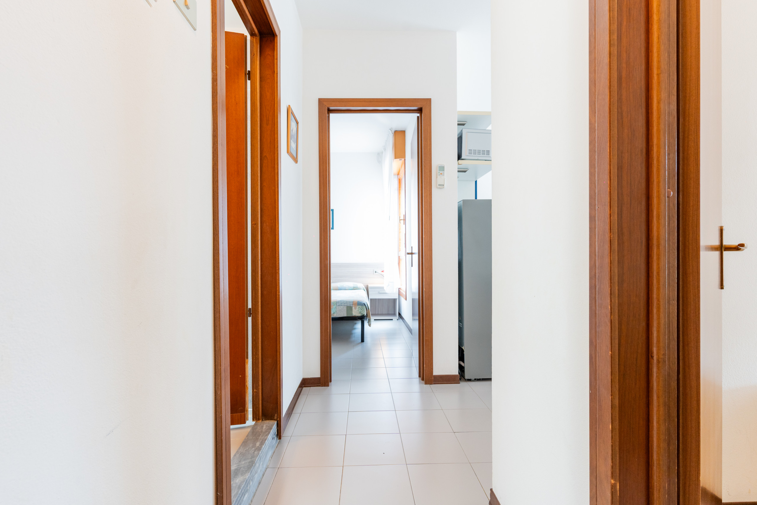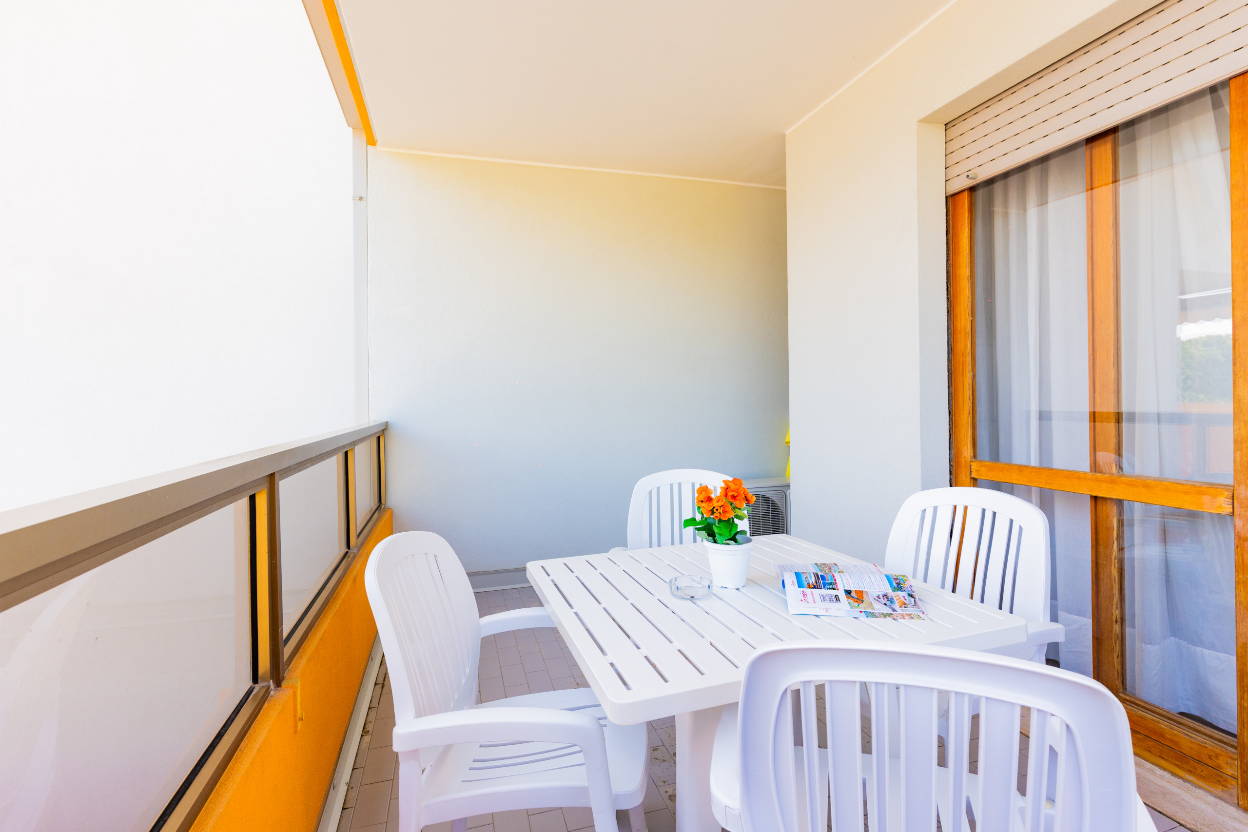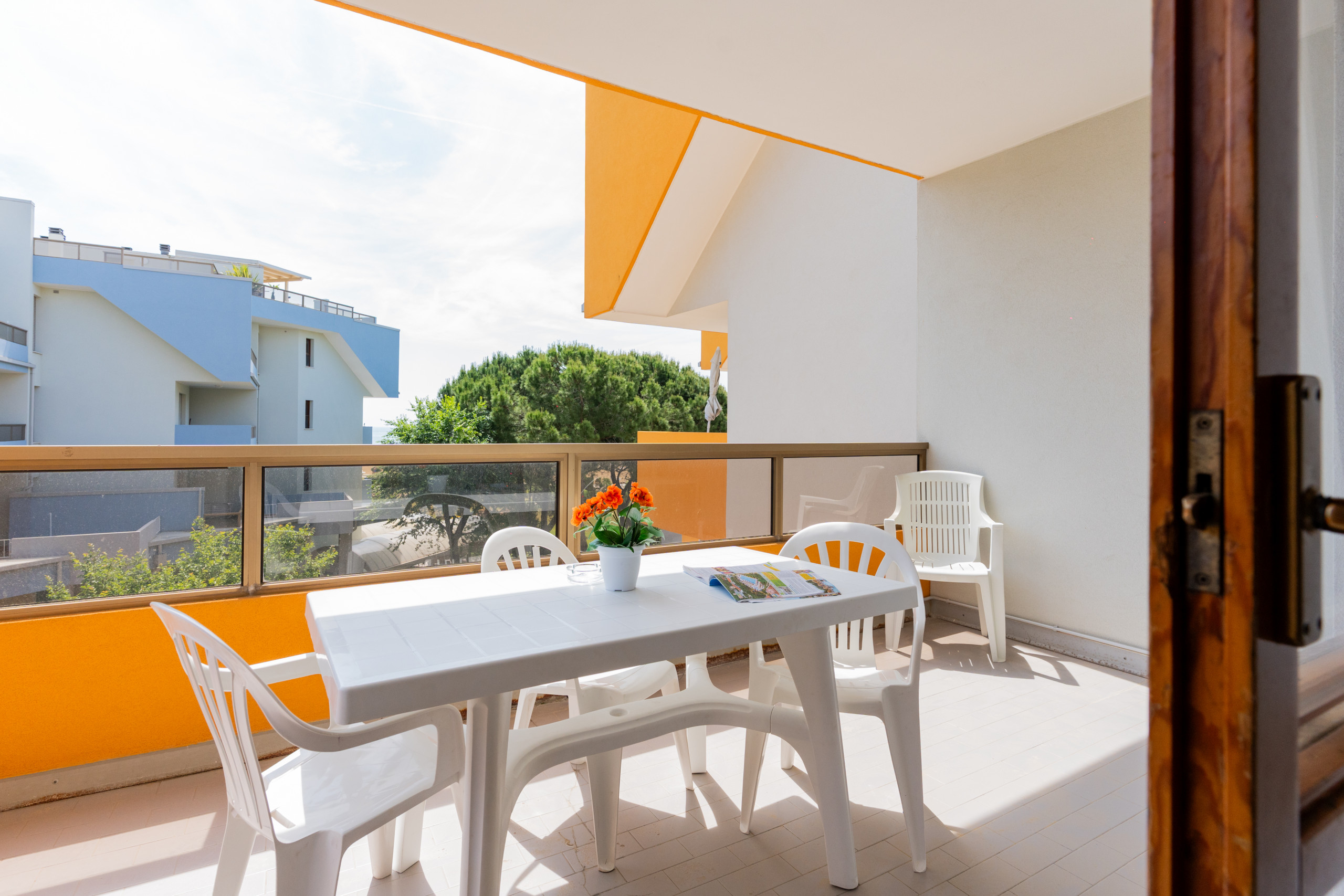 Die renovierten Dreizimmerwohnungen, die sich zwischen dem zweiten und dritten Stock befinden, bieten geräumige Terrassen oder Balkone mit Ausrichtung nach Süden oder Nordwesten, ideal zum Genießen eines Kaffees in der Sonne oder eines Abendessens im Freien mit Blick auf verschiedene Ausblicke von Bibione.