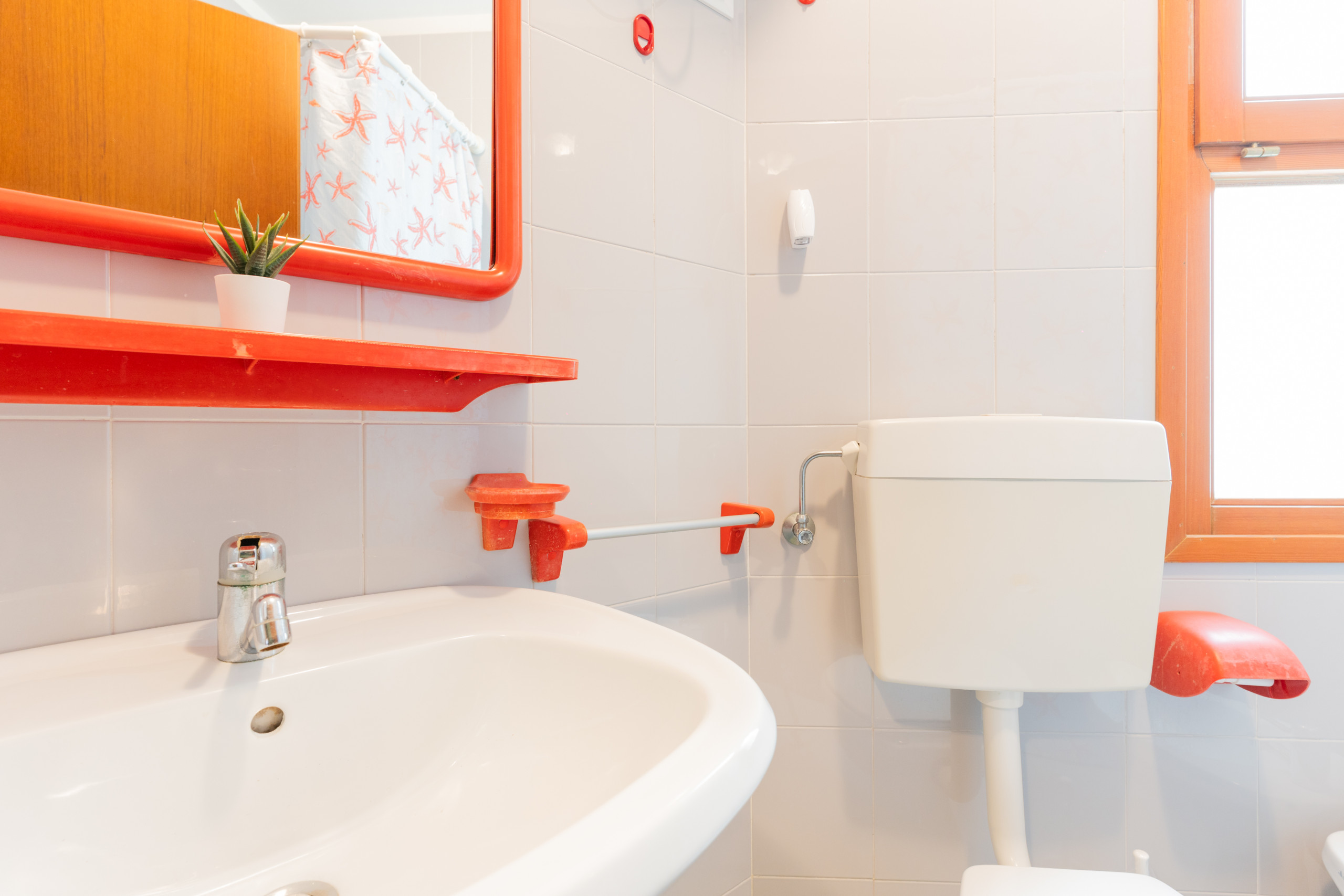 - Eine Dusche mit Duschkabine oder Duschvorhang.