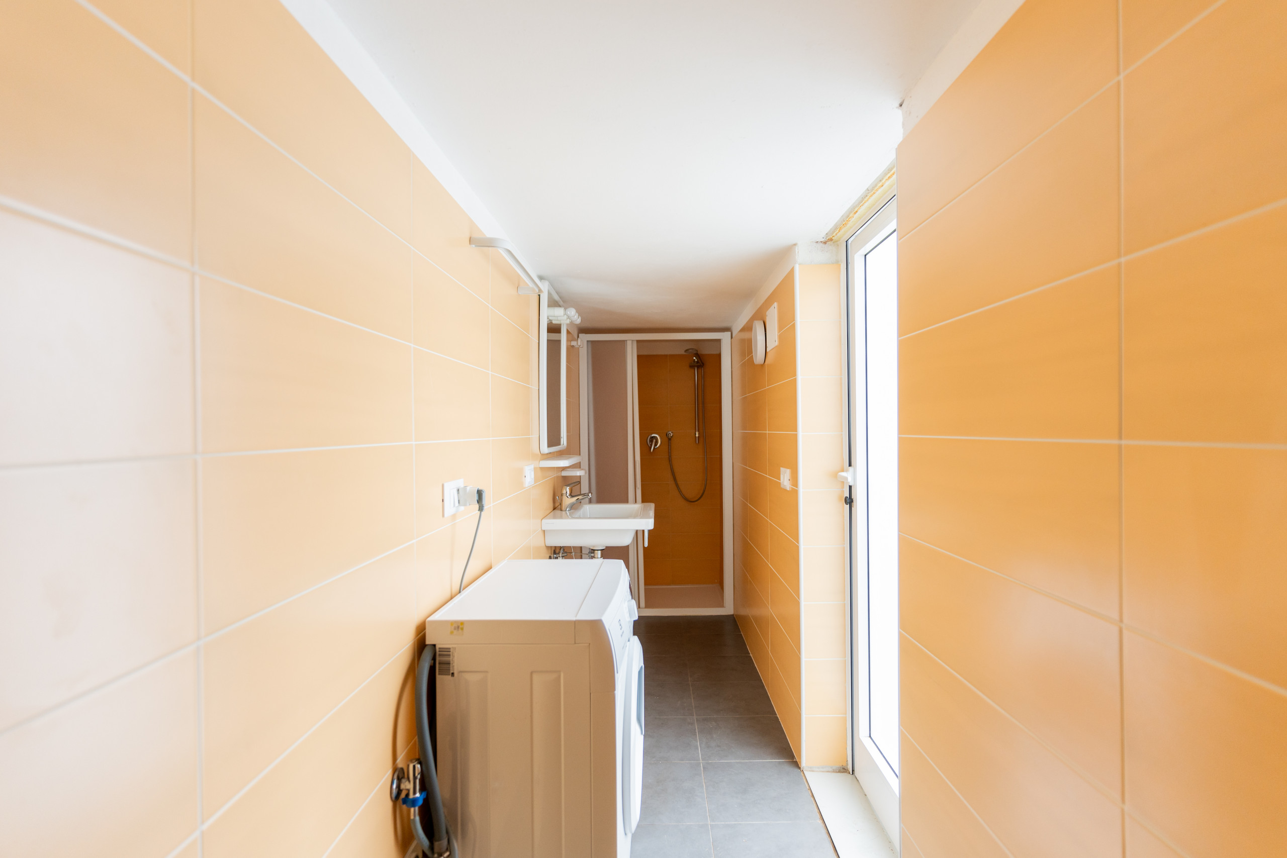 - einem Badezimmer mit Duschkabine.