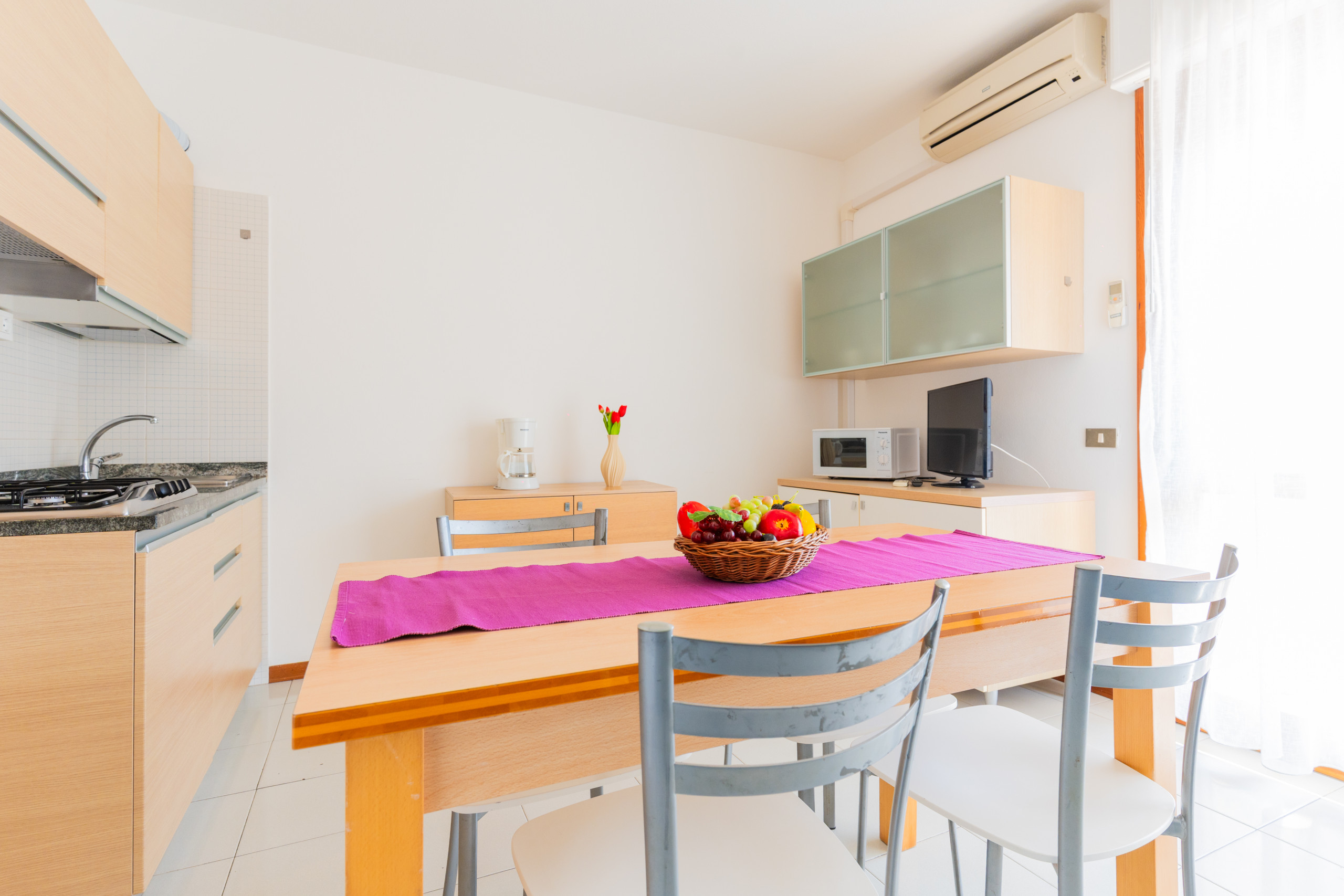 Die Wohnungen, die sich zwischen dem ersten und dritten Stock befinden, verfügen über einen Balkon mit verschiedenen Ausrichtungen — sonnig am Morgen oder Nachmittag, mit Meerblick, Poolblick oder nach innen — perfekt, um die entspannte Atmosphäre des Lido del Sole zu genießen.