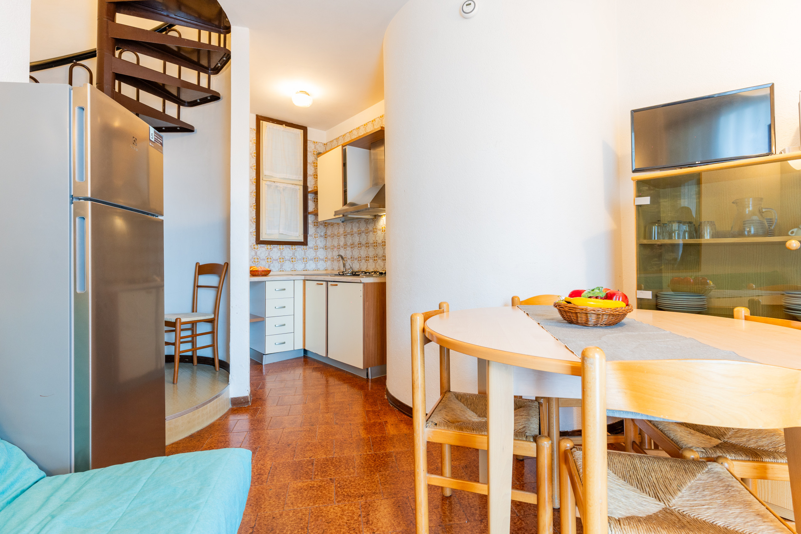 Die Zweizimmerwohnungen, die sich über zwei Etagen erstrecken und durch eine Wendeltreppe verbunden sind, sind gemütlich und funktional, perfekt für Familien oder Paare, die Freiheit und Komfort suchen. Alle verfügen über eine private Außenfläche mit Kamin, ideal für Mahlzeiten oder Abendessen im Freien.