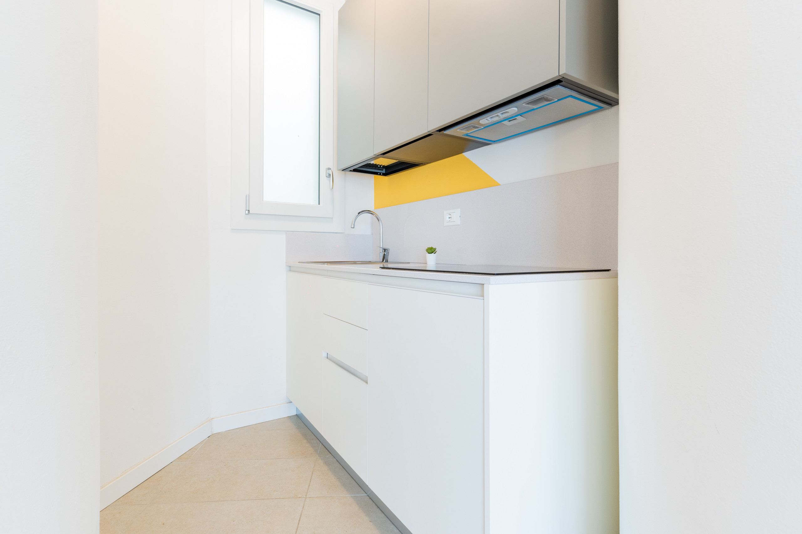 - einem Wohnbereich mit moderner Küchenzeile, ausgestattet mit Induktionsherd und Schlafsofa