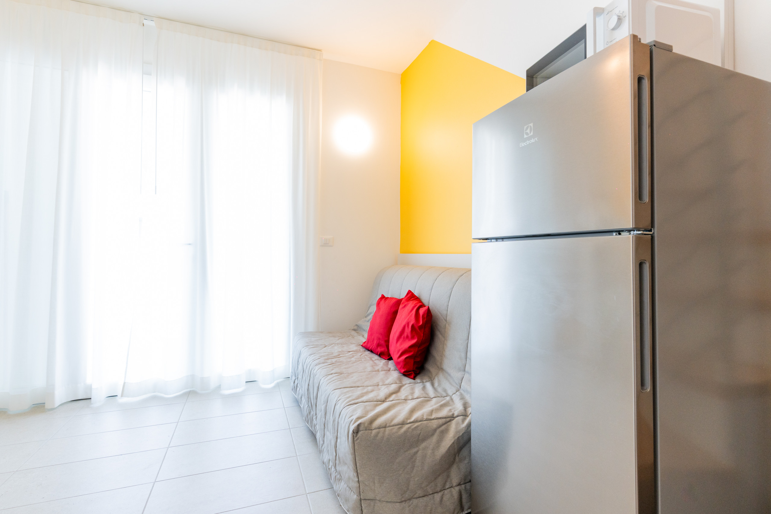 Jede Wohnung verfügt über Klimaanlage, TV, Sicherheitstür und Standkühlschrank, um Ihnen Praktikabilität und Entspannung während des gesamten Aufenthalts zu garantieren.