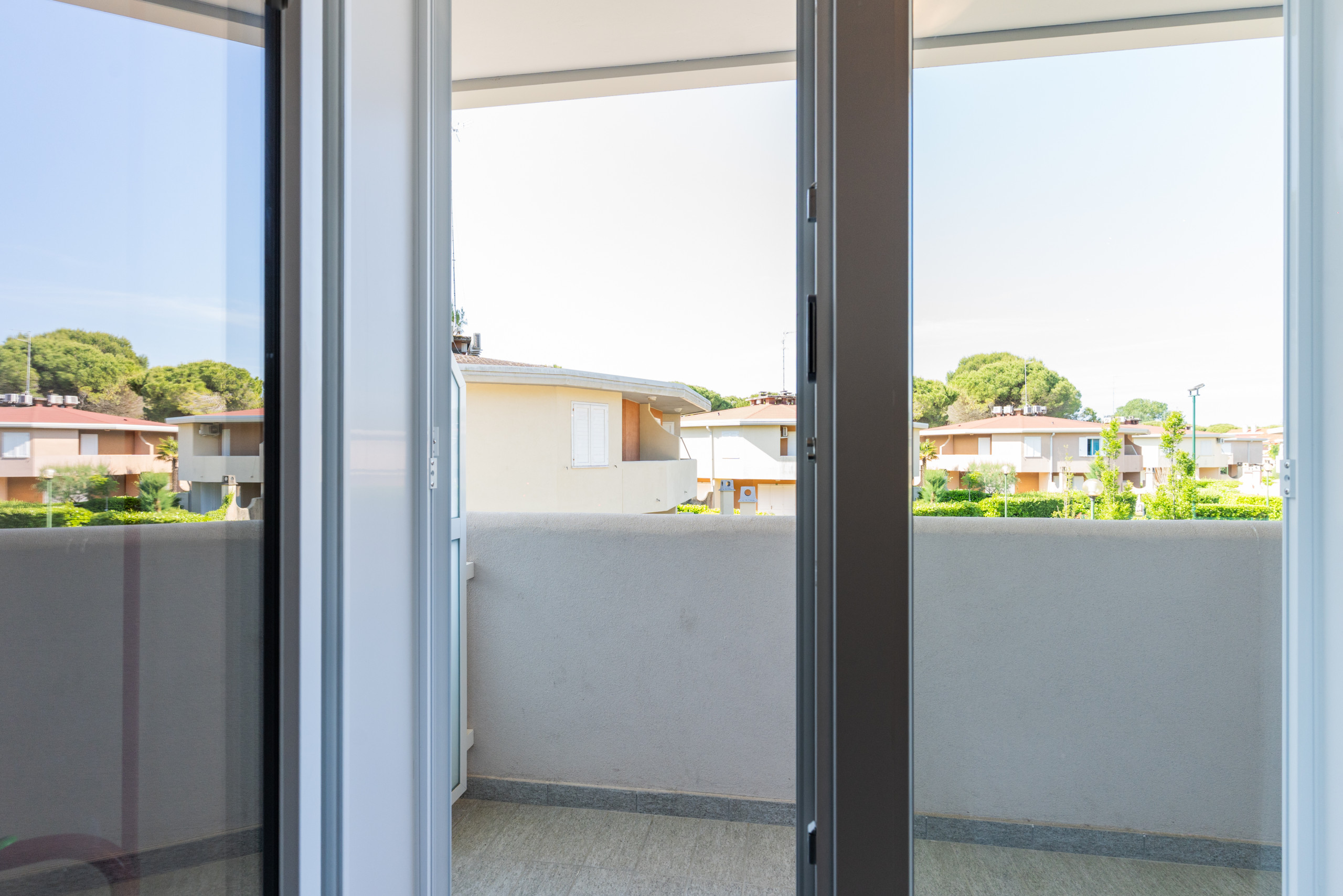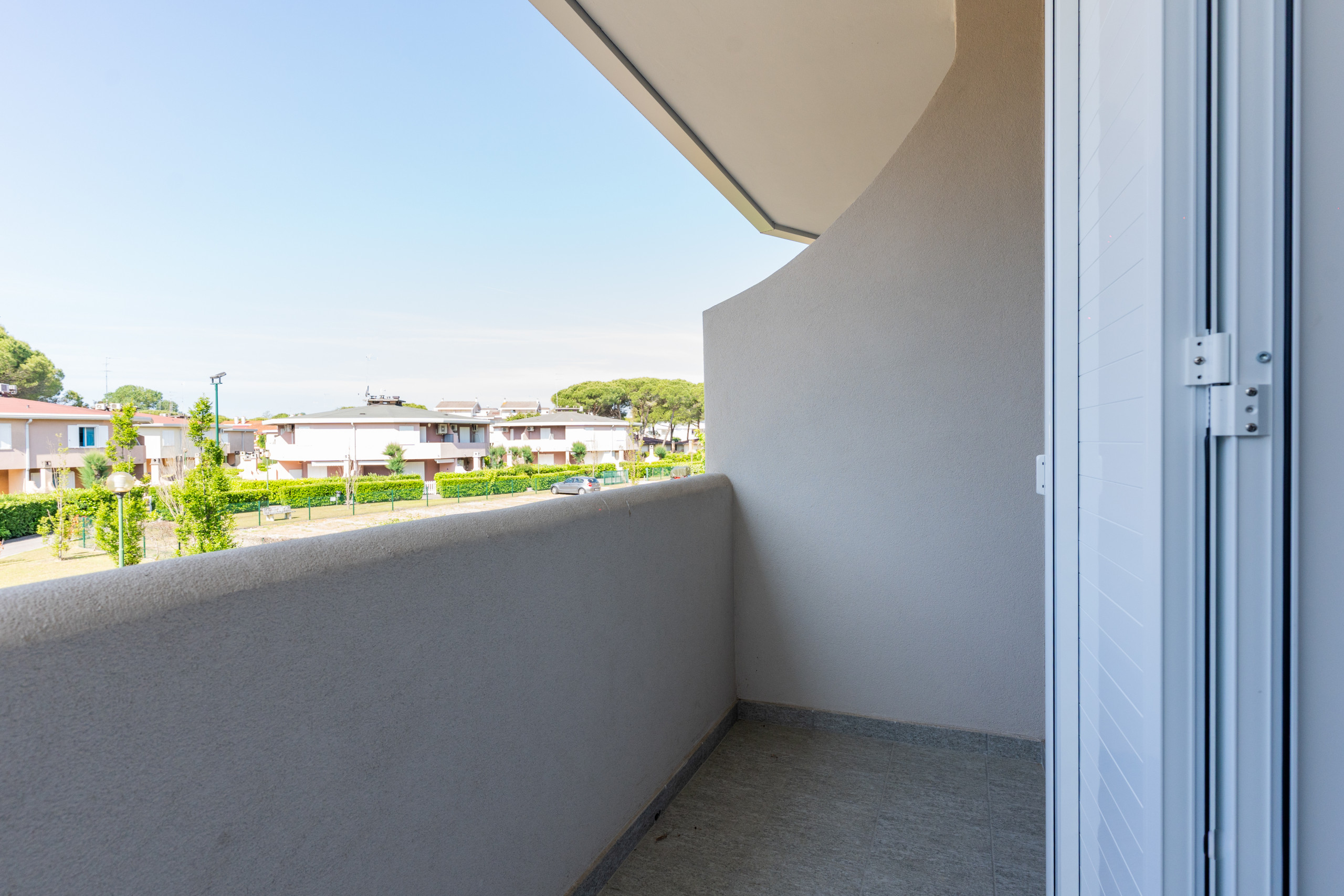 Die renovierten Dreizimmerwohnungen, die sich zwischen dem zweiten und dritten Stock befinden, bieten geräumige Terrassen oder Balkone mit Ausrichtung nach Süden oder Nordwesten, ideal zum Genießen eines Kaffees in der Sonne oder eines Abendessens im Freien mit Blick auf verschiedene Ausblicke von Bibione.