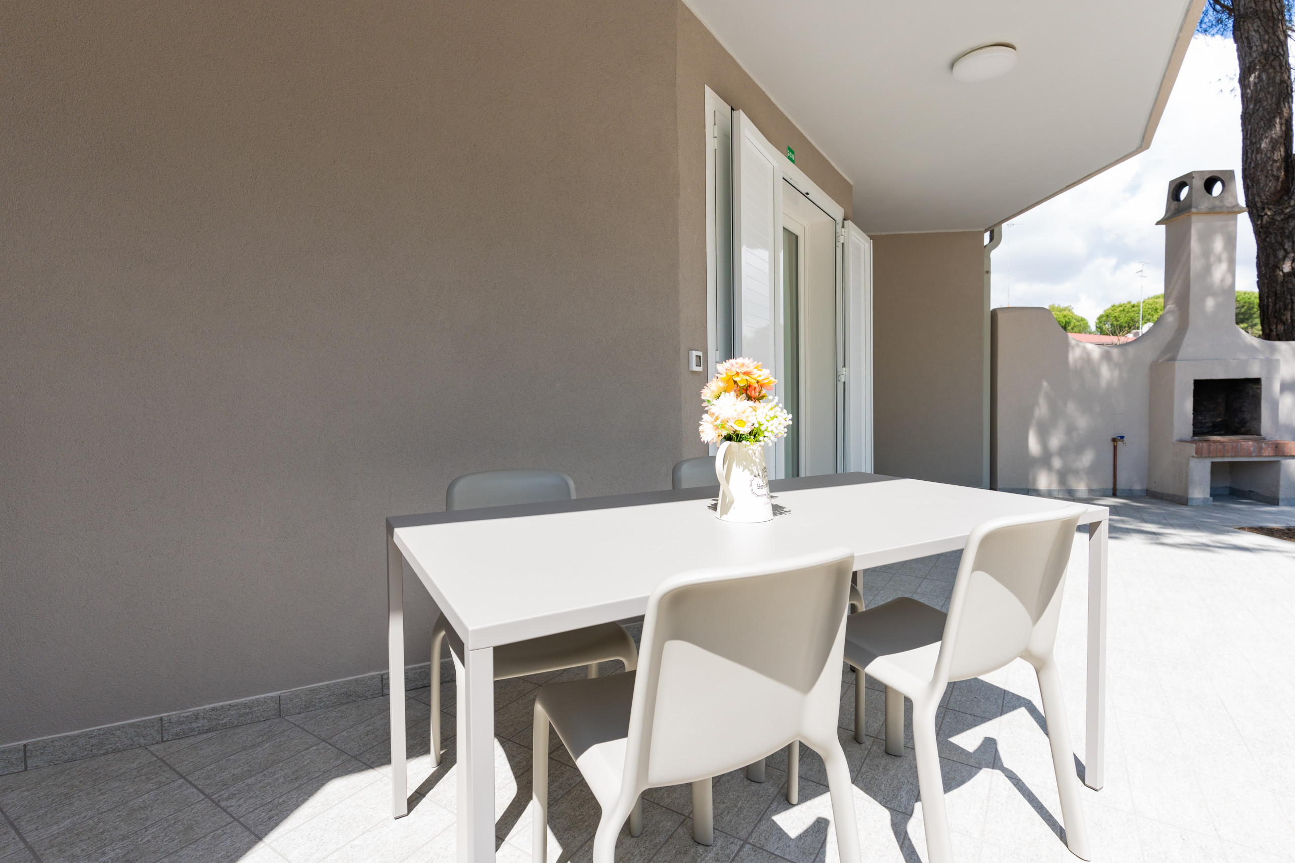 Alle Apartments verfügen über einen externen Kamin und einen nummerierten, offenen Parkplatz und gewährleisten so Unabhängigkeit und Komfort. Der ausgestattete Strand, nur 800 Meter entfernt, bietet reservierte Sonnenschirme und Liegen, die bereits im Preis inbegriffen sind, um Tage am Meer in völliger Entspannung zu verbringen.