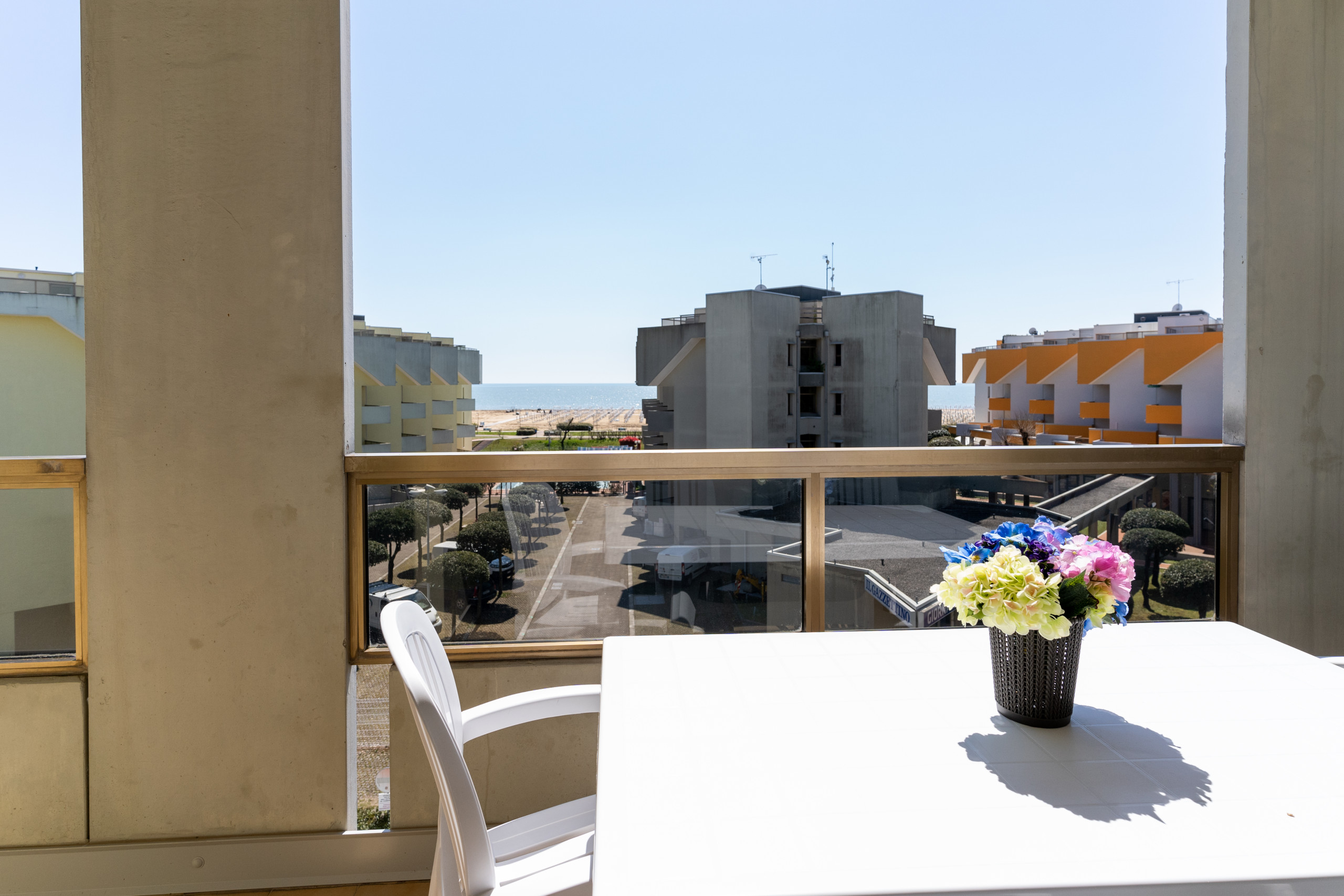 Die renovierten Dreizimmerwohnungen, die sich zwischen dem zweiten und dritten Stock befinden, bieten geräumige Terrassen oder Balkone mit Ausrichtung nach Süden oder Nordwesten, ideal zum Genießen eines Kaffees in der Sonne oder eines Abendessens im Freien mit Blick auf verschiedene Ausblicke von Bibione.
