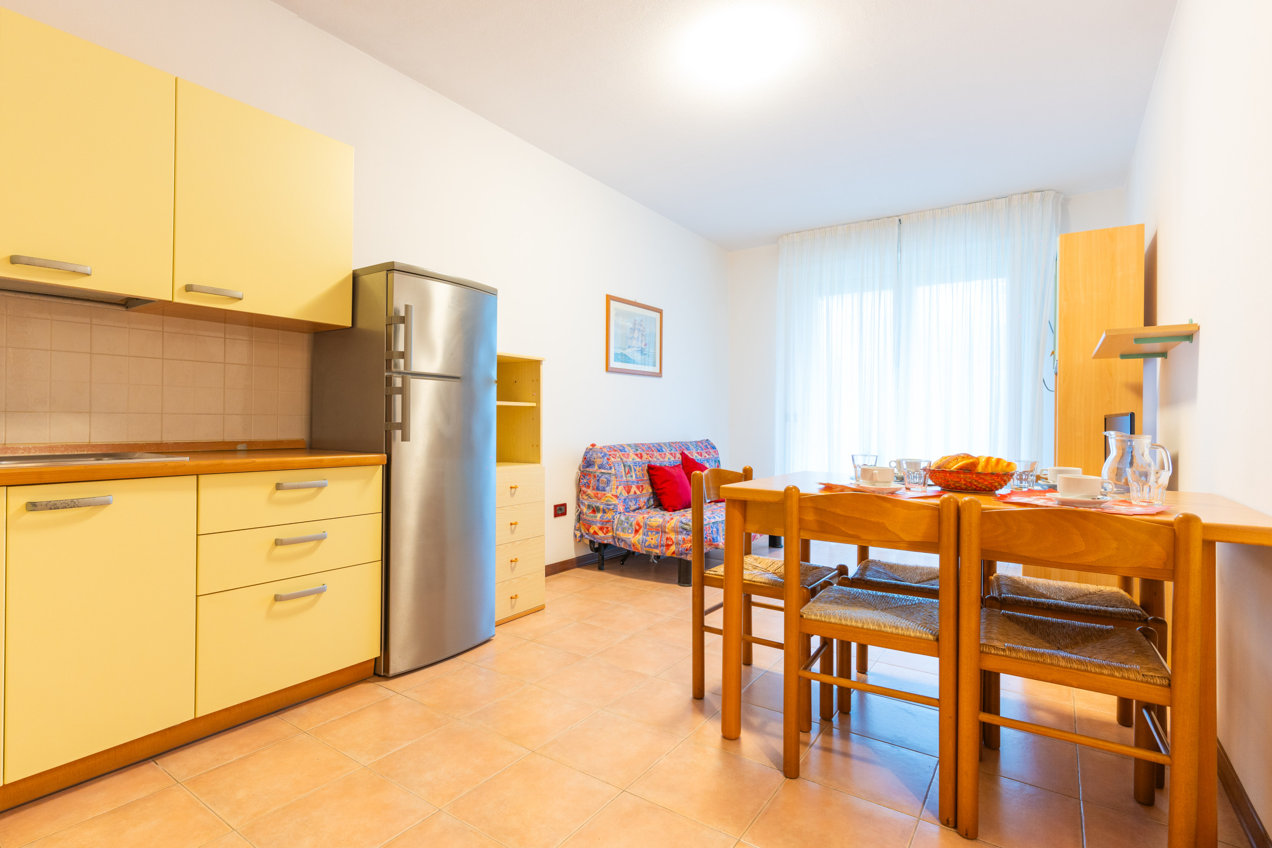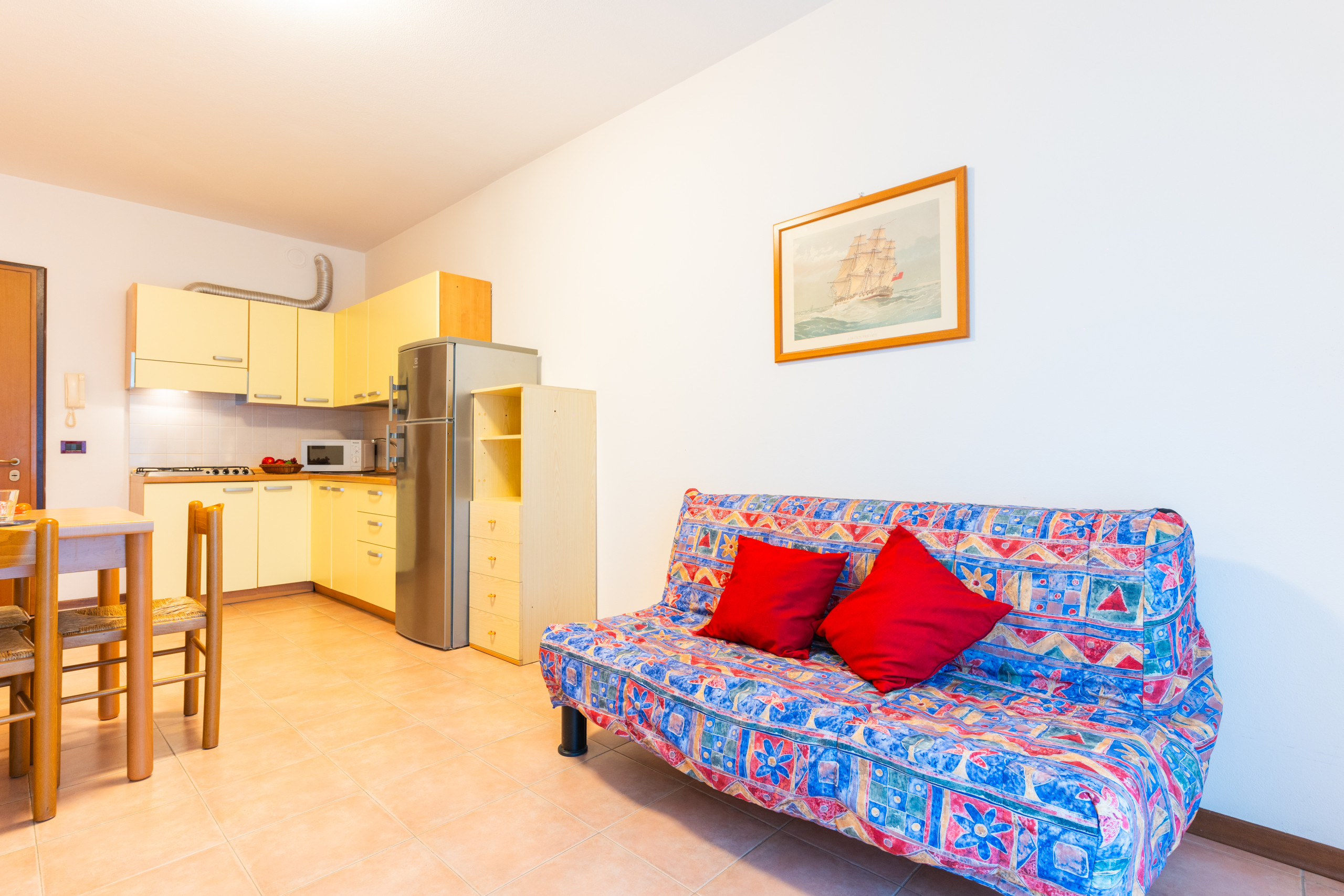 Die Zwei-Zimmer-Wohnungen, die sich im 1. oder 2. Stock der Residenzen mit Aufzug im Villaggio Lido del Sole befinden, sind auf einer Ebene verteilt und verfügen alle über einen charmanten Balkon mit herrlichen Ausblicken und unterschiedlichen Ausrichtungen.
