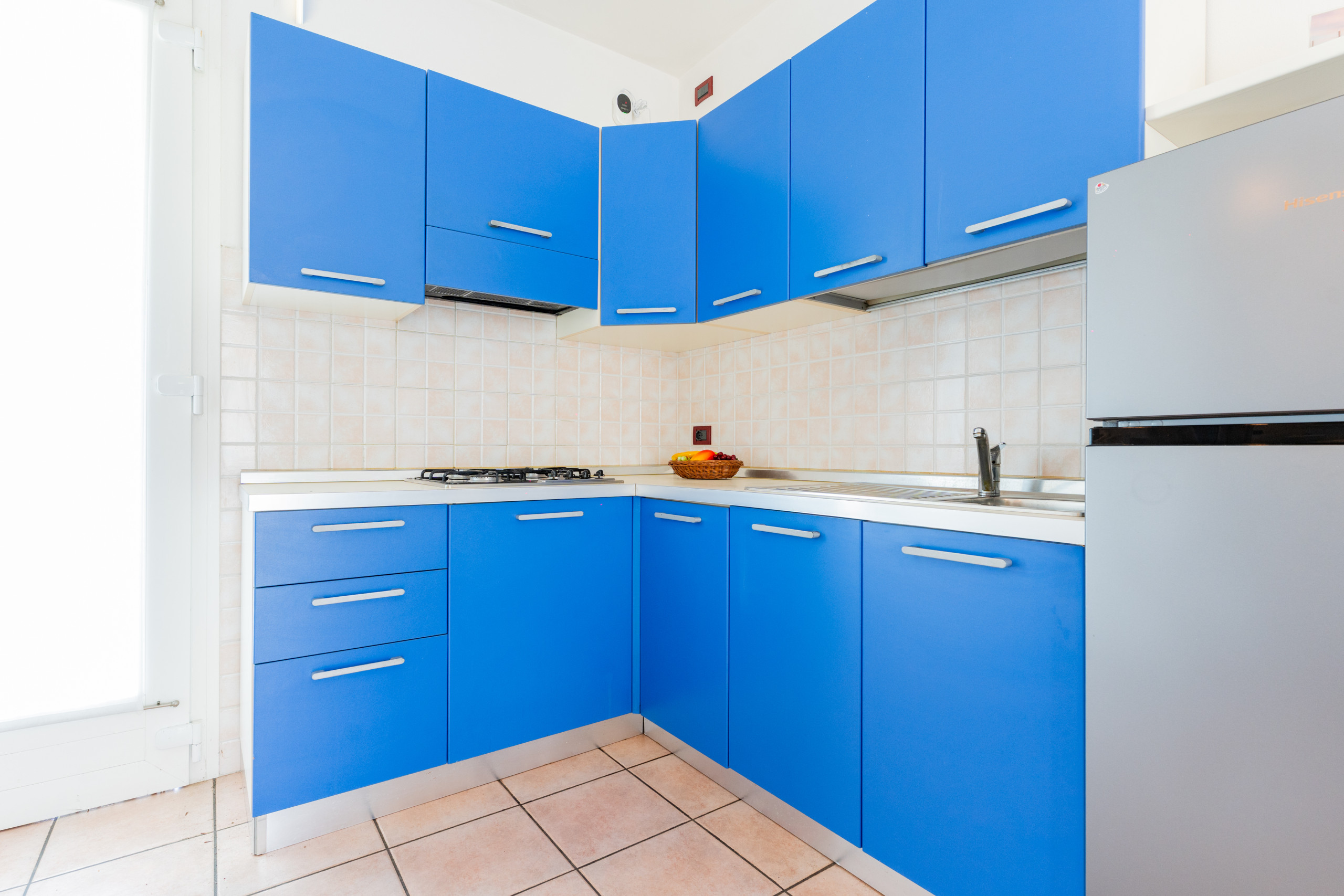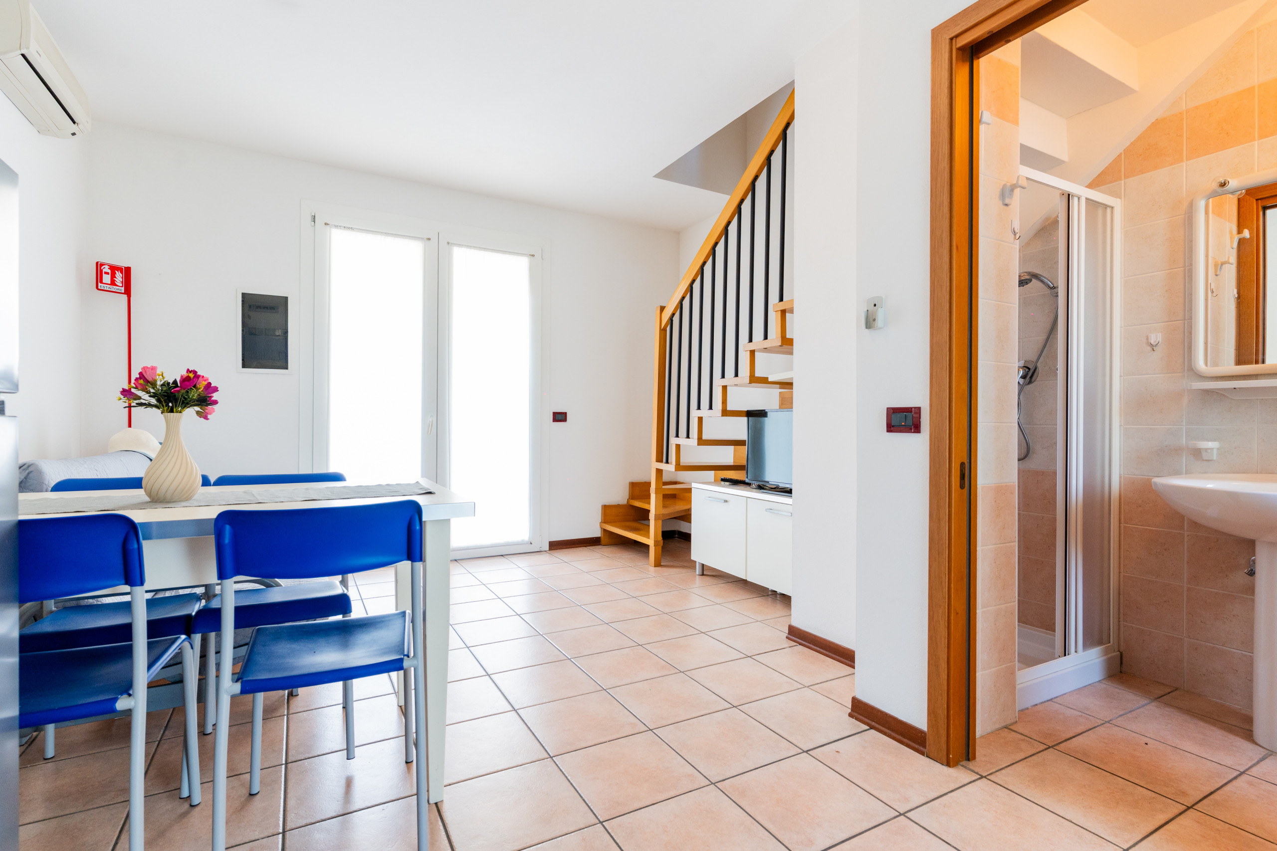 Die Dreizimmerwohnung, die sich im Erdgeschoss befindet, kann bis zu 6 Personen beherbergen und bietet einladende und lichtdurchflutete Räume. Sie besteht aus einem Wohnzimmer mit ausgestatteter Küchenzeile und Doppelbettsofa, einem privaten Garten, der ideal für Mahlzeiten oder Entspannung im Freien ist, einem Badezimmer mit Dusche, einem Schlafzimmer mit Doppelbett und Zusatzbett sowie einem Kinderzimmer mit Einzelbett.