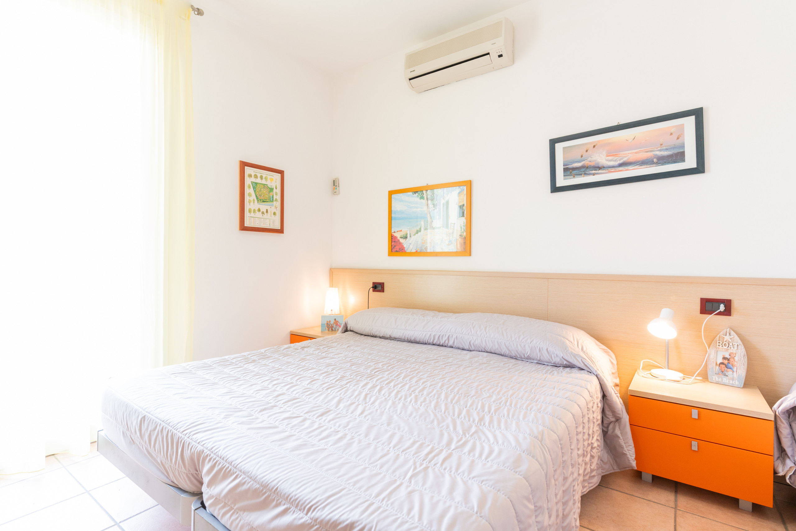 Im ersten Stock ein Schlafzimmer mit Balkon, ausgestattet mit einem Doppelbett und einem Einzelbett, und ein geräumiges Badezimmer mit Duschkabine. Die Ferienhäuser sind mit allem Notwendigen zum Kochen ausgestattet (Kühlschrank mit Gefrierfach, Mikrowelle), Satelliten-TV, Klimaanlage und Tresor. Ein Parkplatz ist im Preis inbegriffen.