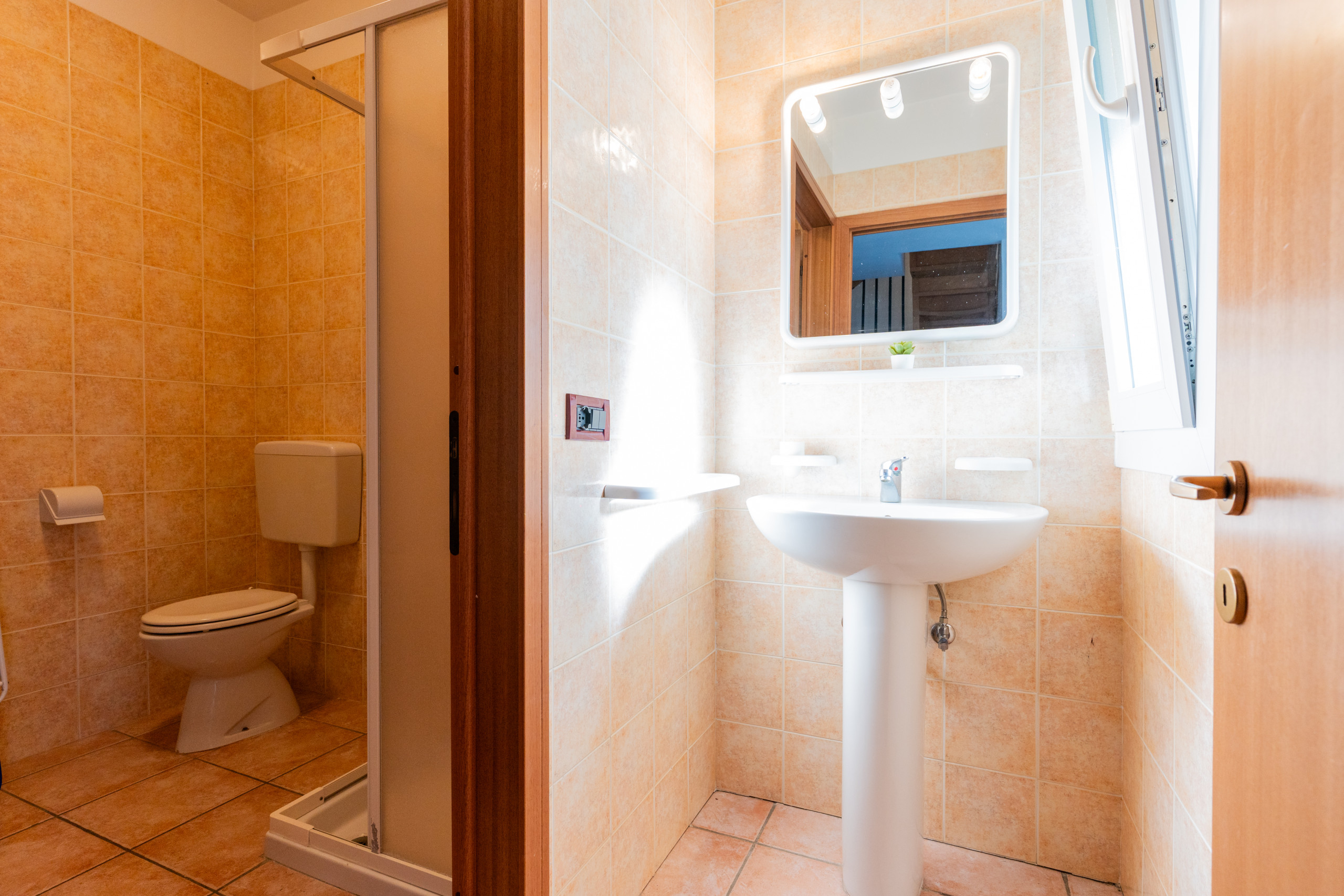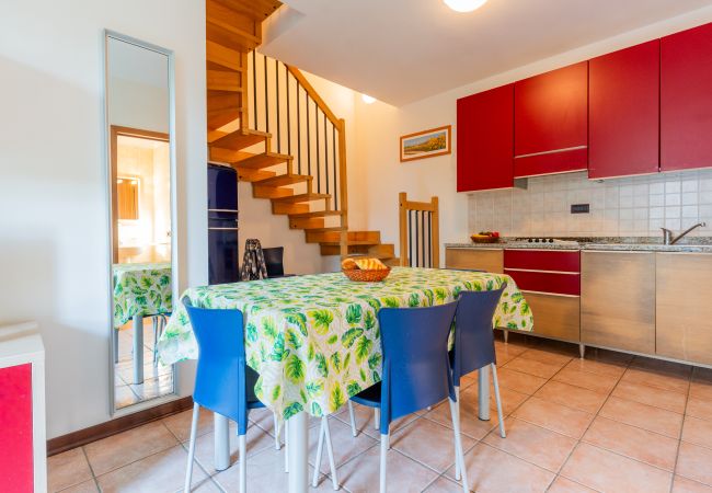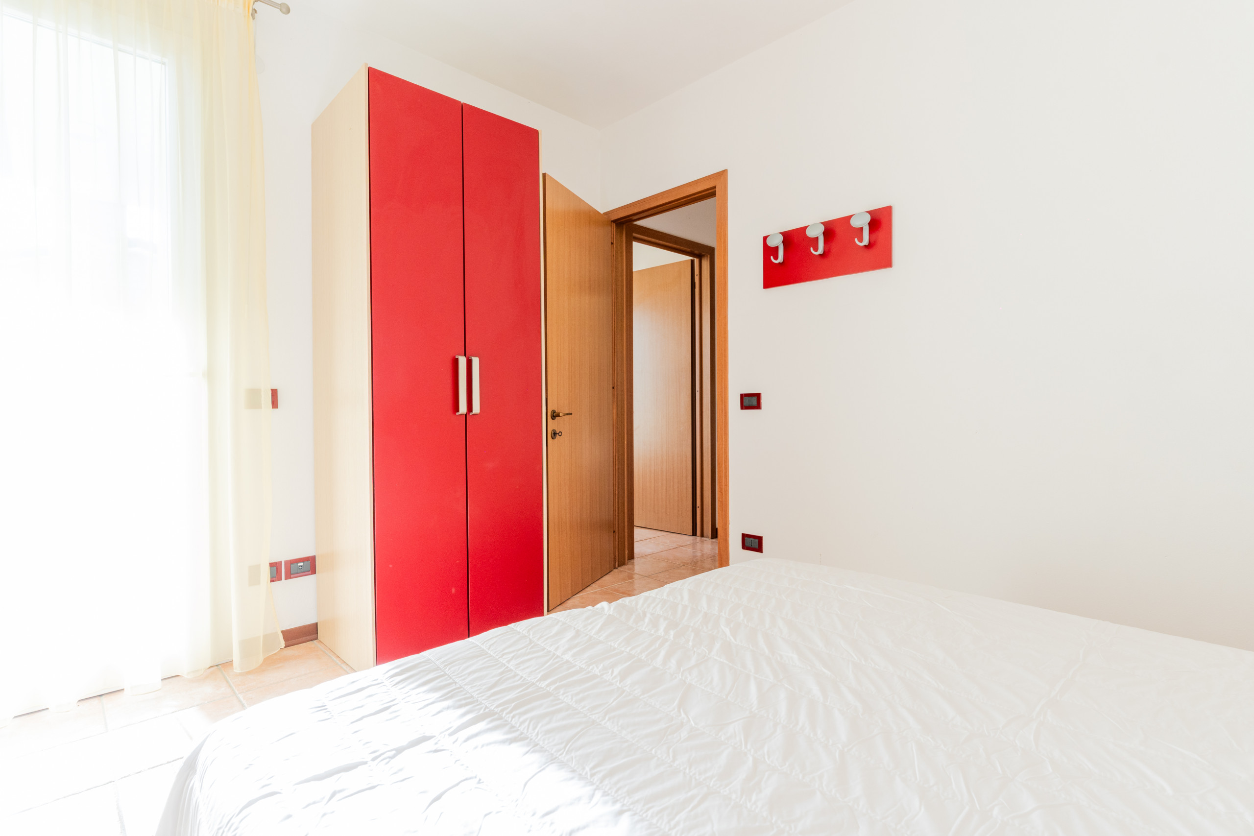 Die Dreizimmerwohnung, die sich im Erdgeschoss befindet, kann bis zu 6 Personen beherbergen und bietet einladende und lichtdurchflutete Räume. Sie besteht aus einem Wohnzimmer mit ausgestatteter Küchenzeile und Doppelbettsofa, einem privaten Garten, der ideal für Mahlzeiten oder Entspannung im Freien ist, einem Badezimmer mit Dusche, einem Schlafzimmer mit Doppelbett und Zusatzbett sowie einem Kinderzimmer mit Einzelbett.