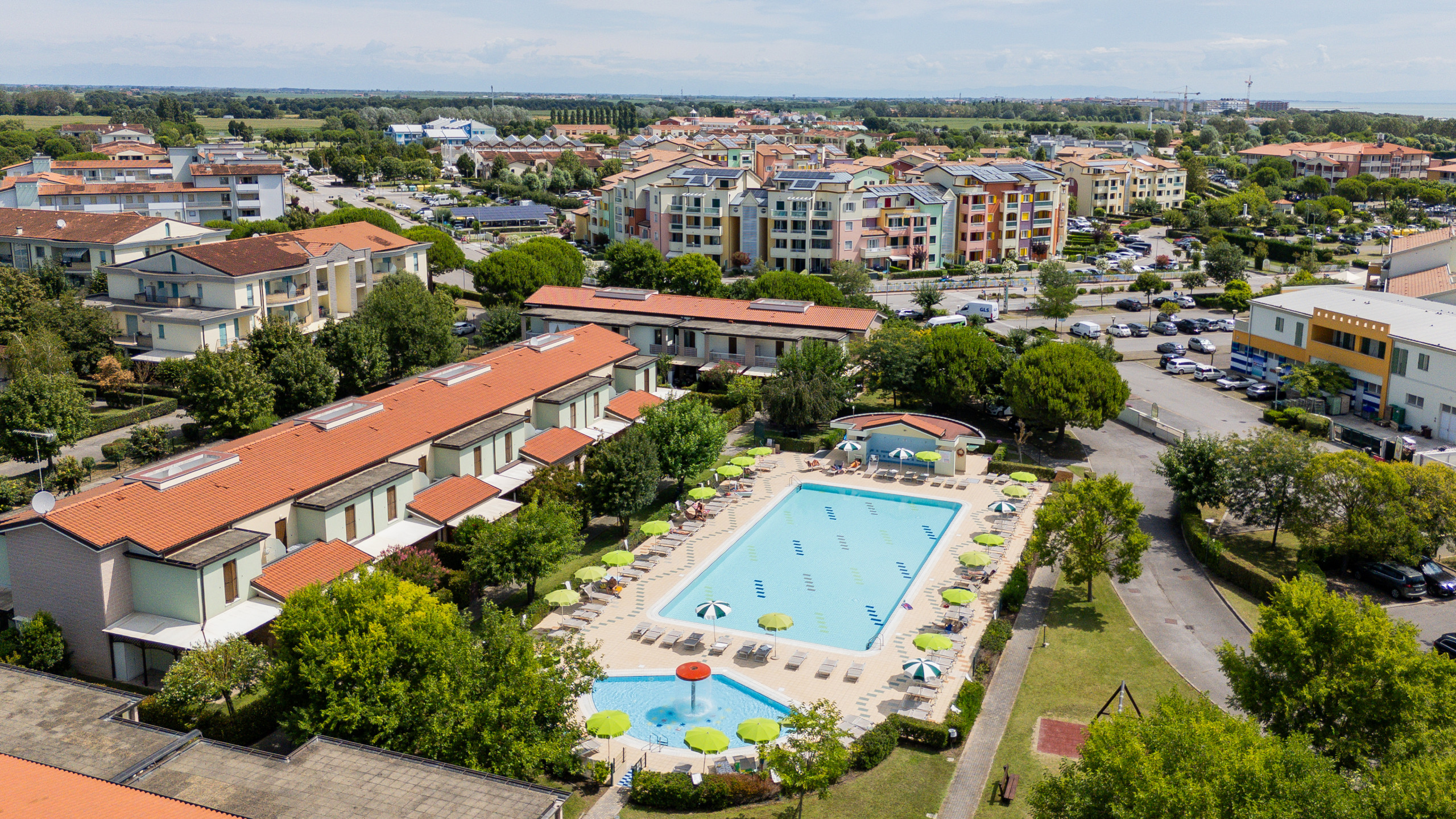 Die Struktur besteht aus 64 Immobilieneinheiten mit kleinem Garten, alle um den Erwachsenen- und Kinderpool herum angeordnet, wodurch eine einladende und angenehme Atmosphäre entsteht.