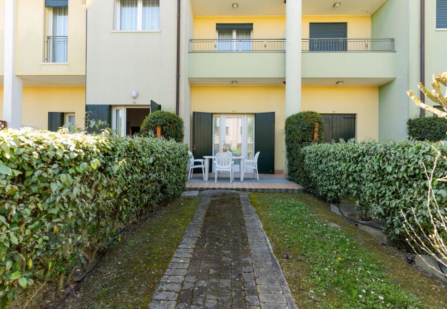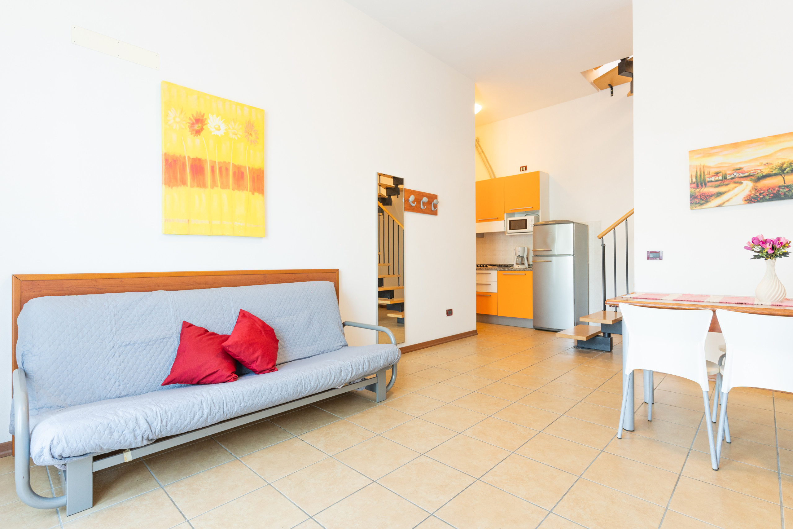Zweiraumvilla auf 2 Etagen, Garten, Kochnische und Doppelschlafcouch, im 1. Stock: Badezimmer, Schlafzimmer mit Doppelbett und Zusatzbett. "La Quercia" Arkade ist den Treffpunkt aller Feriendoerfer in Caorle Lido Altanea. Ein geraumiger Platz und eine bedeckte Fussgaengergalerie mit Geschaefte, Cafes, Restaurants, Dachschwimmbad werden ein Rahmen fuer die touristische Ferienanlage, welche aus 22 Geschaefte und 84 Wohnungen besteht. Verfügbarer Strandservice gegen Gebuehr (Informationen bei Lampo Caorle Lido Altanea).