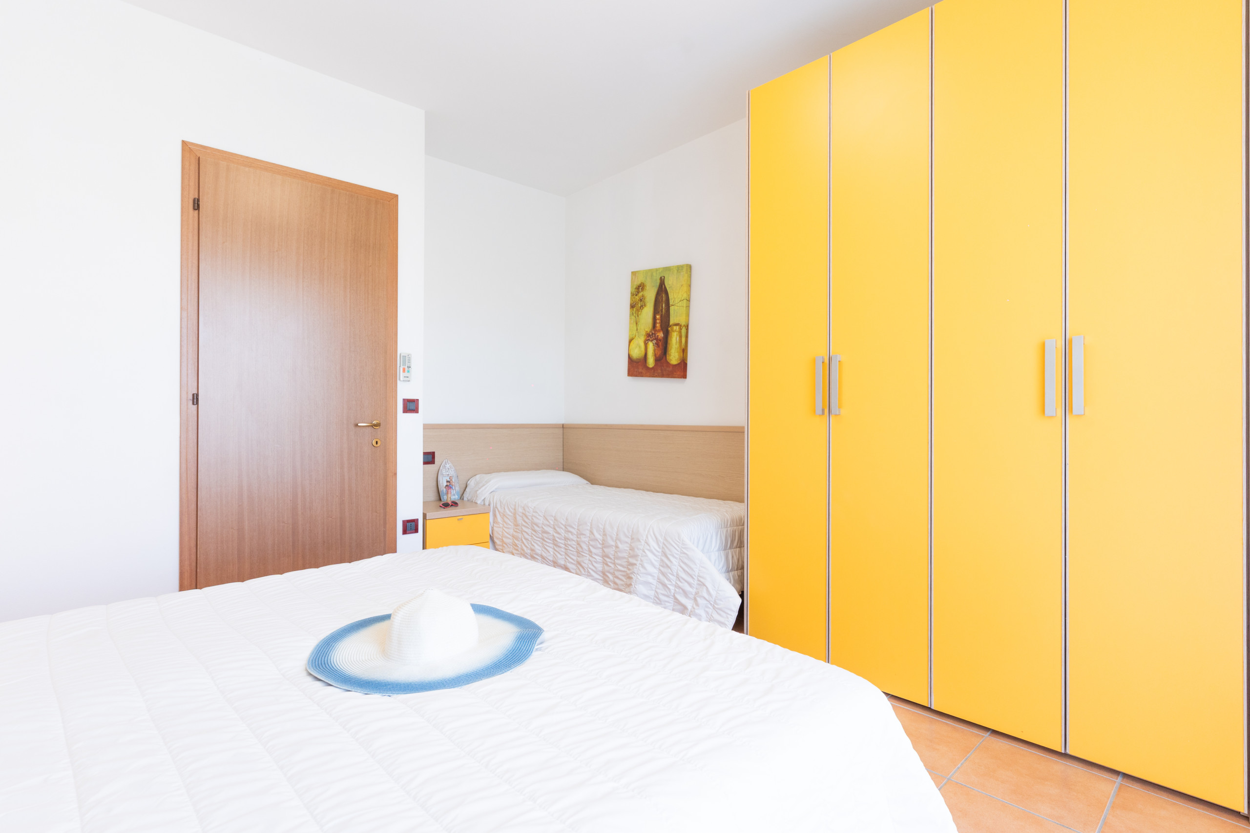 Im ersten Stock ein Schlafzimmer mit Balkon, ausgestattet mit einem Doppelbett und einem Einzelbett, und ein geräumiges Badezimmer mit Duschkabine. Die Ferienhäuser sind mit allem Notwendigen zum Kochen ausgestattet (Kühlschrank mit Gefrierfach, Mikrowelle), Satelliten-TV, Klimaanlage und Tresor. Ein Parkplatz ist im Preis inbegriffen.