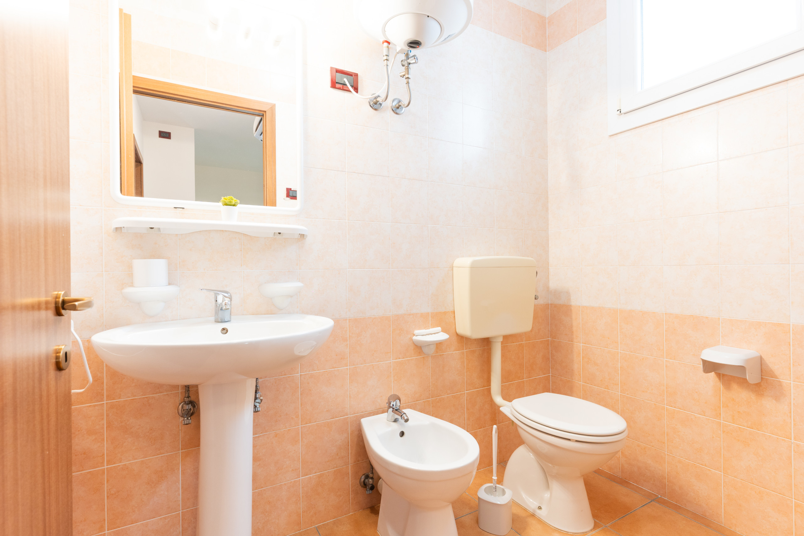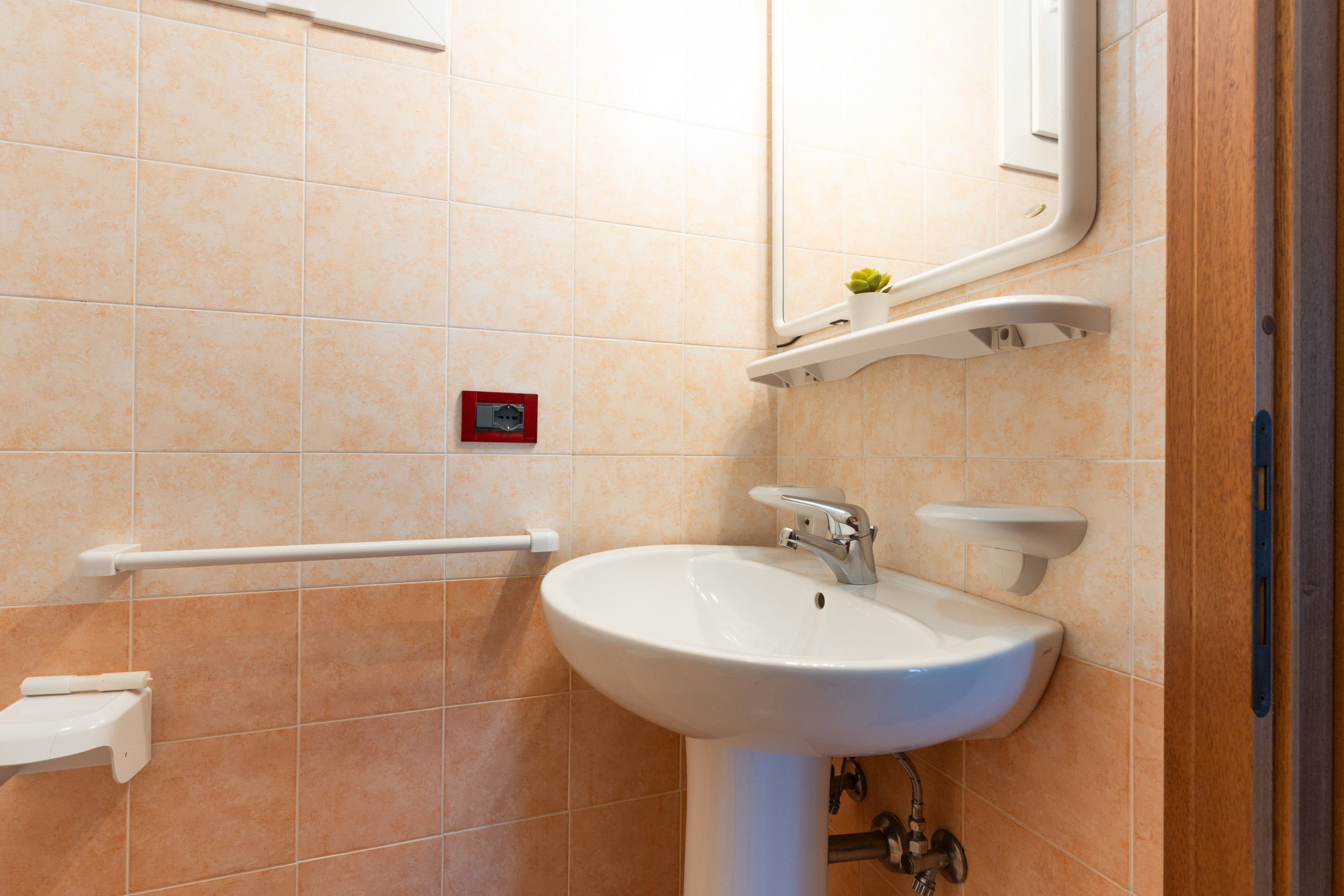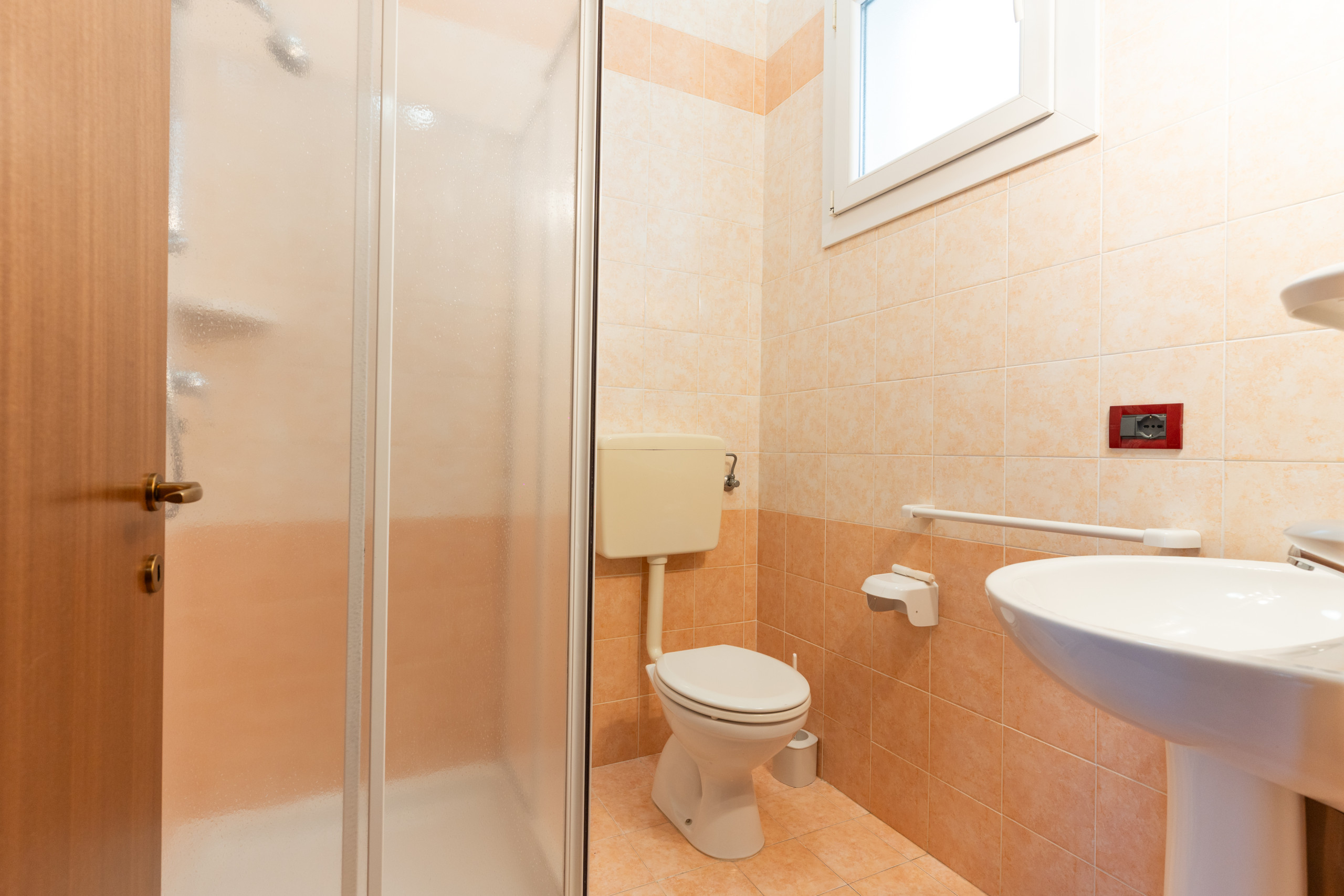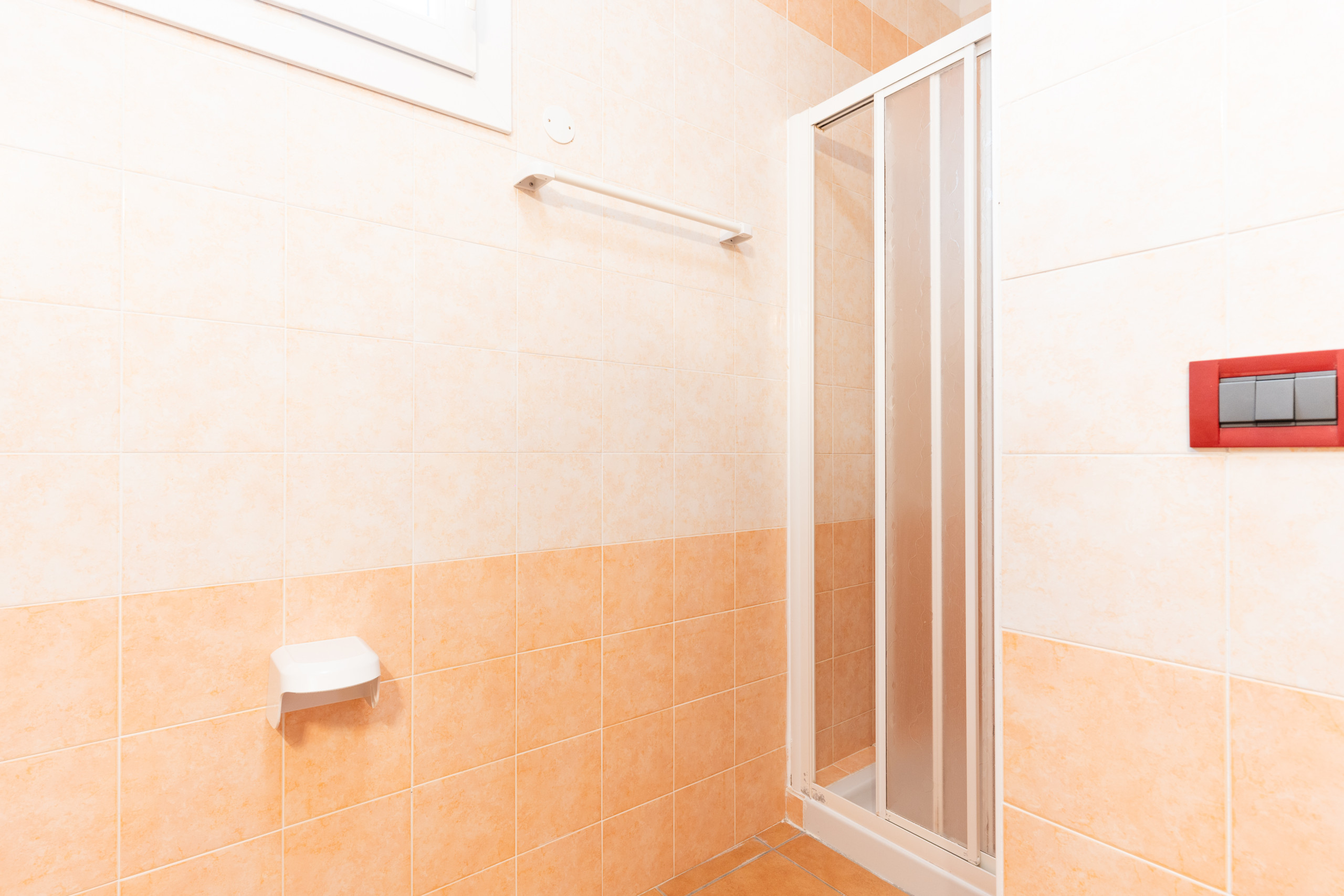 - Obergeschoss, erreichbar über eine Innentreppe: zwei Schlafzimmer (teilweise mit Balkon), eines mit Doppelbett und Einzelbett, das andere mit zwei Einzelbetten, sowie ein modernes Badezimmer mit Duschkabine.