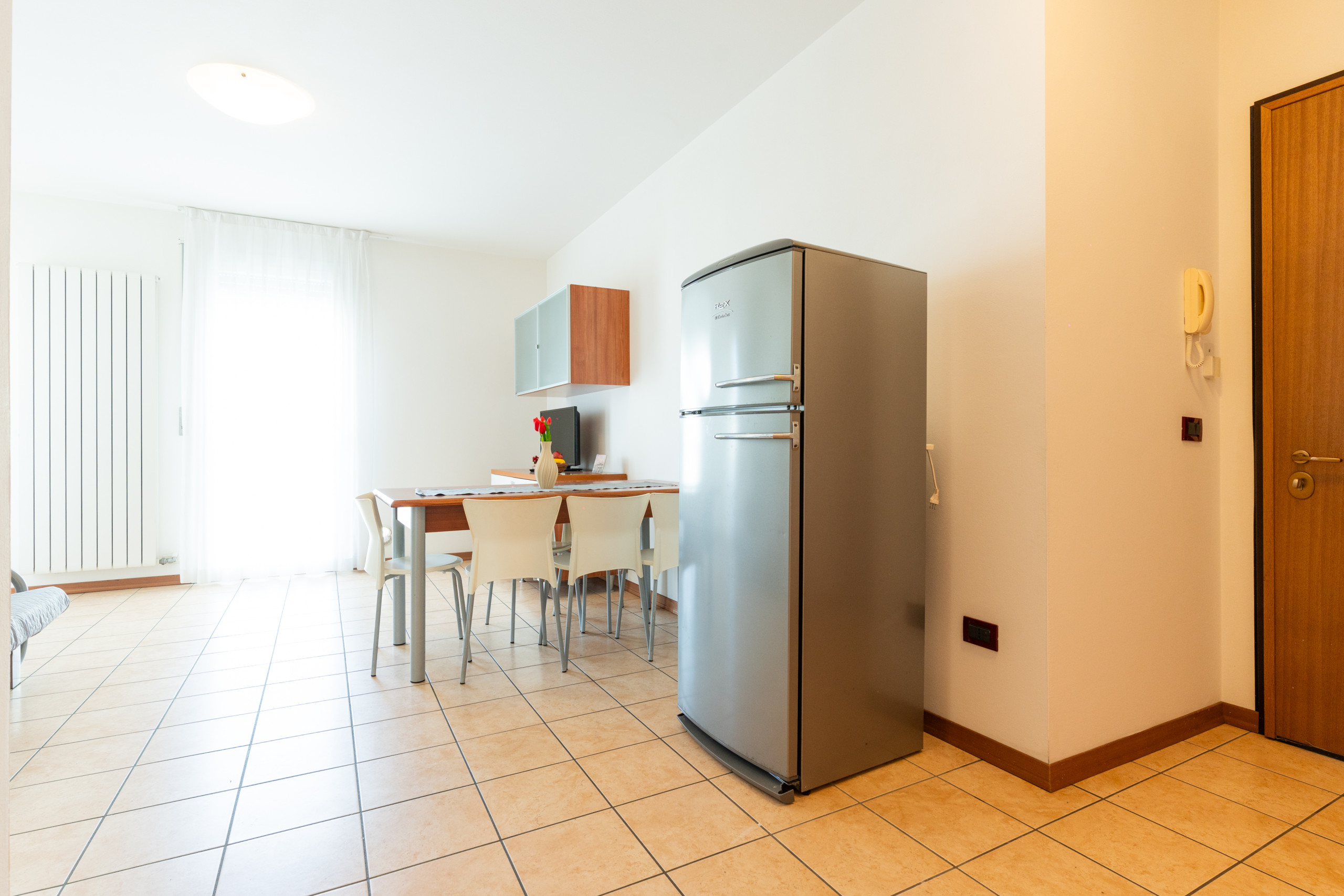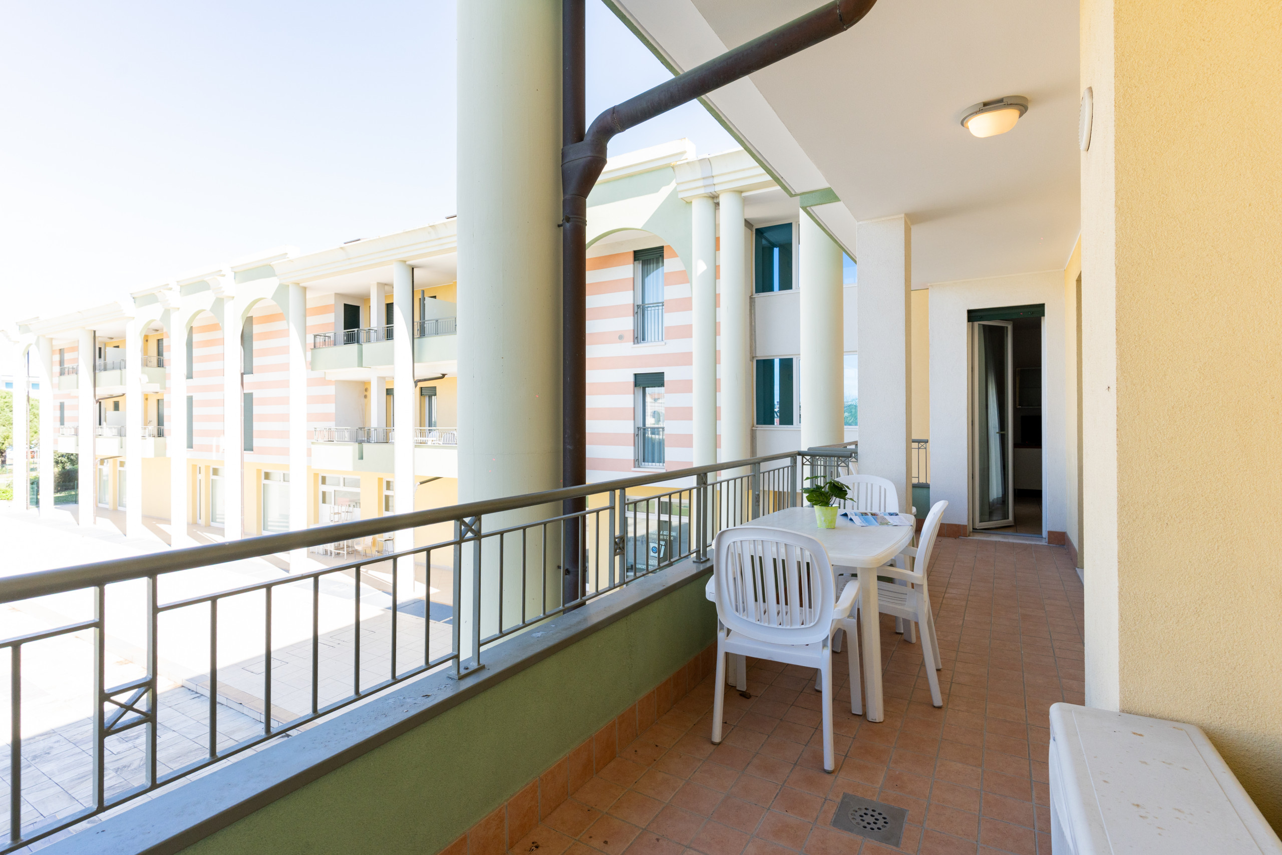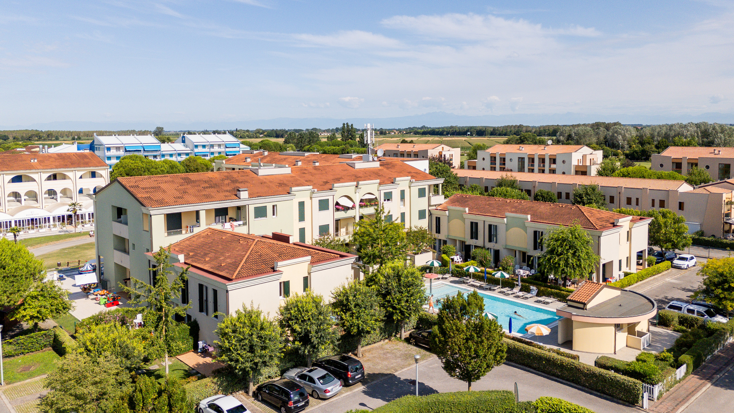 Alle Appartements liegen auf einer Ebene und bieten verschiedene Ausblicke: auf die Innenallee, den Pool oder die stimmungsvolle Piazza Rosa dei Venti.