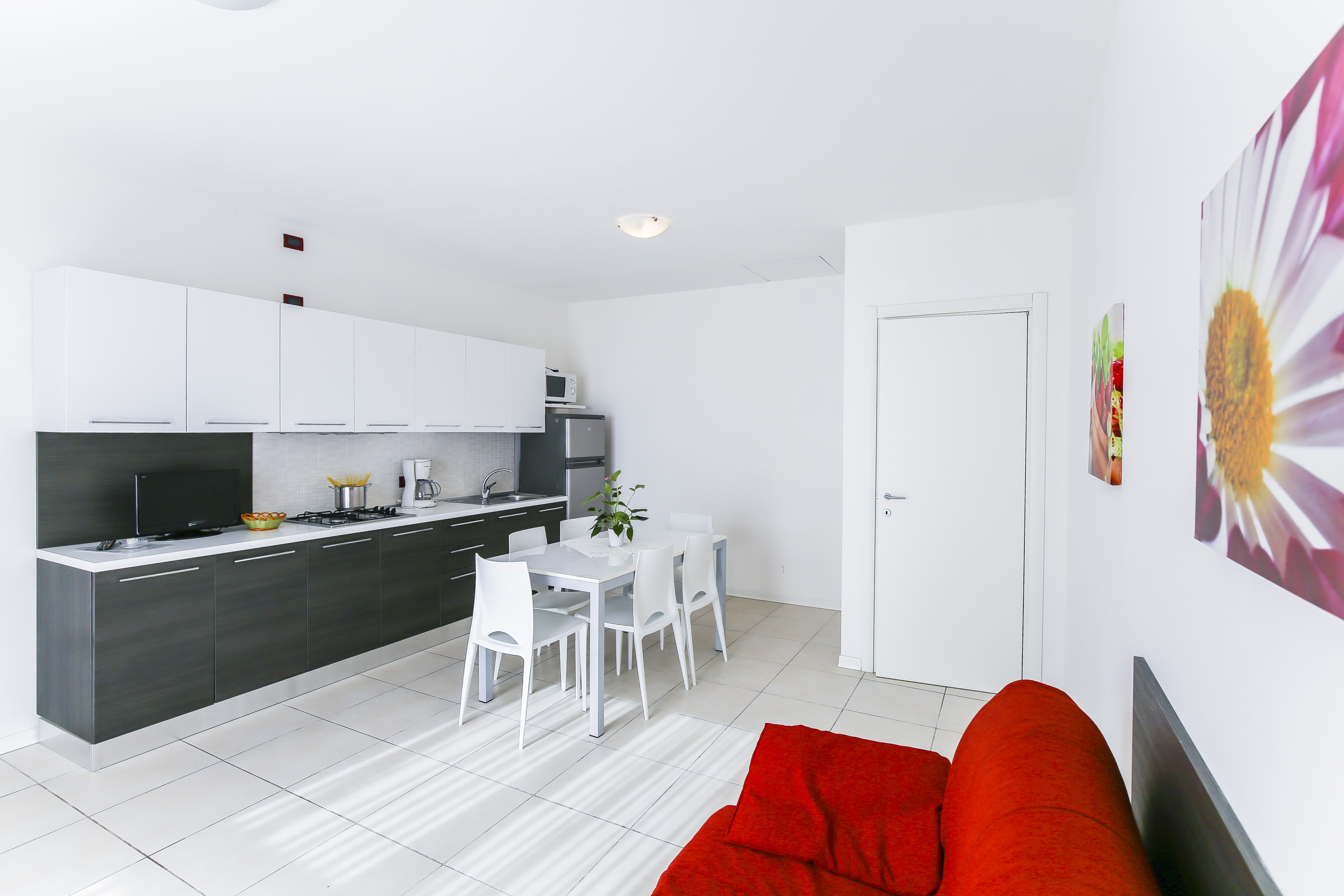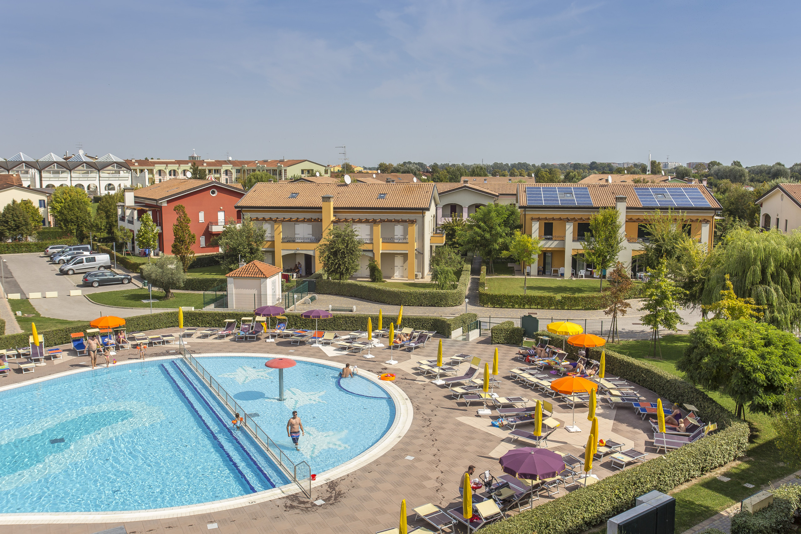 Die Residenz besteht aus 4 eleganten Ferienhäusern, von denen jedes 6 moderne und komfortable Apartments umfasst. Um Ihren Aufenthalt noch angenehmer zu gestalten, finden Sie einen wunderschönen Pool für Erwachsene und Kinder, mit einer Terrasse, die mit Sonnenliegen und Sonnenschirmen ausgestattet ist, wo Sie sich unter der Sonne entspannen können.