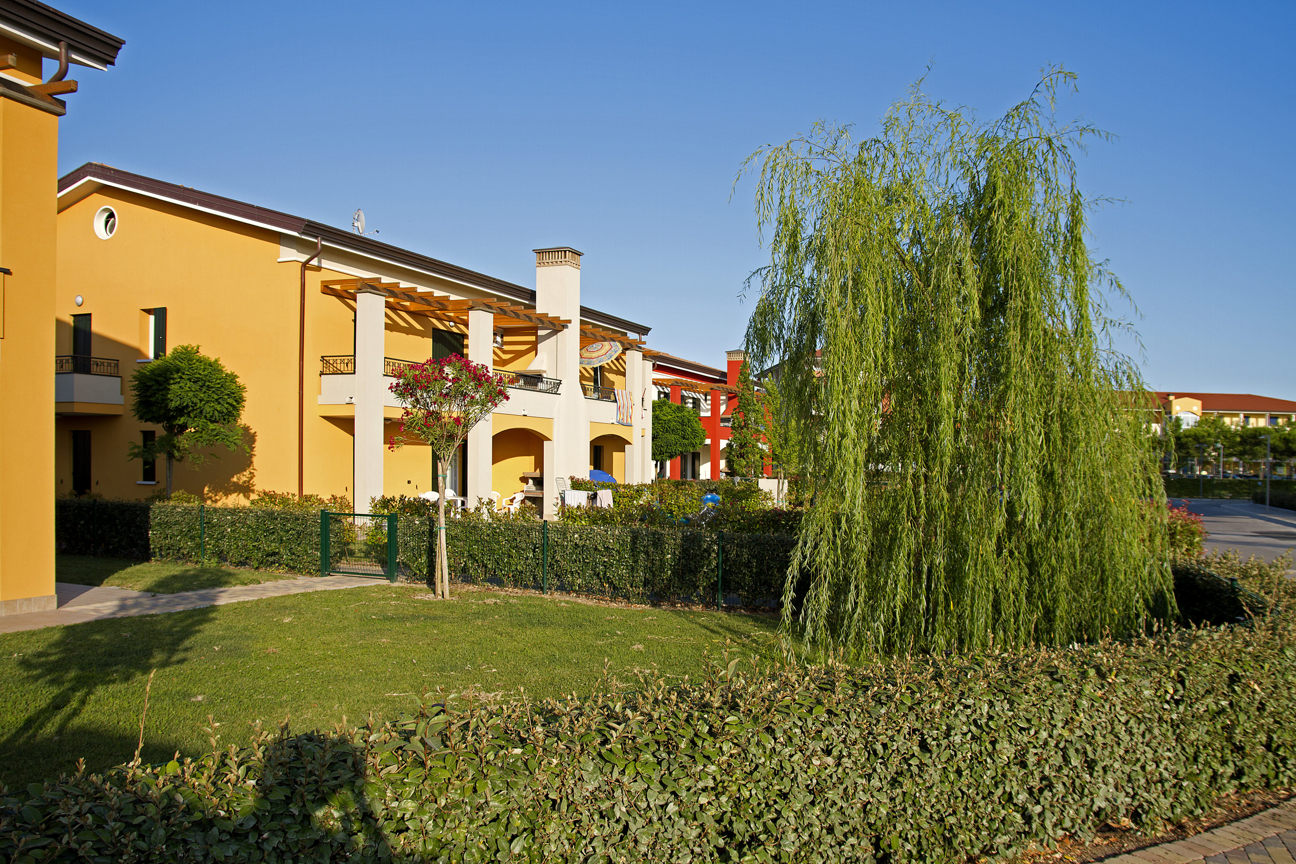 Das Villaggio Tigli befindet sich an einer ruhigen Lage, nur 500 Meter vom Strand entfernt, der dank des kostenlosen Shuttle-Services bequem erreichbar ist. Die Anlage umfasst unabhängige Villen, die sich über zwei Etagen erstrecken, jede mit einem privaten Garten, sowie Apartments mit Aufzugservice, die ideal für Familien und Freundesgruppen sind.