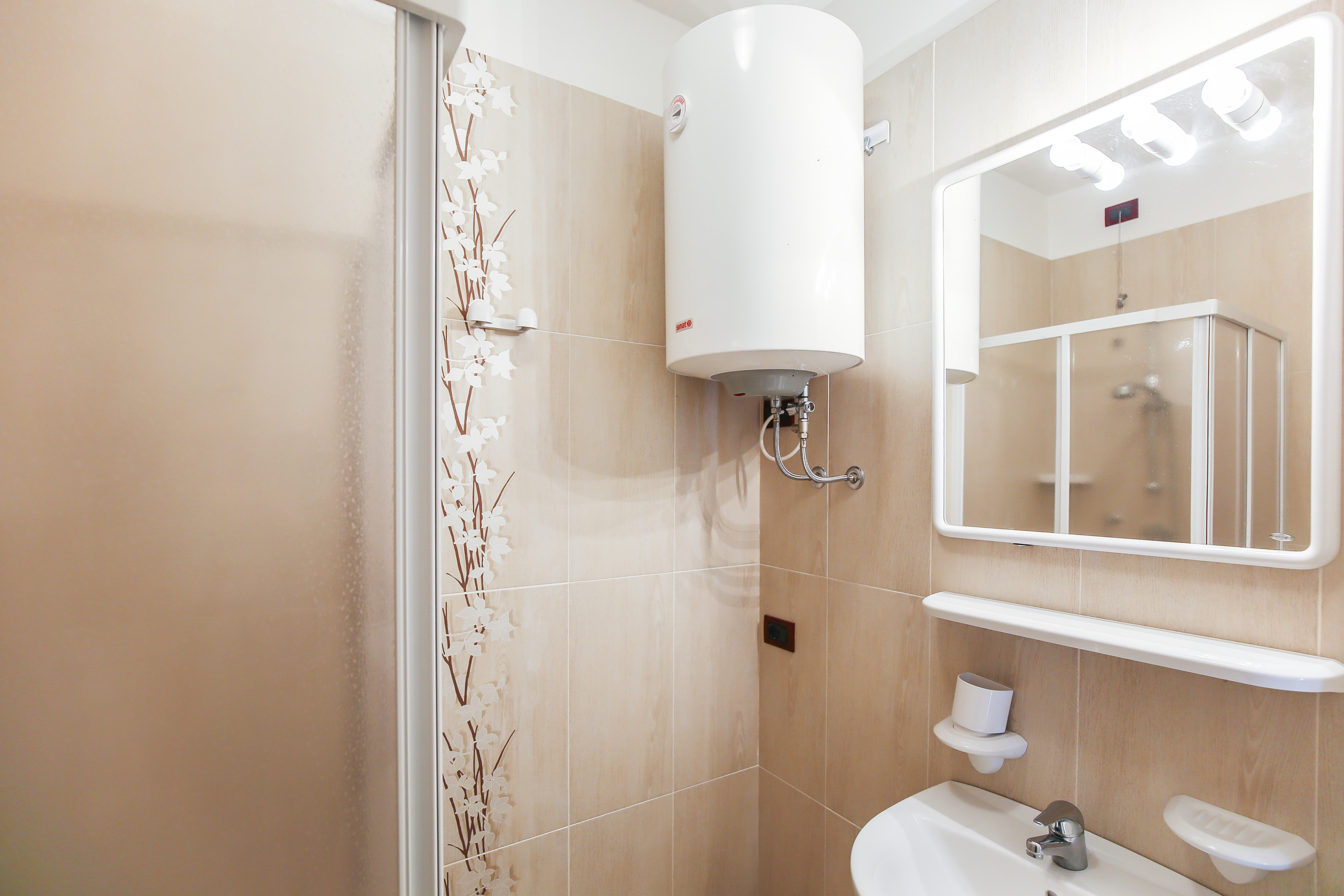 • ein modernes Badezimmer mit Duschkabine.