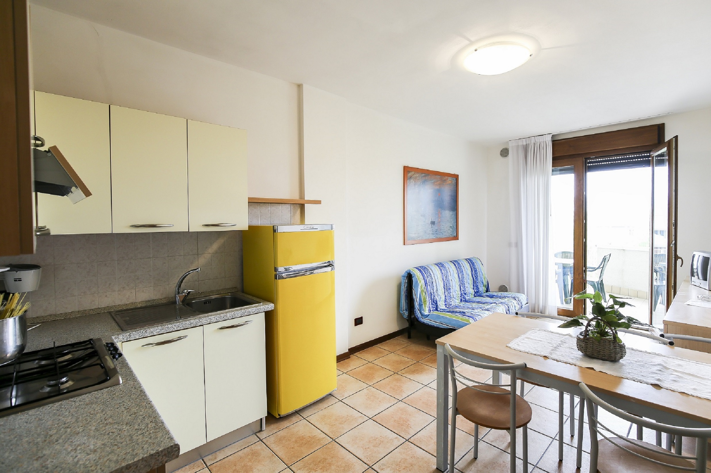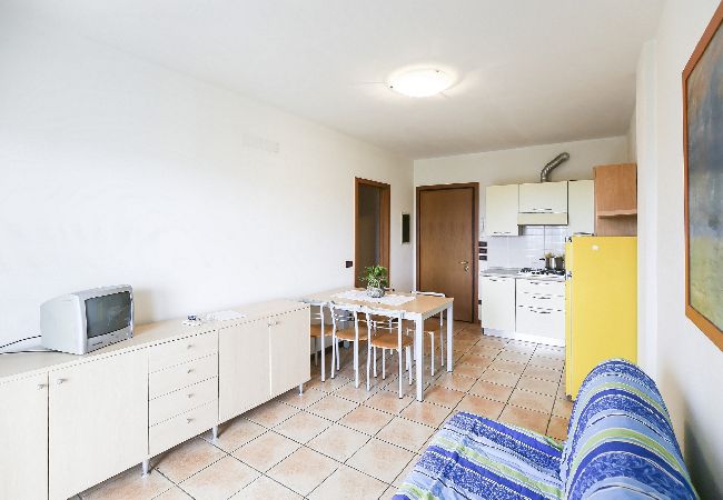 Die Zweizimmerwohnungen an den CARPINI (50 m²) sind gemütlich und funktional, ideal für einen komfortablen Aufenthalt. Auf zwei Etagen verteilt, bieten sie einen Garten und eine möblierte Veranda, perfekt für Mahlzeiten im Freien.