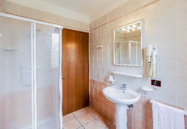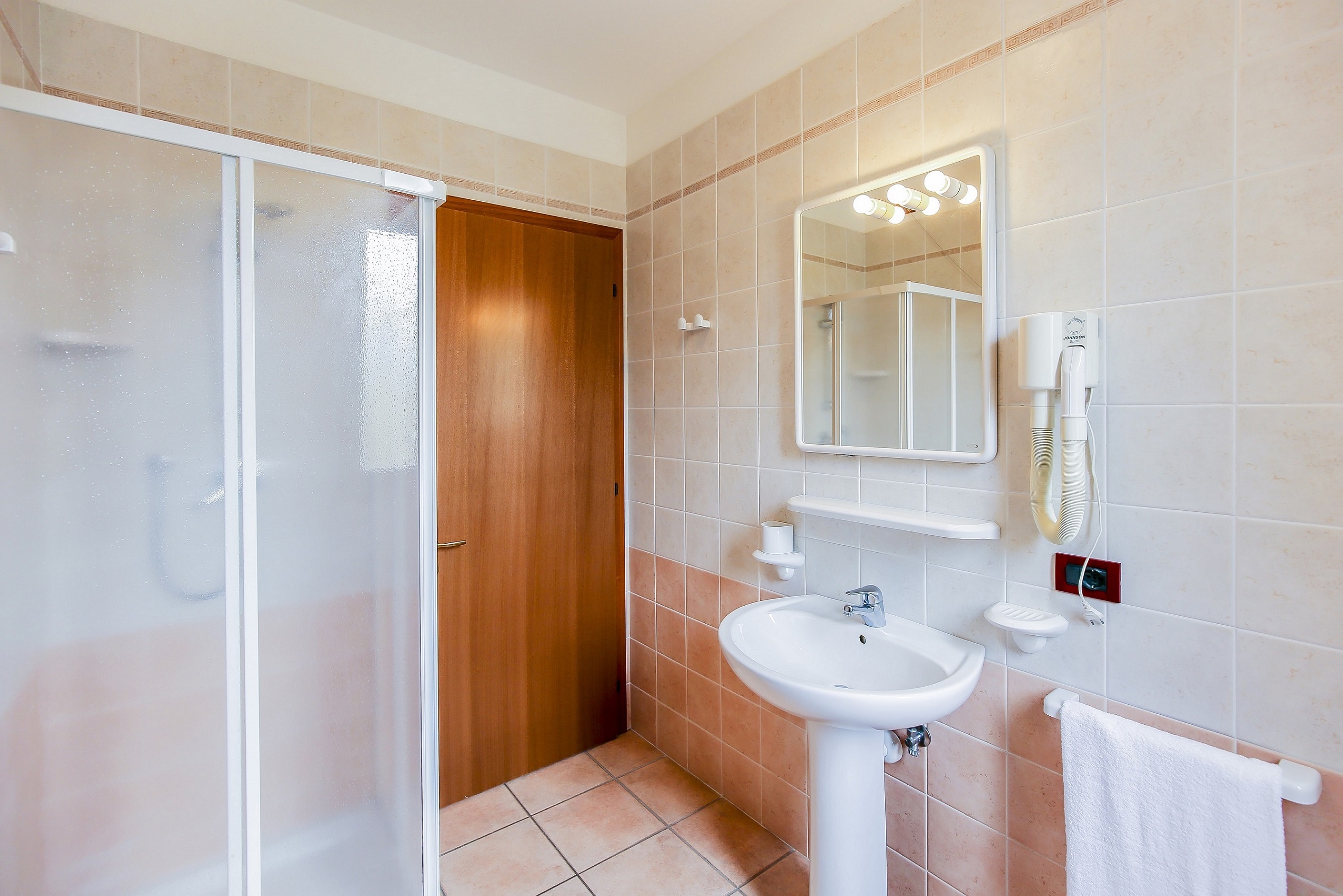 Die Dreizimmerwohnung, die sich im Erdgeschoss befindet, kann bis zu 6 Personen beherbergen und bietet einladende und lichtdurchflutete Räume. Sie besteht aus einem Wohnzimmer mit ausgestatteter Küchenzeile und Doppelbettsofa, einem privaten Garten, der ideal für Mahlzeiten oder Entspannung im Freien ist, einem Badezimmer mit Dusche, einem Schlafzimmer mit Doppelbett und Zusatzbett sowie einem Kinderzimmer mit Einzelbett.