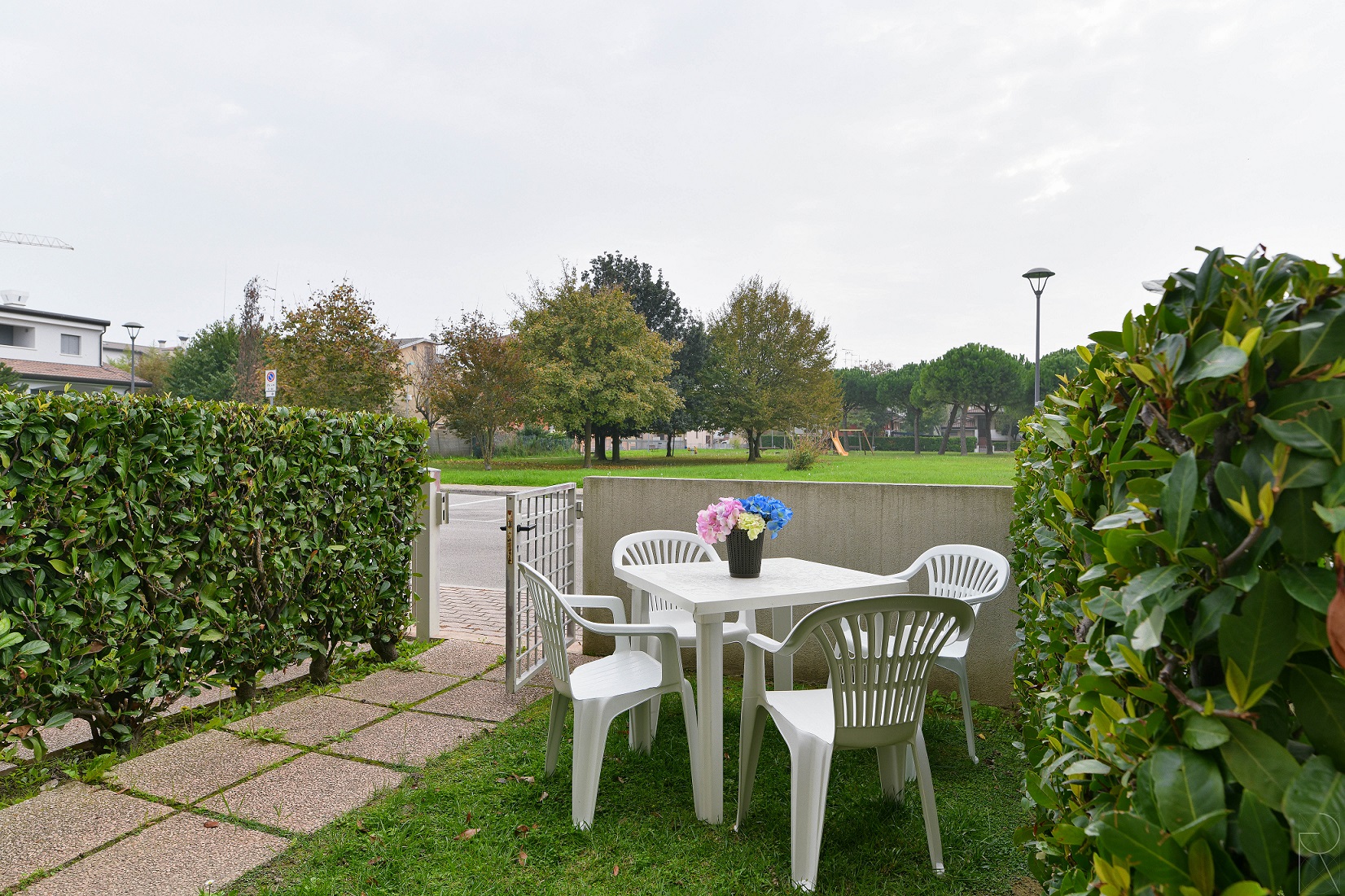 Die Villen genießen verschiedene Ausrichtungen: zur Schwimmbadseite oder zur Zufahrtsallee. Einige Einheiten verfügen über einen Garten und eine möblierte Veranda, andere nur über eine Veranda, die immer mit Tisch und Außenstühlen ausgestattet ist, ideal für Mittag- und Abendessen im Freien.