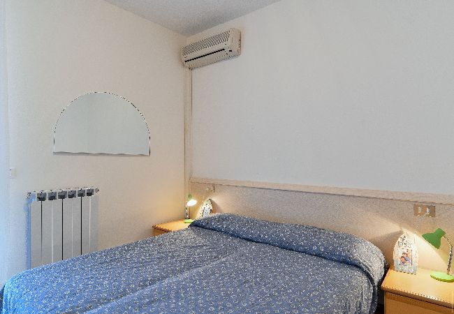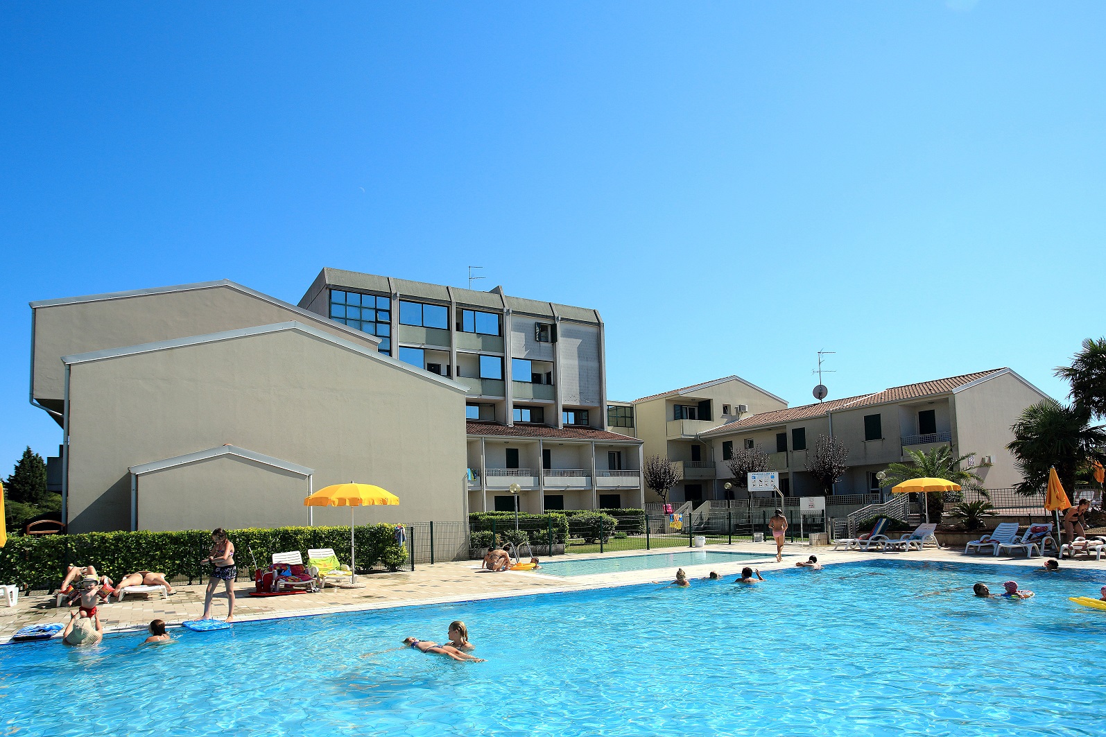 Einzimmerwohnung mit Balkon im oberen Stockwerk des Wohnhauses, bestehend aus Wohnzimmer mit Doppelbett, Schlafsessel und Klappbett, Kochnische, Badezimmer. VILLAGGIO LUNA 2 ist ein Feriendorf am Weststrand von Caorle, 250 Meter vom Meer entfernt, bestehend aus kleinen Reihenhäusern, alle auf zwei Etagen angeordnet, ausgestattet mit Klimaanlage, Safe und nummerierten Parkplätzen, einige mit privatem Garten, andere mit Terrasse. Swimmingpool für Erwachsene und Kinder, umgeben von einer Sonnenterrasse. Im Dorf gibt es auch ein Gebäude mit Aufzug (Türbreite: 75 cm) mit Wohnungen unterschiedlicher Größe, alle mit Balkon.