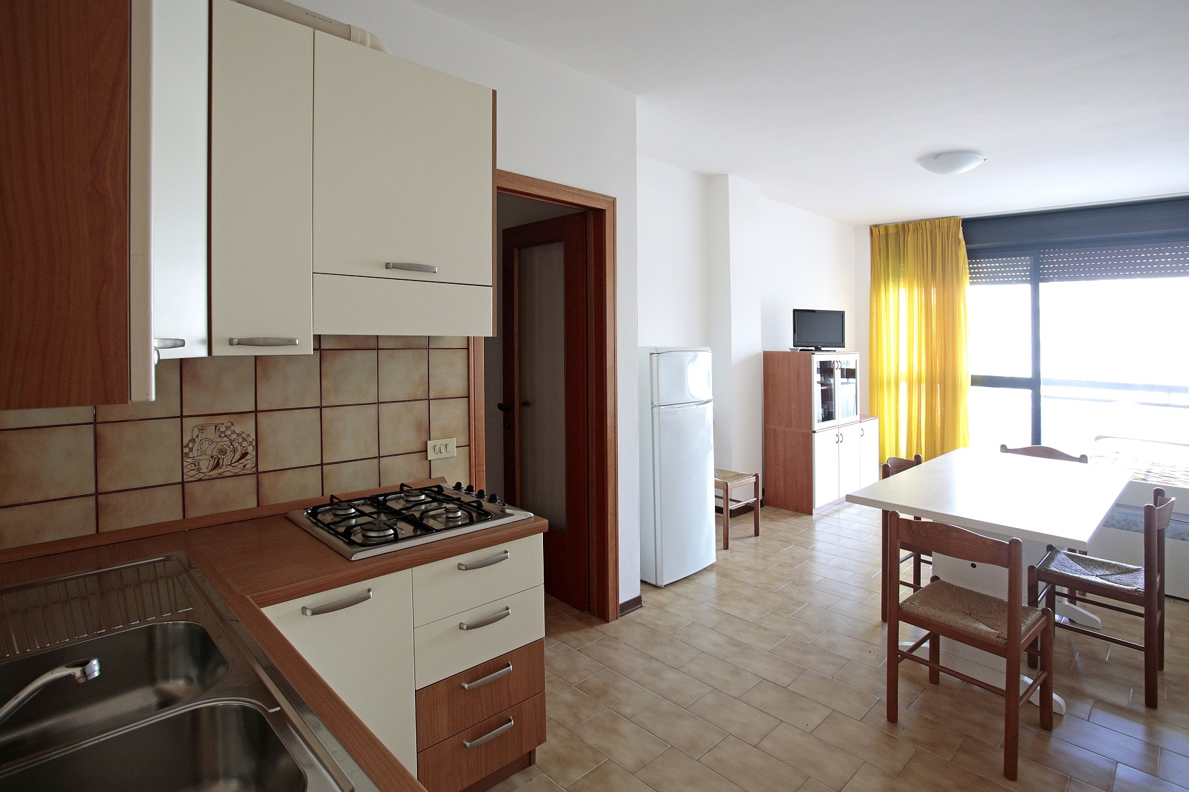 Die Dreizimmerwohnung, die sich im Erdgeschoss befindet, kann bis zu 6 Personen beherbergen und bietet einladende und lichtdurchflutete Räume. Sie besteht aus einem Wohnzimmer mit ausgestatteter Küchenzeile und Doppelbettsofa, einem privaten Garten, der ideal für Mahlzeiten oder Entspannung im Freien ist, einem Badezimmer mit Dusche, einem Schlafzimmer mit Doppelbett und Zusatzbett sowie einem Kinderzimmer mit Einzelbett.