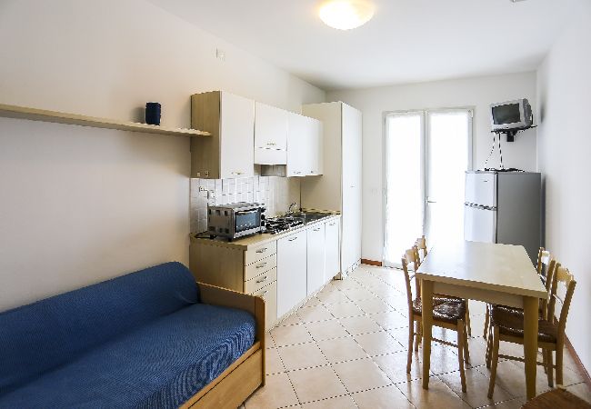 Dreiraumwohnung mit Balkon, bestehend aus einem Schlafzimmer mit Doppelbett, einem Schlafzimmer mit Stockbett, Wohnraum mit Kochnische und Doppelschlafcouch, Badezimmer. Residence Union ist ein kleines Ferienhaus in Caorle direkt am Meer, in der Nähe der Altstadt gelegen, in einer ruhigen Lage neben Geschäfte, Bars, Restaurante und andere Aktivitäten wie Banken, Apotheken, Supermärkte. Wohnungen in verschiedenen Größen, einige mit Parkplatz. Ganz in der Nähe von der Fussgängerzone zwischen der Geschäften für schöne Abendsspaziergänge zum Einkaufen geignet. Bequemer direkter Zugang zum Strand. Mit Aufzug. Die Wohnungen sind gut eingerichtet mit Klimaanlage, Waschmaschine, TV, Kochecke mit Geschirr und Badezimmer mit Dusch-Kabine ausgestattet.