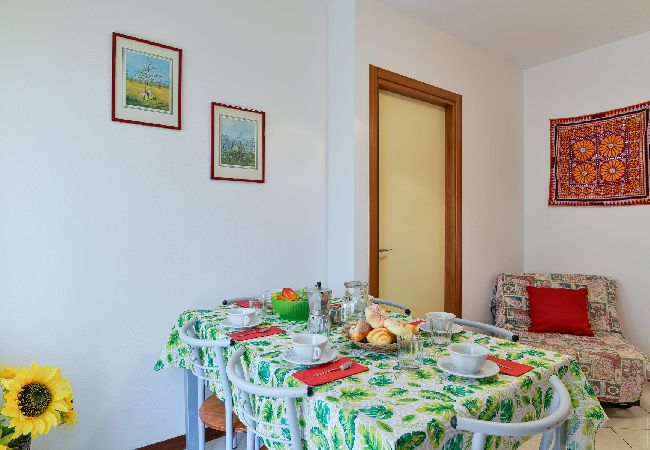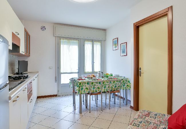 Die Dreizimmerwohnung, die sich im Erdgeschoss befindet, kann bis zu 6 Personen beherbergen und bietet einladende und lichtdurchflutete Räume. Sie besteht aus einem Wohnzimmer mit ausgestatteter Küchenzeile und Doppelbettsofa, einem privaten Garten, der ideal für Mahlzeiten oder Entspannung im Freien ist, einem Badezimmer mit Dusche, einem Schlafzimmer mit Doppelbett und Zusatzbett sowie einem Kinderzimmer mit Einzelbett.