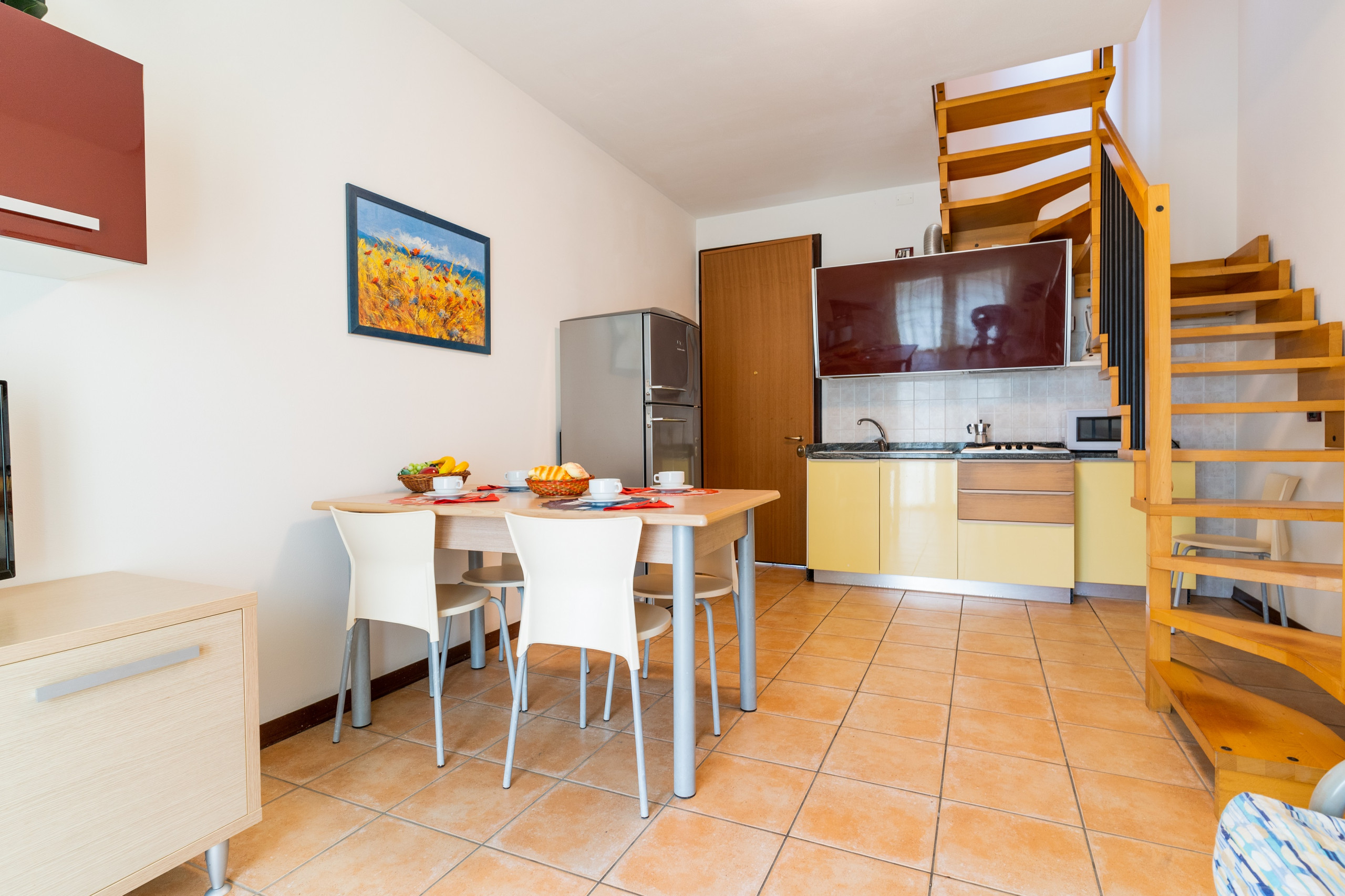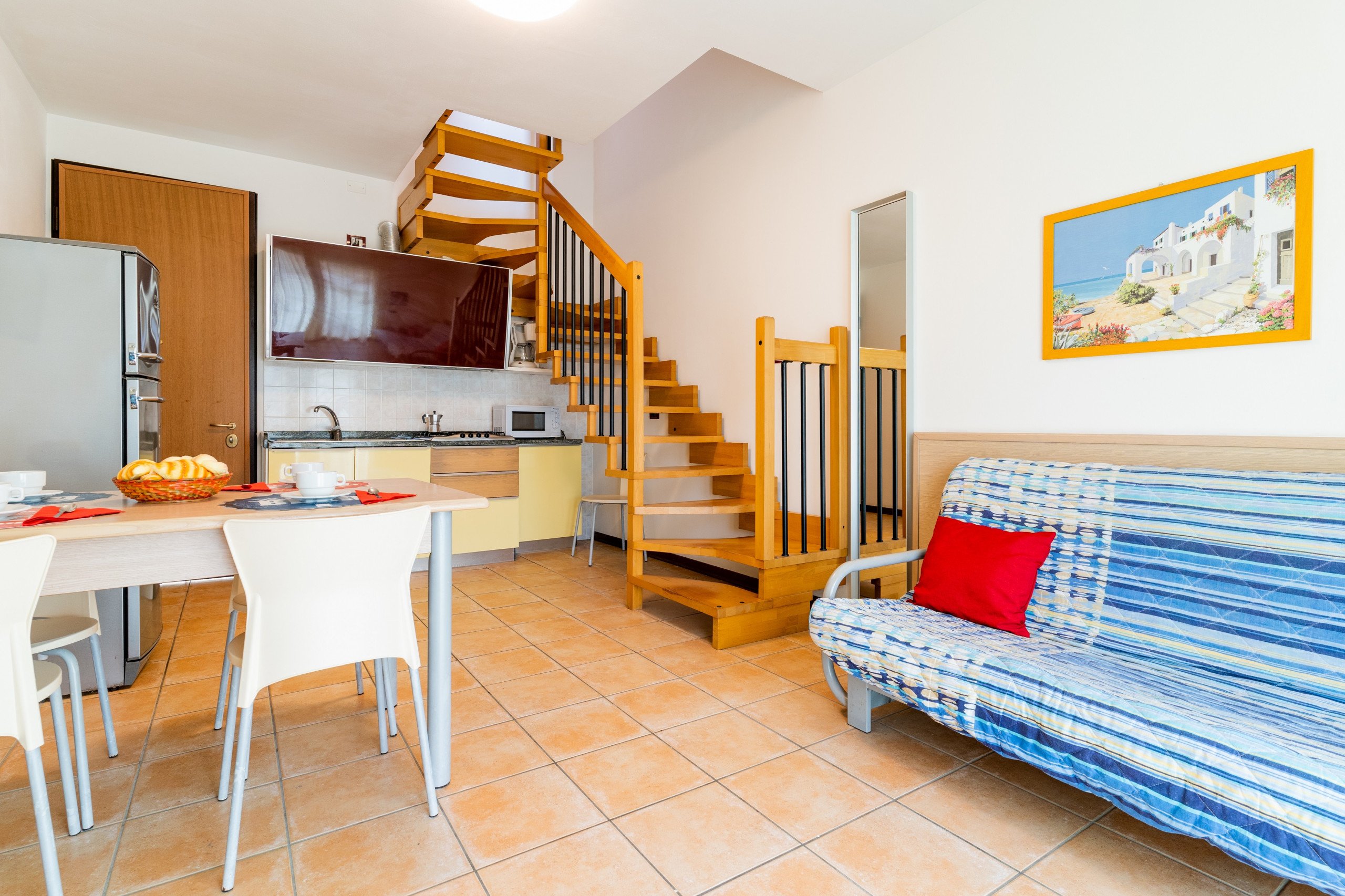 Zweiraumvilla auf 2 Etagen, Garten, Kochnische und Doppelschlafcouch, im 1. Stock: Badezimmer, Schlafzimmer mit Doppelbett und Zusatzbett. "La Quercia" Arkade ist den Treffpunkt aller Feriendoerfer in Caorle Lido Altanea. Ein geraumiger Platz und eine bedeckte Fussgaengergalerie mit Geschaefte, Cafes, Restaurants, Dachschwimmbad werden ein Rahmen fuer die touristische Ferienanlage, welche aus 22 Geschaefte und 84 Wohnungen besteht. Verfügbarer Strandservice gegen Gebuehr (Informationen bei Lampo Caorle Lido Altanea).