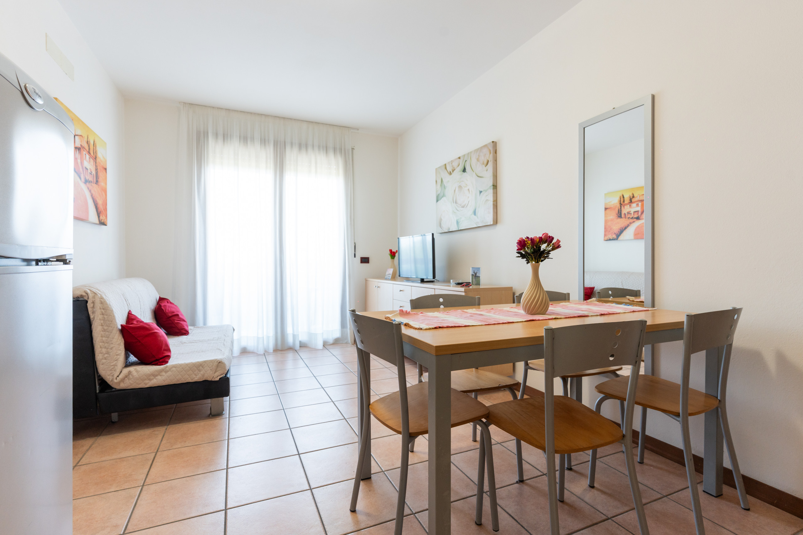Die 42 m² großen Zweizimmerwohnungen im Residence Ginepri sind die ideale Wahl für einen Familienurlaub, der von Komfort und Praktikabilität geprägt ist. Sie sind im Erdgeschoss mit Garten und möblierter Terrasse oder im 1. oder 2. Stock des Residenz (mit Aufzug erreichbar) mit möbliertem Balkon verfügbar und sind darauf ausgelegt, Praktikabilität und Komfort zu vereinen und perfekte Räume für Frühstück, Mittagessen und Abendessen im Freien zu bieten. Die verschiedenen Ausrichtungen tragen zu einer noch angenehmeren Atmosphäre bei und bieten Ausblicke auf den Pool oder die Zufahrtsallee.