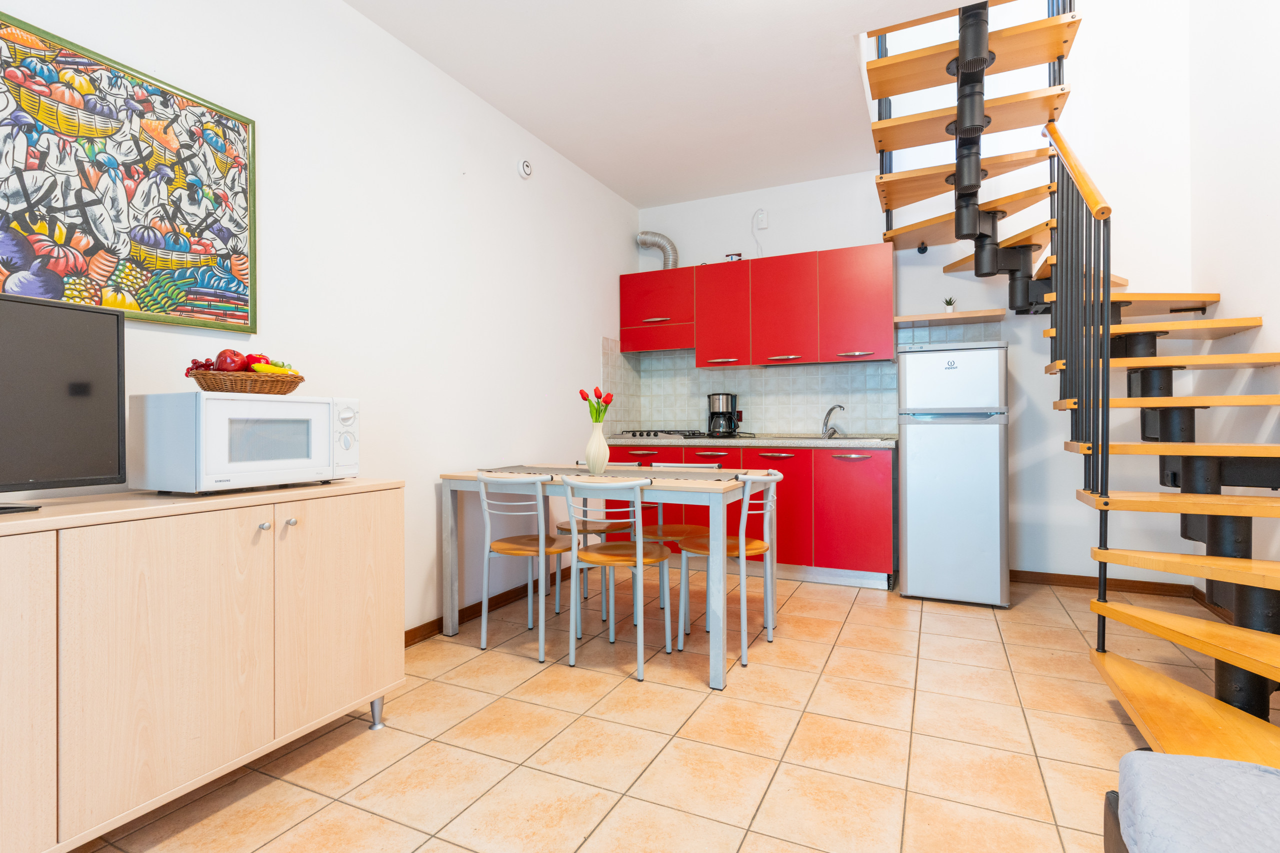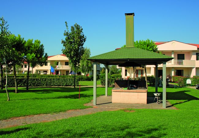 Zweiraumvilla auf 2 Etagen, Garten, Kochnische und Doppelschlafcouch, im 1. Stock: Badezimmer, Schlafzimmer mit Doppelbett und Zusatzbett. "La Quercia" Arkade ist den Treffpunkt aller Feriendoerfer in Caorle Lido Altanea. Ein geraumiger Platz und eine bedeckte Fussgaengergalerie mit Geschaefte, Cafes, Restaurants, Dachschwimmbad werden ein Rahmen fuer die touristische Ferienanlage, welche aus 22 Geschaefte und 84 Wohnungen besteht. Verfügbarer Strandservice gegen Gebuehr (Informationen bei Lampo Caorle Lido Altanea).