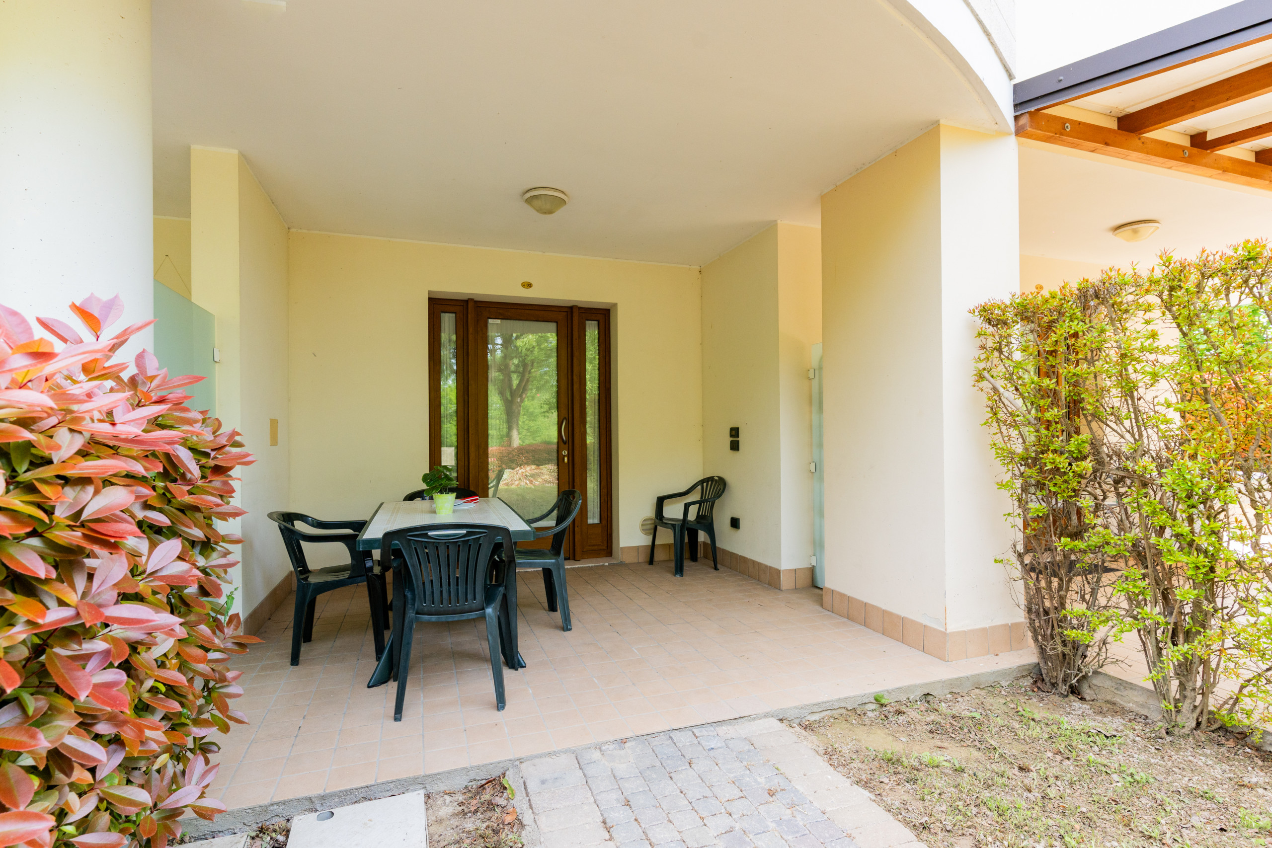 Die Villen genießen verschiedene Ausrichtungen: zur Schwimmbadseite oder zur Zufahrtsallee. Einige Einheiten verfügen über einen Garten und eine möblierte Veranda, andere nur über eine Veranda, die immer mit Tisch und Außenstühlen ausgestattet ist, ideal für Mittag- und Abendessen im Freien.