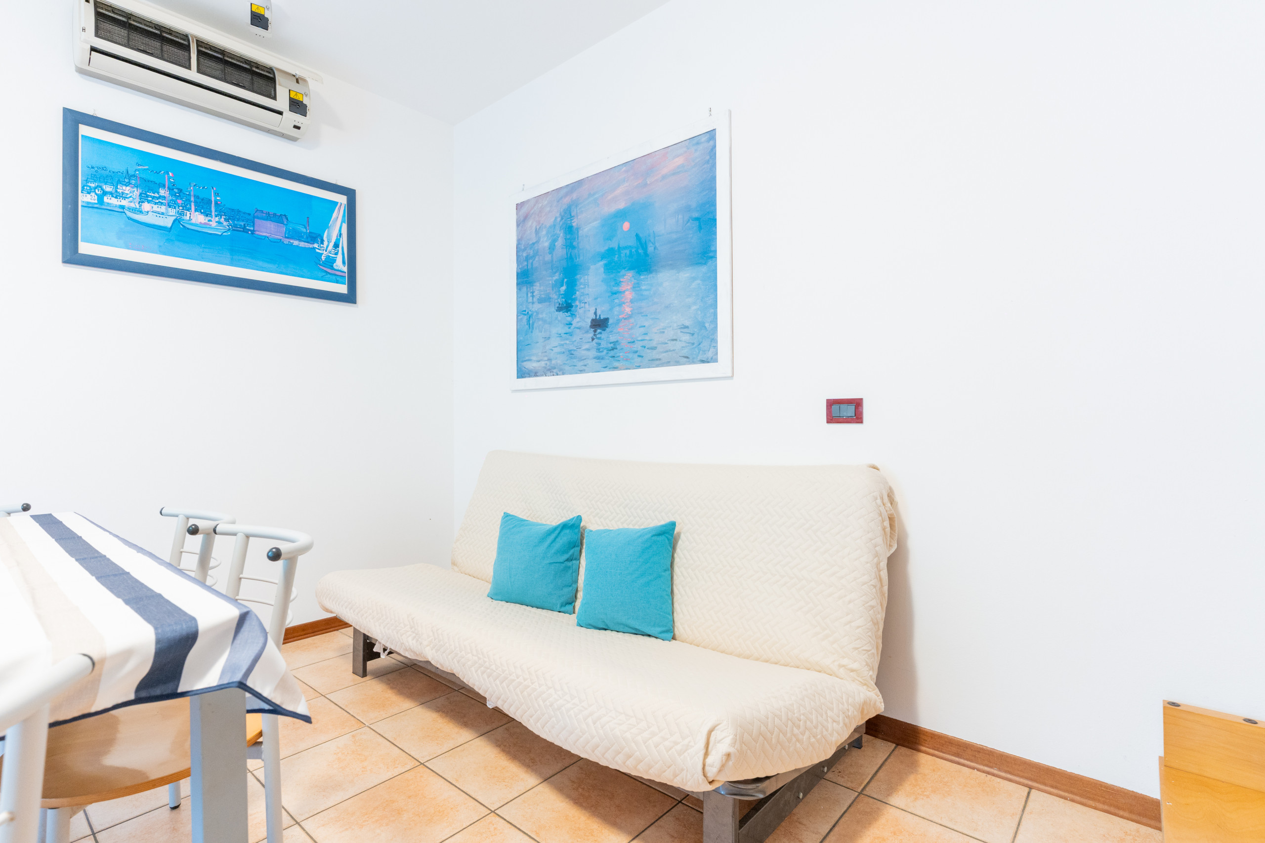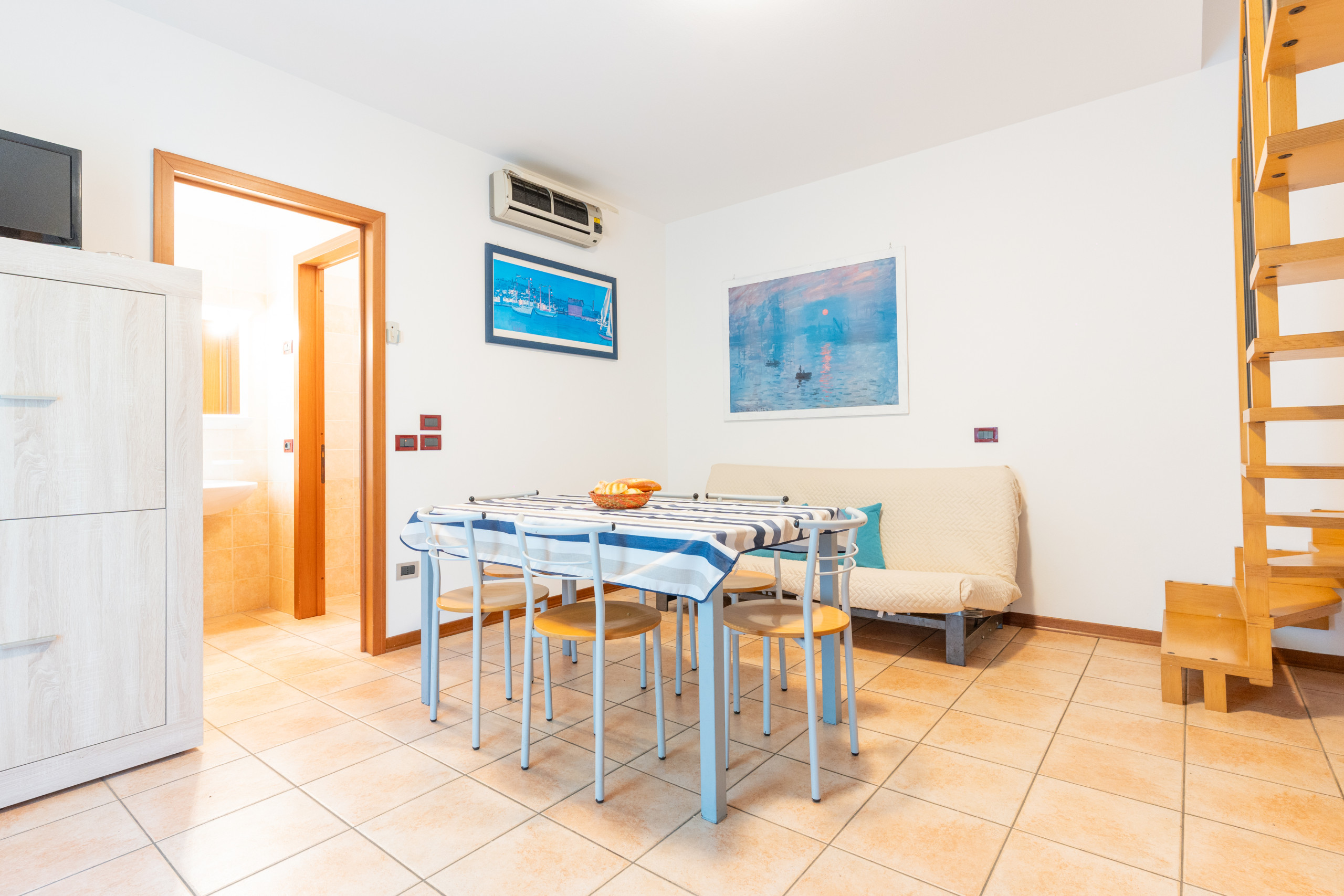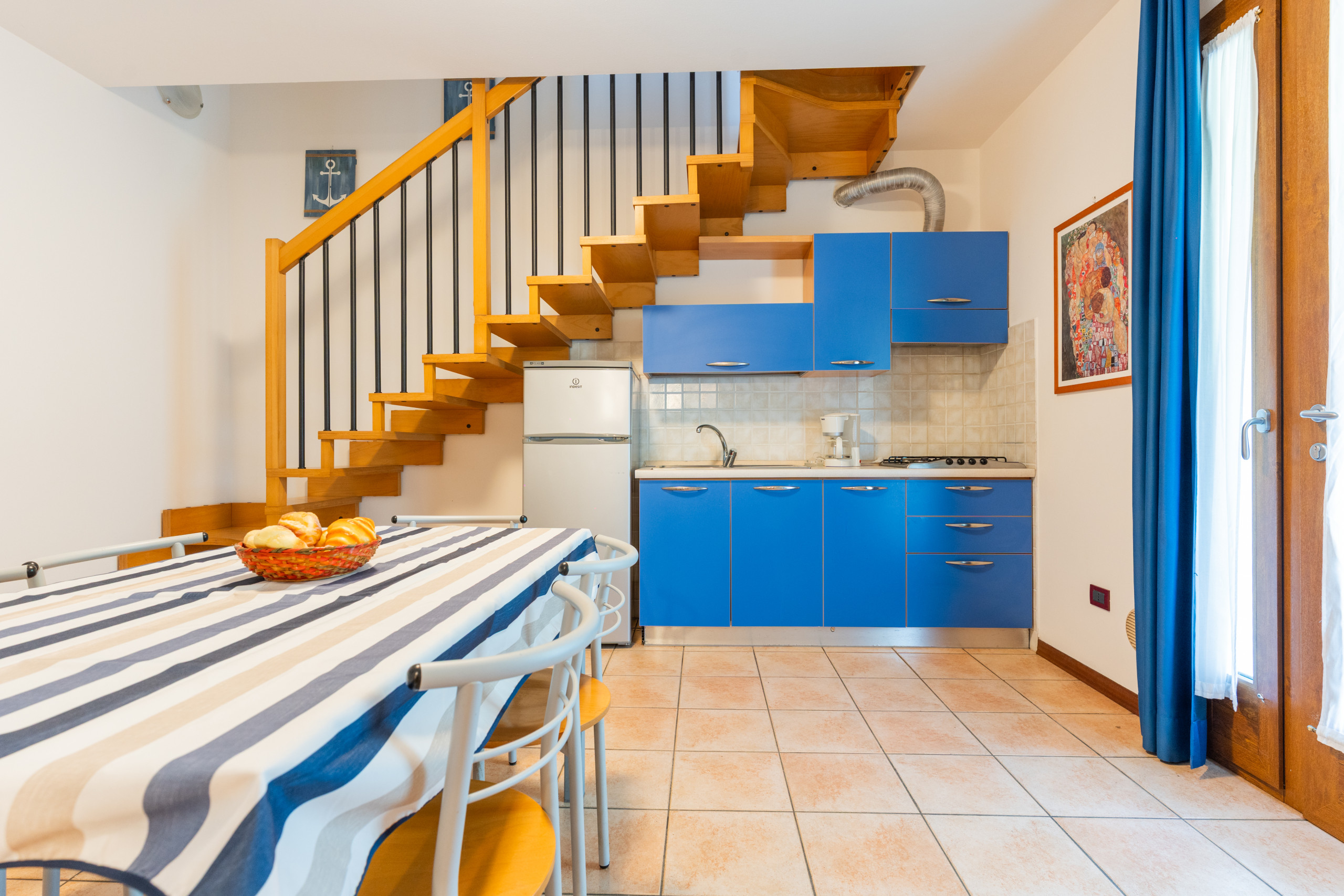 Im Erdgeschoss finden Sie ein Wohnzimmer mit Küchenzeile, ein bequemes französisches Doppelbett-Sofa und ein Badezimmer mit Duschkabine. Über die Innentreppe in den ersten Stock gelangen Sie in ein Schlafzimmer mit Balkon, ausgestattet mit einem Doppelbett und einem zusätzlichen Einzelbett; ein zweites Zimmer verfügt über zwei Einzelbetten. Das geräumige Badezimmer im ersten Stock ist mit einer Duschkabine ausgestattet.