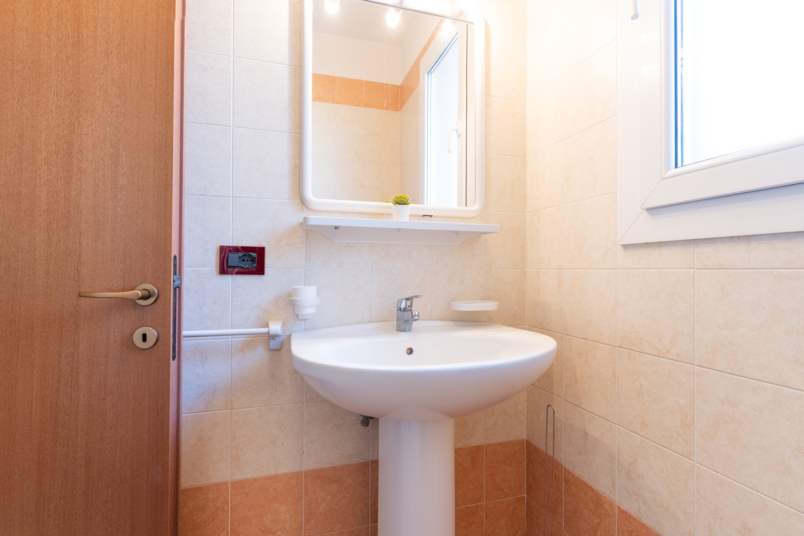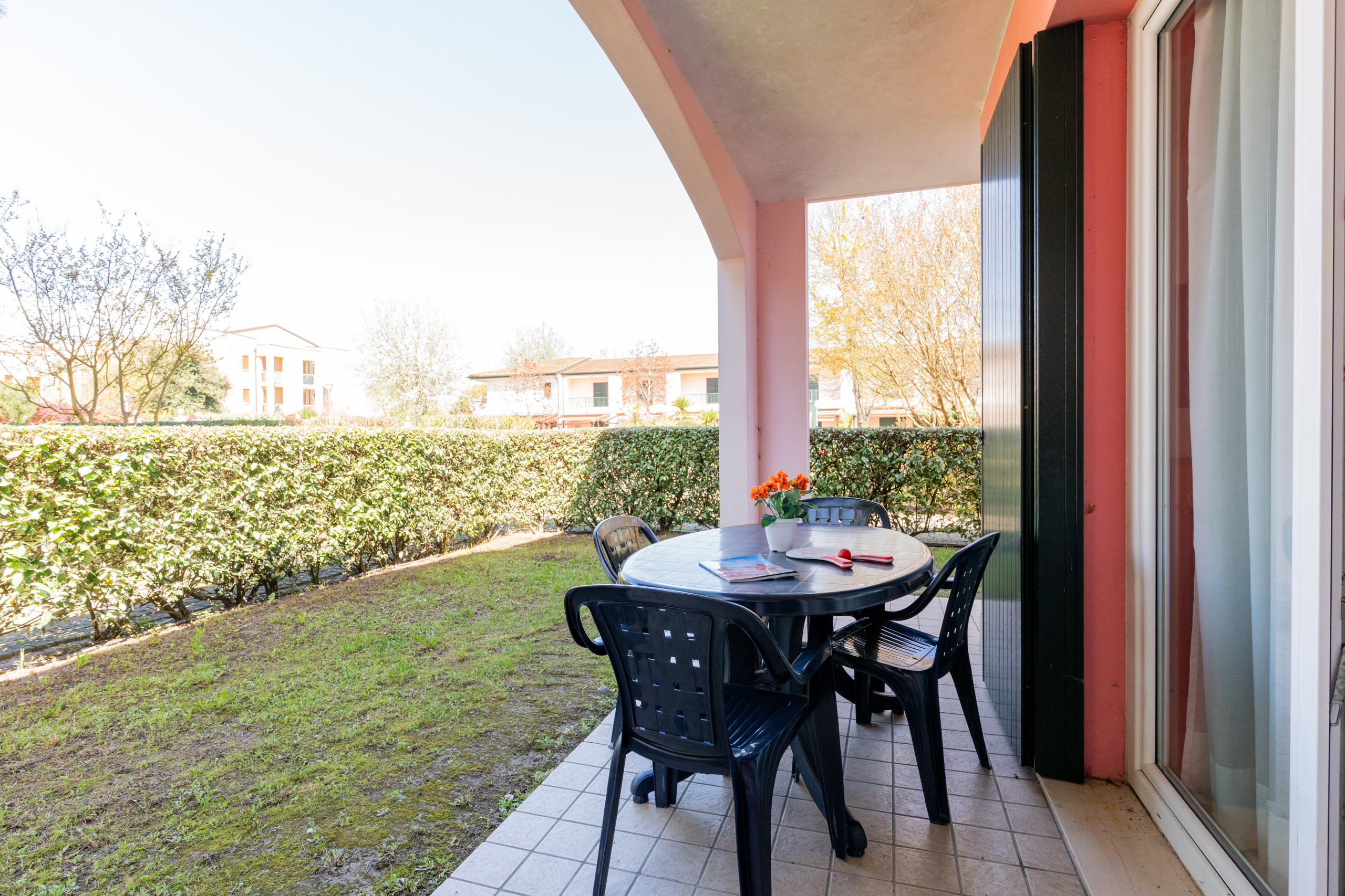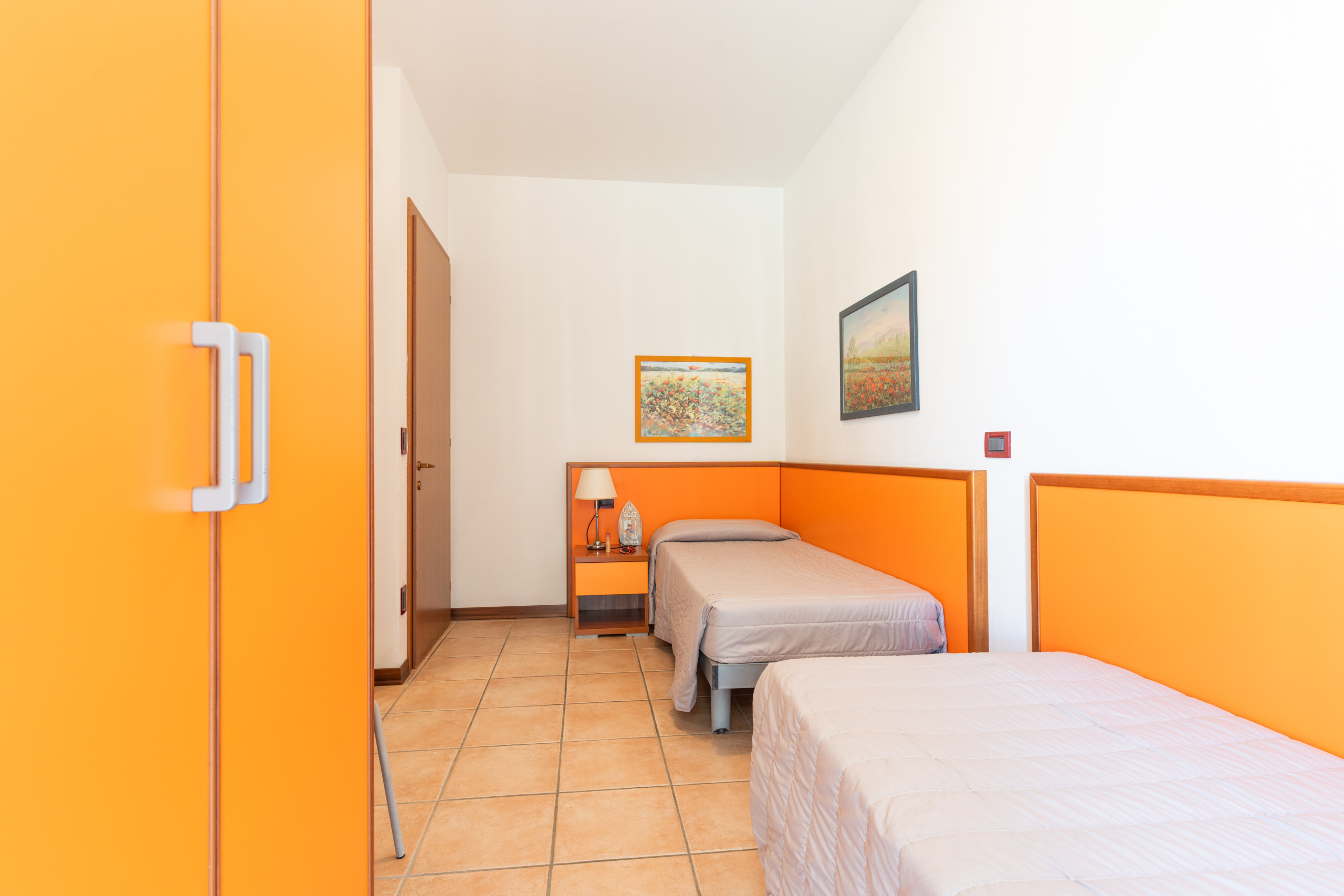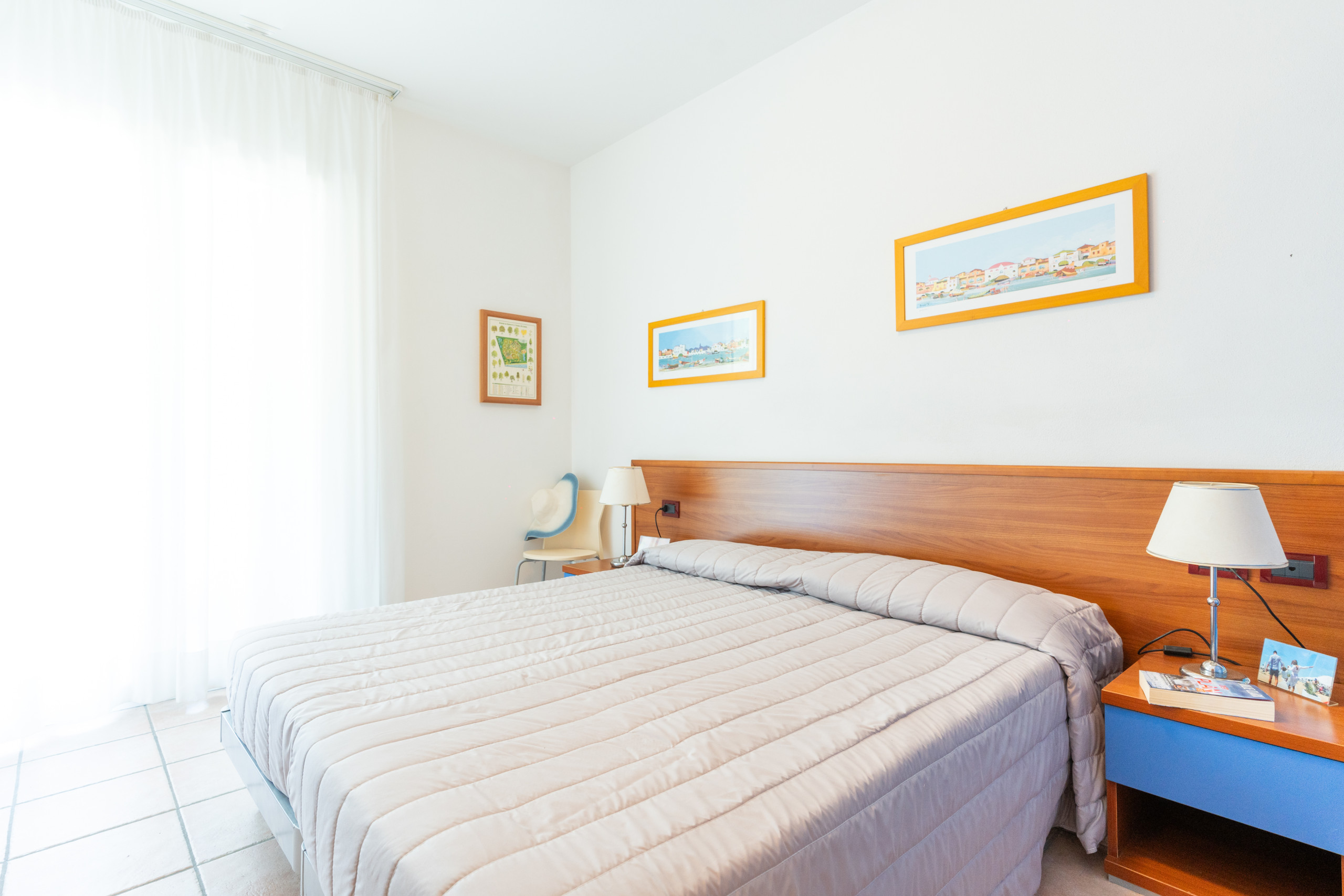 Die Dreizimmerwohnung, die sich im Erdgeschoss befindet, kann bis zu 6 Personen beherbergen und bietet einladende und lichtdurchflutete Räume. Sie besteht aus einem Wohnzimmer mit ausgestatteter Küchenzeile und Doppelbettsofa, einem privaten Garten, der ideal für Mahlzeiten oder Entspannung im Freien ist, einem Badezimmer mit Dusche, einem Schlafzimmer mit Doppelbett und Zusatzbett sowie einem Kinderzimmer mit Einzelbett.