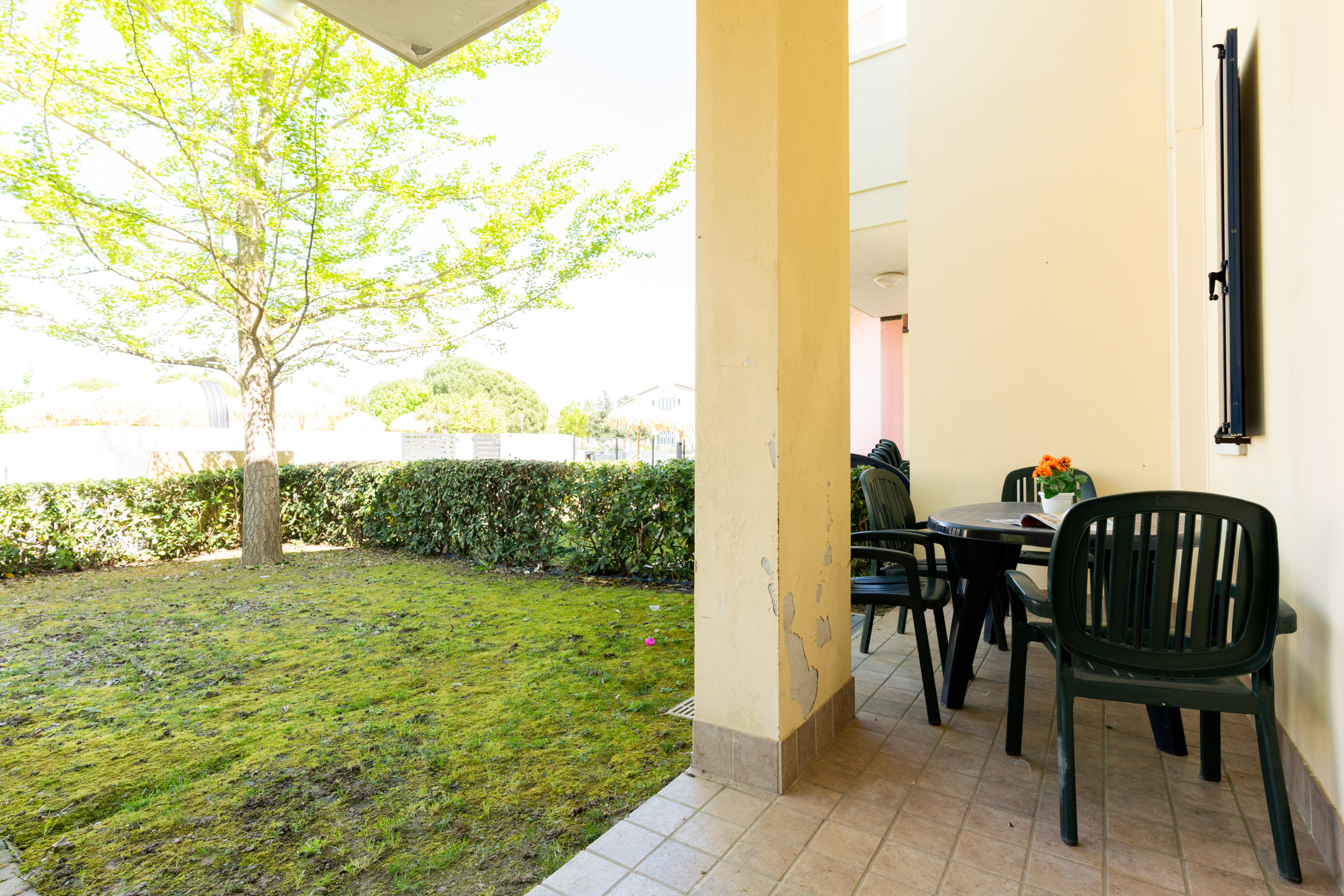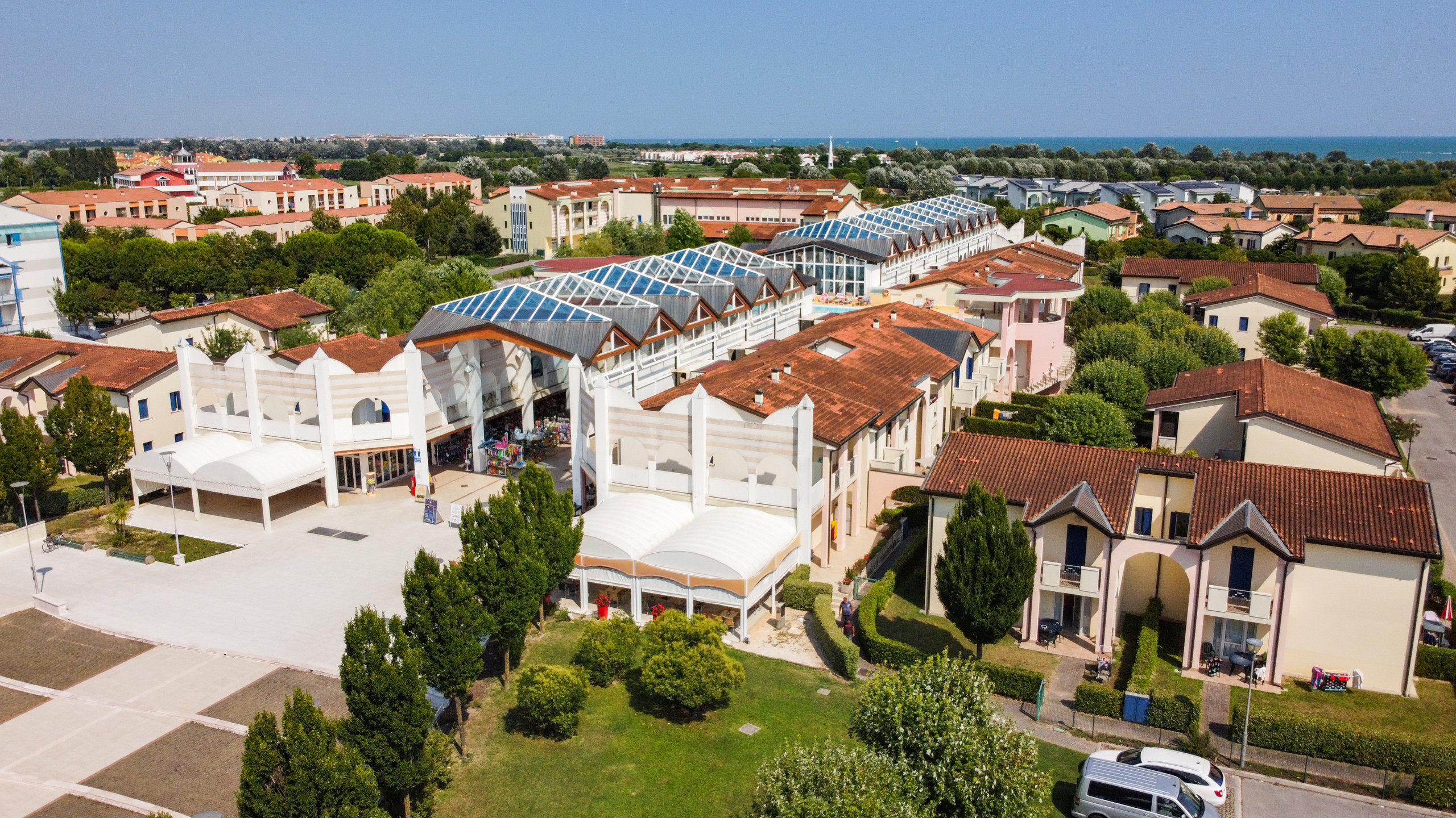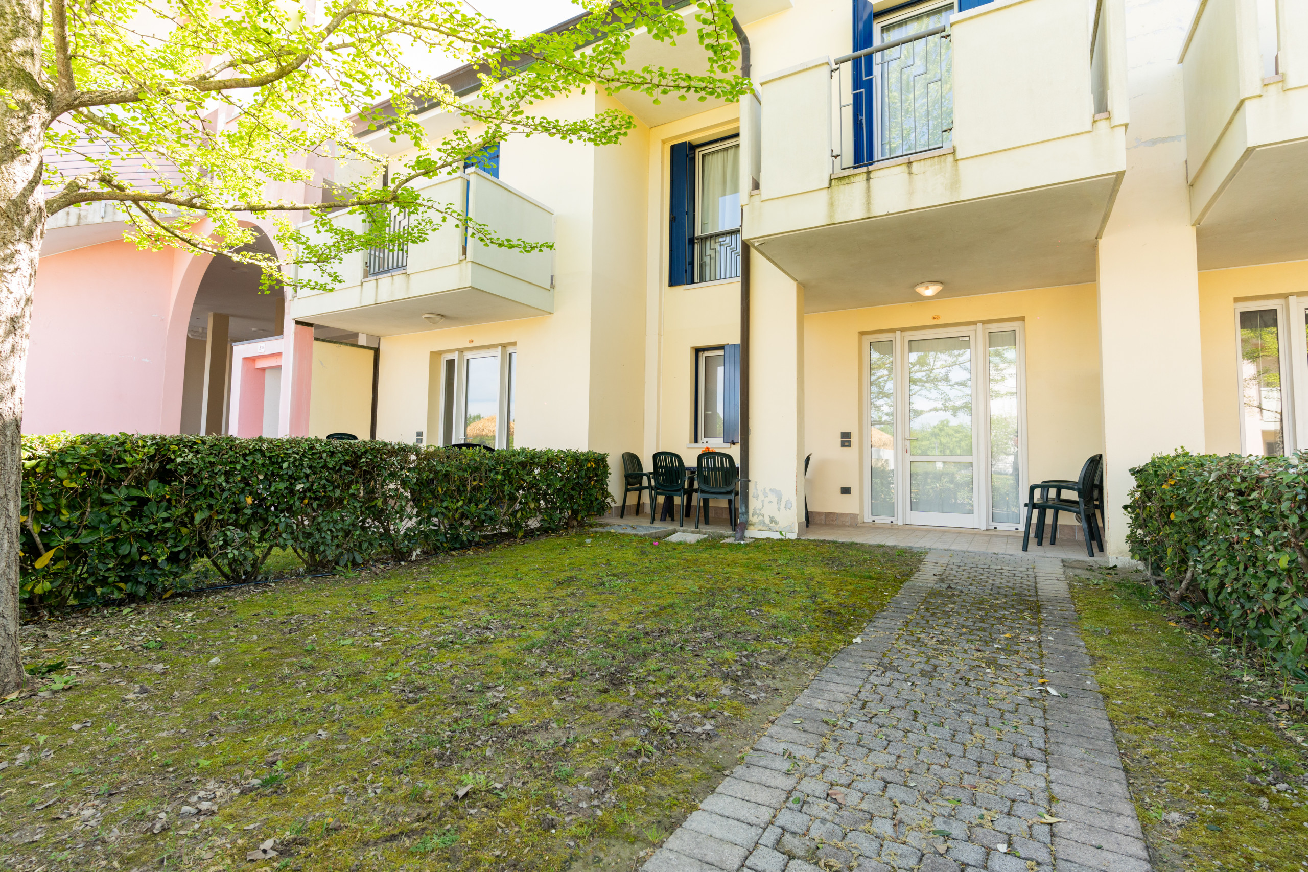 Die einladenden Dreizimmerwohnungen mit 62 m², die sich über zwei Etagen erstrecken, verfügen über einen privaten Garten und eine möblierte Terrasse, ideal für Frühstück, Mittagessen und Abendessen im Freien. Jede Villetta genießt unterschiedliche Ausrichtungen mit Blick auf den Pool, den Innengarten oder die Hauptallee.