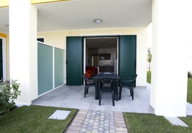 Unsere modernen Zwei-Zimmer-Wohnungen von etwa 50 m² befinden sich im Erdgeschoss und verfügen über einen privaten Garten, der mit einem Tisch und Stühlen ausgestattet ist, perfekt, um Frühstück im Freien oder sommerliche Abendessen in völliger Entspannung zu genießen.