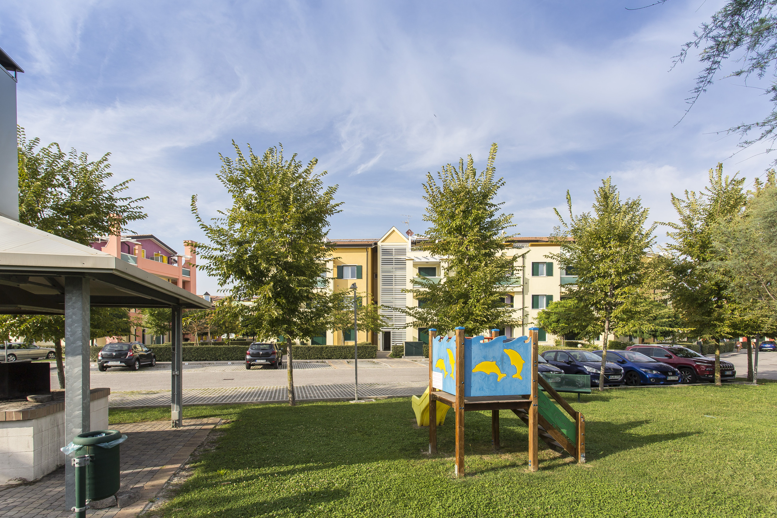 Das Dorf ACACIE liegt nur 200 Meter vom Strand entfernt, in der Nähe eines der Zugänge zum Meer. Es besteht aus 76 Reihenvillen, die auf zwei Etagen verteilt sind und um einen zentralen Pool für Erwachsene und Kinder herum angeordnet sind, umgeben von einer großen Terrasse mit Sonnenliegen und Sonnenschirmen. Im Gemeinschaftsbereich befinden sich ein Kinderspielplatz und eine Grillzone, ideal für Momente der Entspannung und Geselligkeit in Familienkreisen.