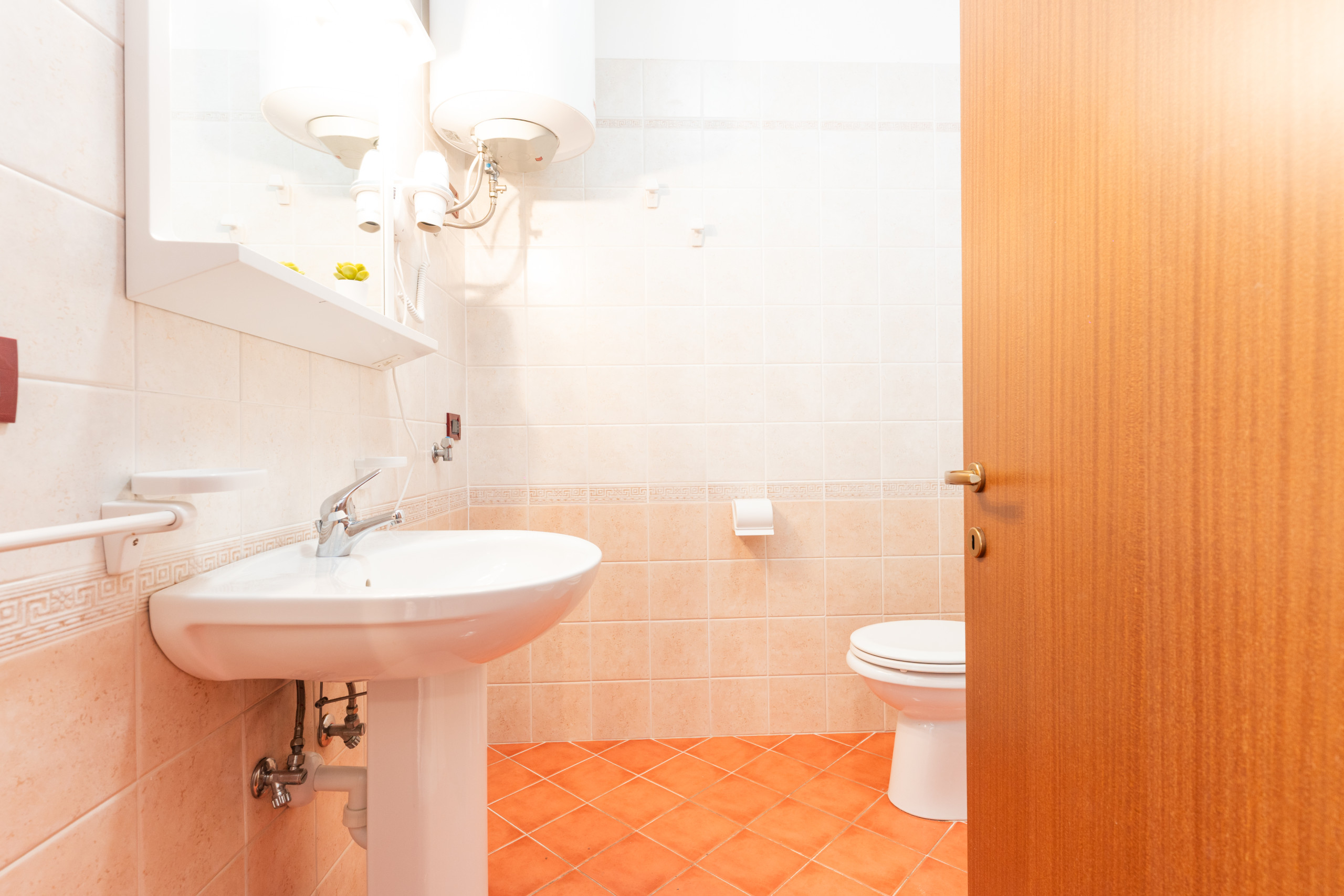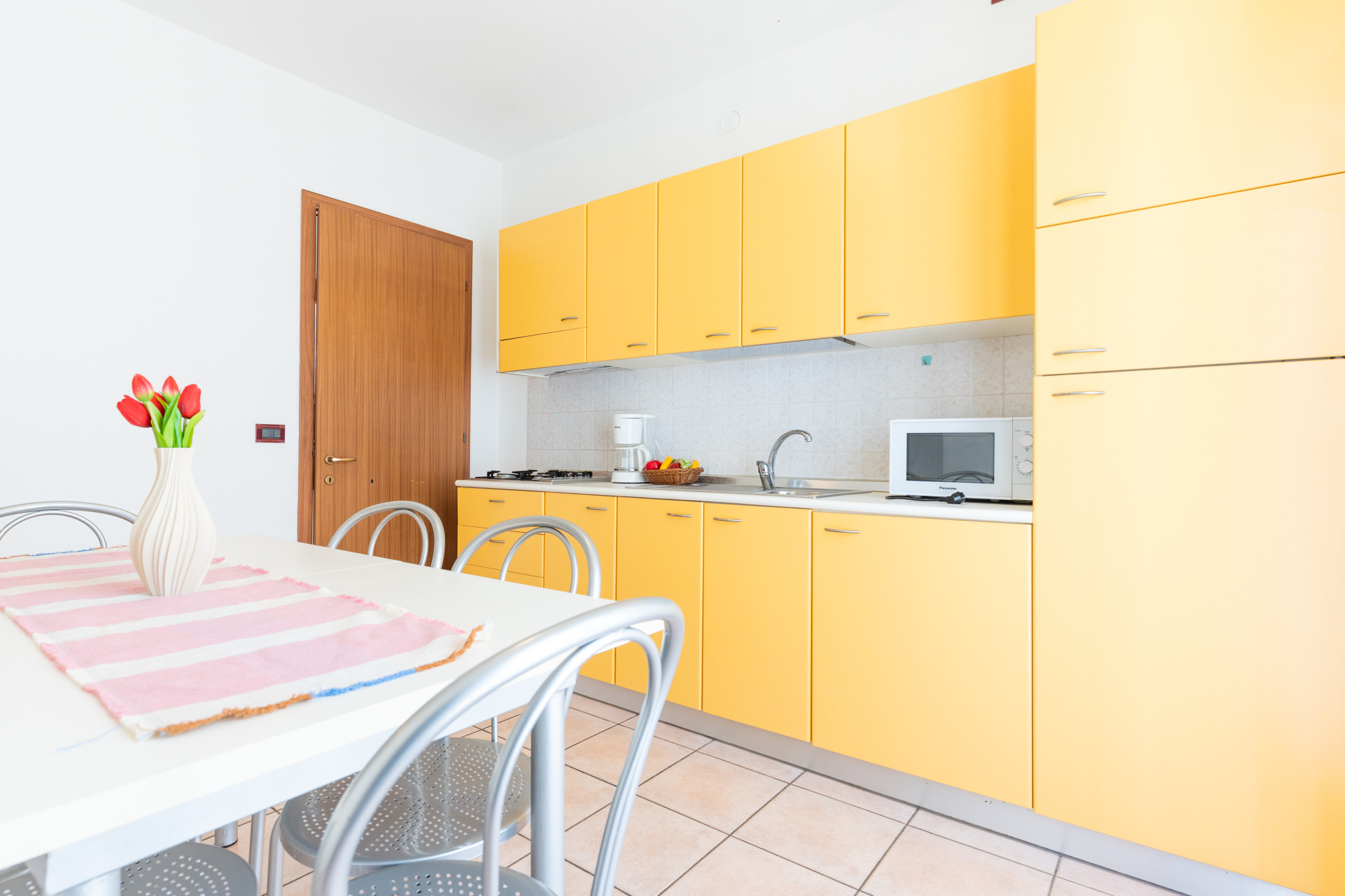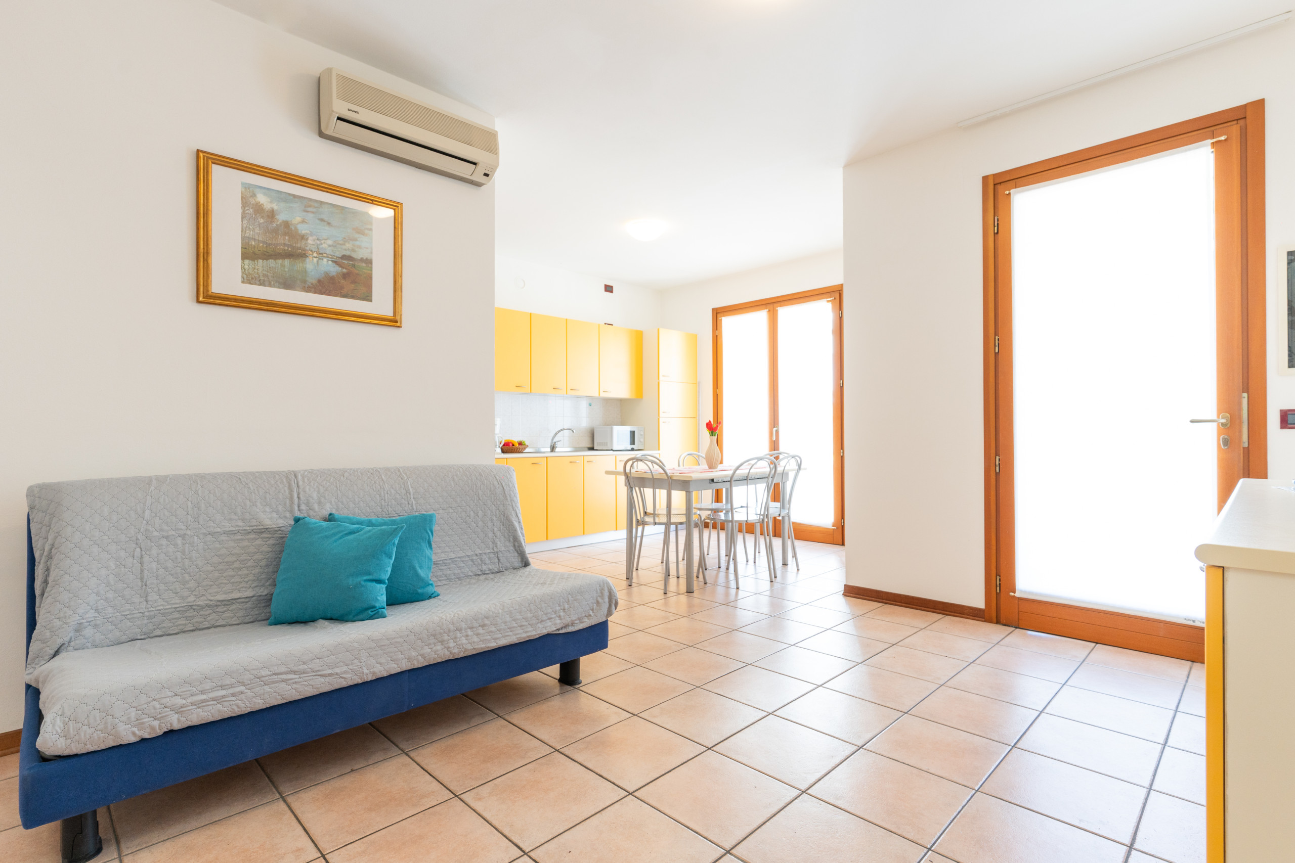 Die Dreizimmerwohnung, die sich im Erdgeschoss befindet, kann bis zu 6 Personen beherbergen und bietet einladende und lichtdurchflutete Räume. Sie besteht aus einem Wohnzimmer mit ausgestatteter Küchenzeile und Doppelbettsofa, einem privaten Garten, der ideal für Mahlzeiten oder Entspannung im Freien ist, einem Badezimmer mit Dusche, einem Schlafzimmer mit Doppelbett und Zusatzbett sowie einem Kinderzimmer mit Einzelbett.
