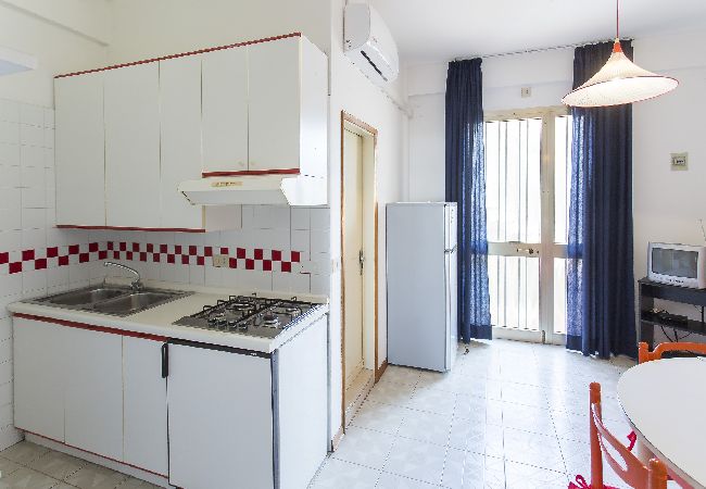 2 Raum Wohnung mit 4 Betten. Wohnung im zweiten Stock mit 1 Doppelschlafzimmer + 2 Einzelbetten, Kuche, Badezimmer, kleine Terrasse. "Casa Giannina A" ist ein kleines eingezaeuntes Wohngebaeude auf der Meerseite nur 40 Meter vom Strarnd entfernt im Zentrum von Lido di Jesolo zwischen Piazza Mazzini und Piazza Brescia. Es besteht aus Wohnungen verschiedener Typologien mit TV und Klima, einige auch mit Balkon. Strandplatz obligatorisch gegen Gebuehr, nicht im Preis inbegriffen. Numerierter und eingezeuneter Parkplatz fuer 1 Auto pro Wohnung.