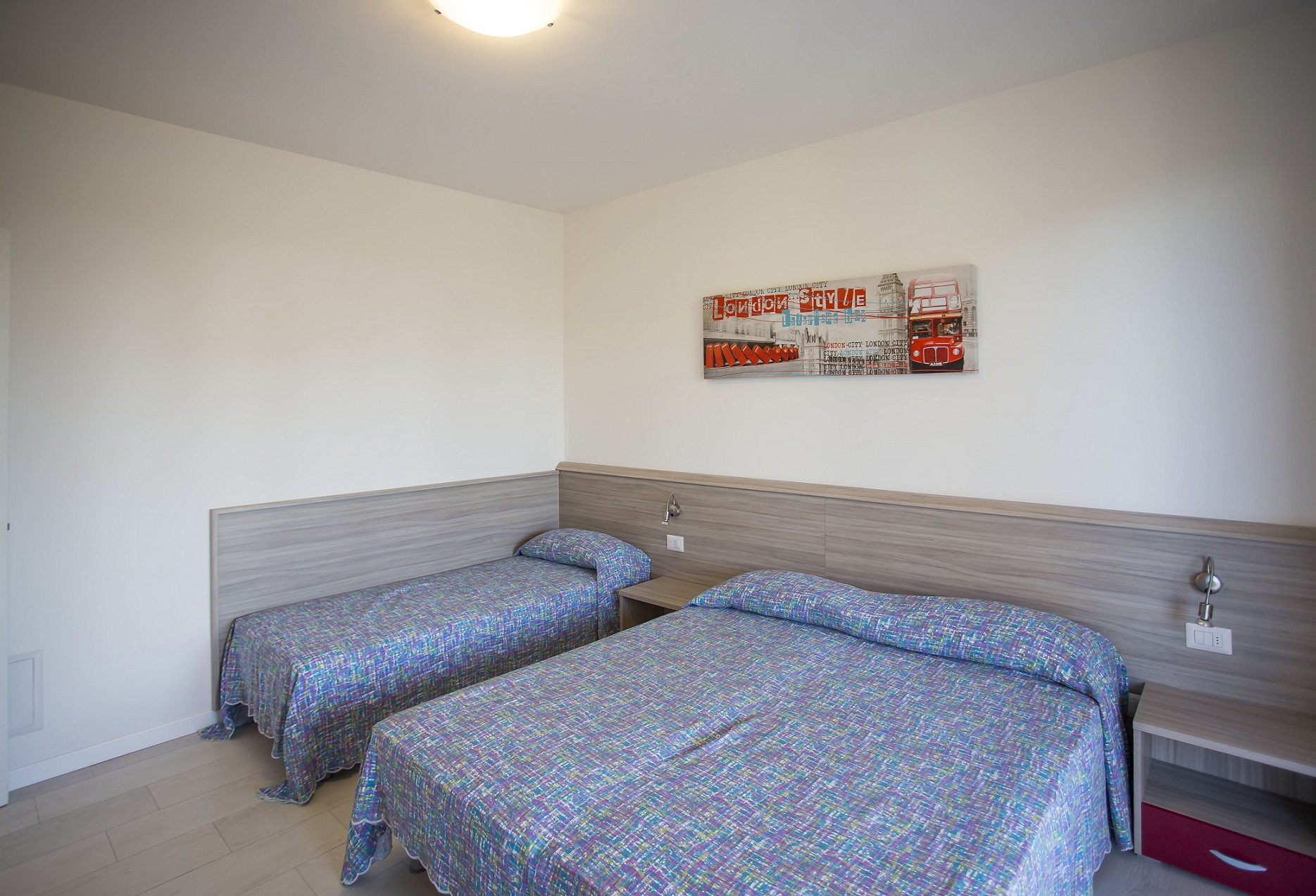 Wohnung im Erdgeschoss, mit Doppelzimmer plus Einzelbett, Schlafzimmer mit 2 Einzelbetten, Doppelschlafcauch inm Wohn-Esszimmer mit Kochecke und Badezimmer. Dieses neu erbaute, aus 60 Wohneinheiten bestehende Feriendorf mit Schwimmbad liegt 530 Meter vom Strand entfernt in der Naehe der Piazza Mazzini in Lido di Jesolo. Kein Strandservice. Es bietet Ferienwohnungen mit Pool (fuer Erwachsene und Kinder), Sonnenterrasse mit Liegen und Sonnenschirmen. Die Wohnungen verschiedenster Typologien sind alle mit Wasch- und Spuelmaschine, Mikrowelle, Hochkuehlschrank, Klimaanlage, Foehn, SAT LED-TV, WLAN ausgestattet. 1 Aussenstellplatz pro Wohnung inklusive. Auf Anfrage und gegen Bezahlung Stellplaetze in der Garage. Hausmeisterservice.