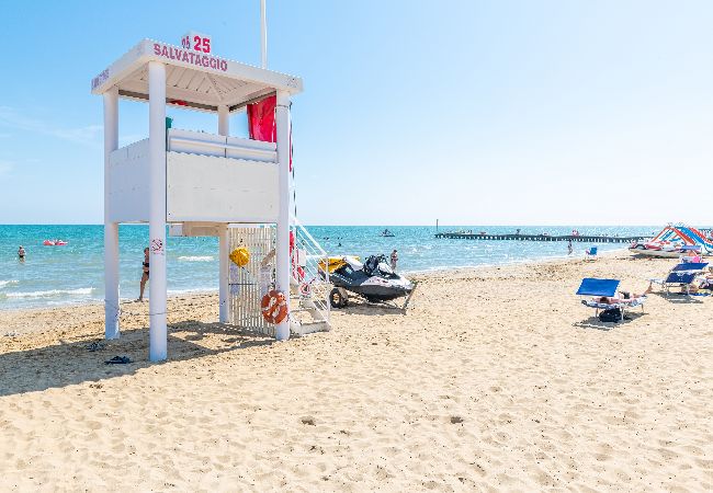 Das Haus "Zenith" ist eine Villa nur 10 Meter vom Strand entfernt in Lido di Jesolo in ruhiger aber centraler Lage in der Naehe der Piazza Trieste umgeben von Restaurants, Bars und Geschaeften. Kleiner Privatstrand vor dem Haus. Die Villa besteht aus 8 Wohnungen ueber 3 Stockwerken (kein LIft). Alle mit TV, Kima und Waschmaschine.Klimatisierte 3 Zimmer-Wohnung im 1. oder 3. Stock mit Sichtdachstuhl aus hellem Holz, großer Balkon zur Parkplatzseite/Rückseite. 1 Doppelschlafzimmer mit einem Dobbelbett und 1Einzelbett/Stockbett, 1 Schlafzimmer mit zwei Einzelbetten/ Doppelbett, geräumiges Wohnzimmer mit Doppelschlafcouch, TV, Küchenzeile. 1 Bad mit Duschkabine, Waschmaschine. 1 nummerierter, reservierter Parkplatz pro Wohnung. Obligatorischer Strandplatz am Hauptstrand gegen Bezahlung.